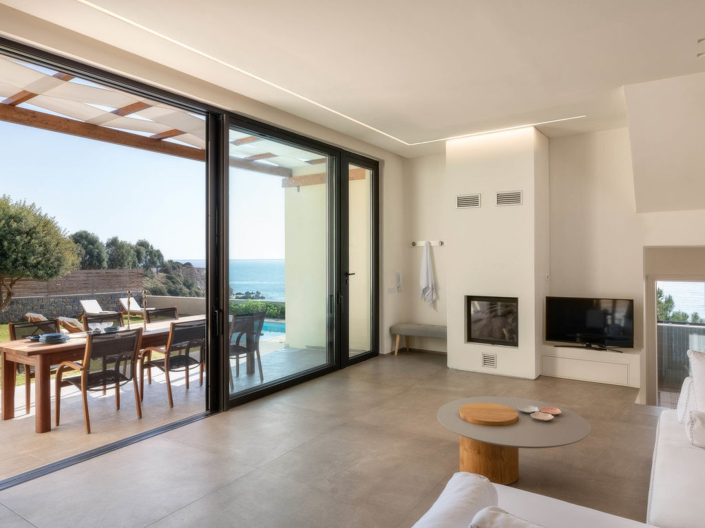 "Vista Mare", 4-Zimmer-Villa 150 m2. Geräumig und hell, komfortabel und schön eingerichtet: offenes Wohnzimmer mit offenem Kamin und Sat-TV (Flachbildschirm). Ausgang zum Garten, zum Schwimmbad. 1 Doppelzimmer mit 1 Diwanbett, 1 Doppelbett, Dusche/WC und Sat-TV (Flachbildschirm). Ausgang zur Terrasse. 1 Doppelzimmer mit 1 Doppelbett und Sat-TV (Flachbildschirm). 1 Doppelzimmer mit 2 Betten, Dusche/WC und Sat-TV (Flachbildschirm). Offene Küche (Backofen, Geschirrspüler, 4 Glaskeramikherd Platten, Toaster, Wasserkocher, Mikrowelle, elektrische Kaffeemaschine). Dusche/WC. Klimaanlage. Terrasse teilweise überdacht. Gartengrill. Schöne Sicht auf das Meer und die Landschaft. Zur Verfügung: Waschmaschine, Safe, Bügeleisen, Haartrockner. Internet (Wireless LAN, gratis).