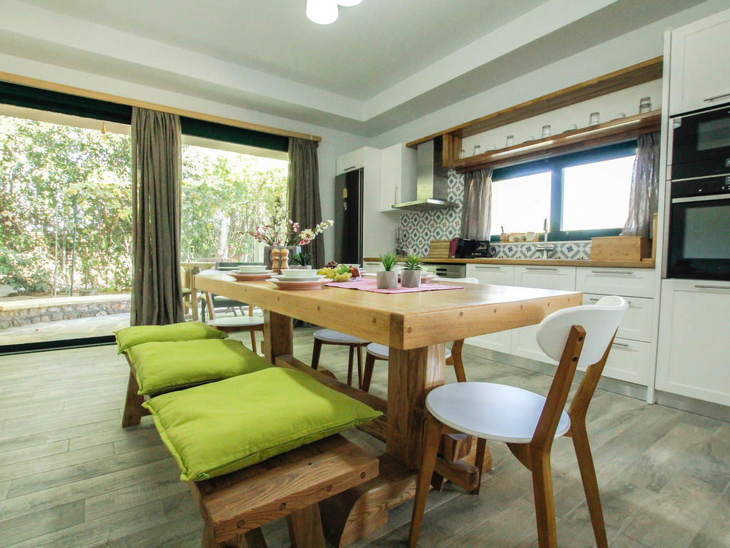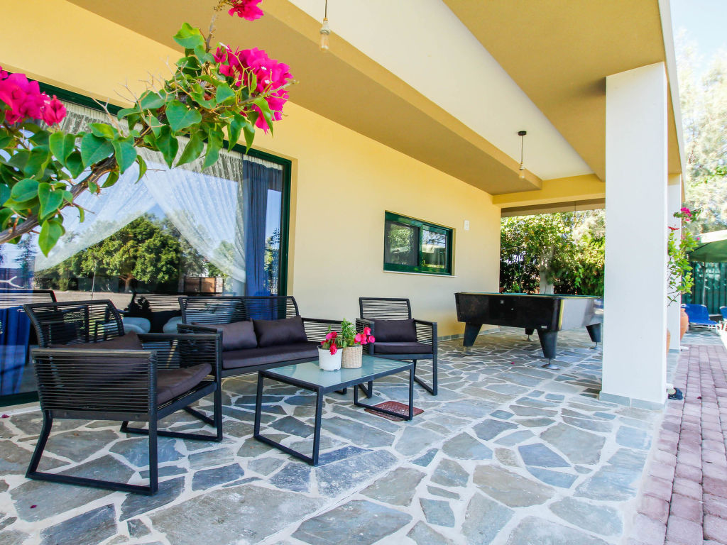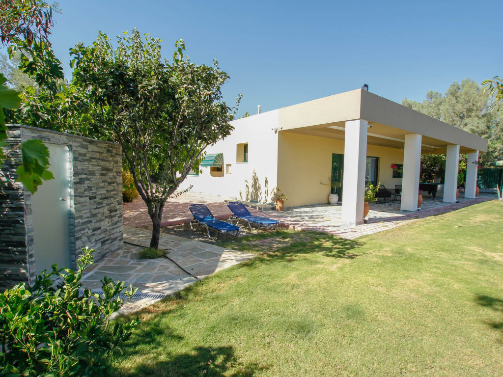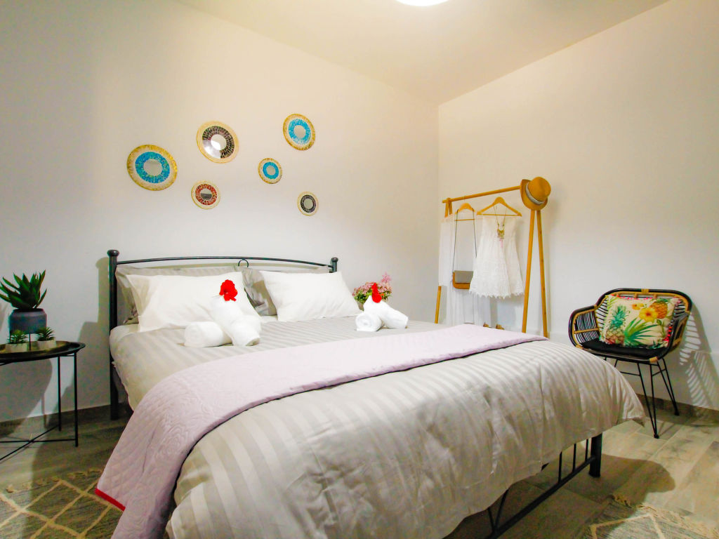"Aether", 4-Zimmer-Villa 130 m2. Geräumig und hell, komfortabel und schön eingerichtet: offenes Wohn-/Schlafzimmer mit 1 Doppeldiwanbett und Sat-TV (Flachbildschirm). Ausgang zum Garten, zur Terrasse. 1 Doppelzimmer mit 1 Doppelbett, Dusche/WC und TV (Flachbildschirm). 2 Doppelzimmer, jedes Zimmer mit 1 Doppelbett. Offene Küche (Backofen, Geschirrspüler, 4 Glaskeramikherd Platten, Toaster, Wasserkocher, Mikrowelle, elektrische Kaffeemaschine) mit Esstisch. Dusche/WC. Klimaanlage. Grosse Terrasse teilweise überdacht. Gartengrill. Schöne Sicht auf die Landschaft. Zur Verfügung: Waschmaschine, Safe, Bügeleisen, Haartrockner. Internet (Wireless LAN, gratis).