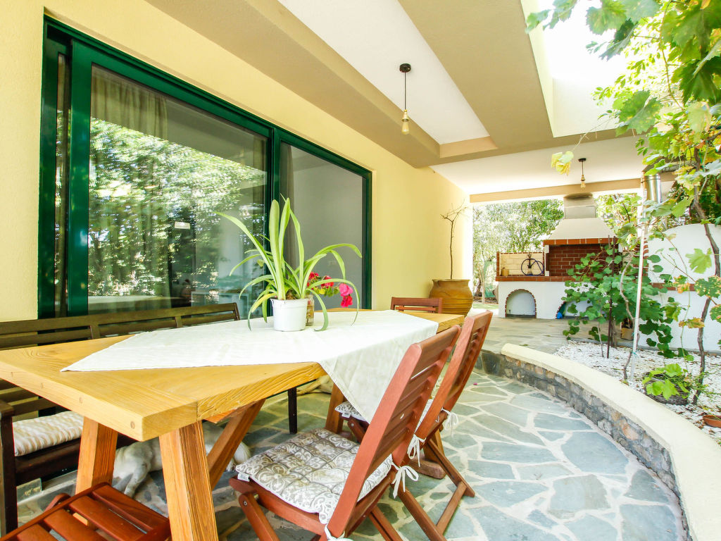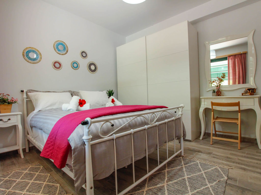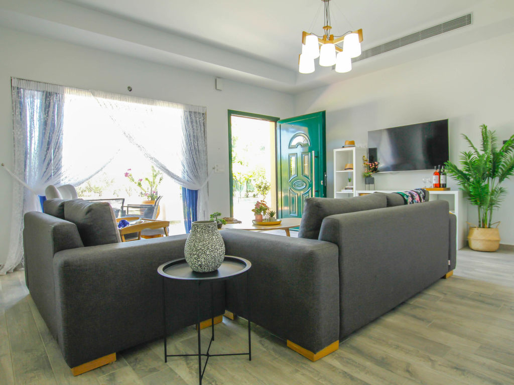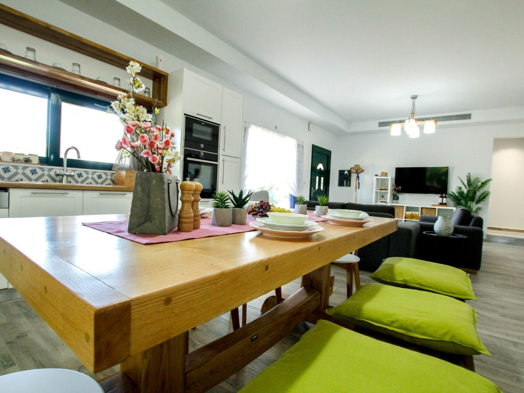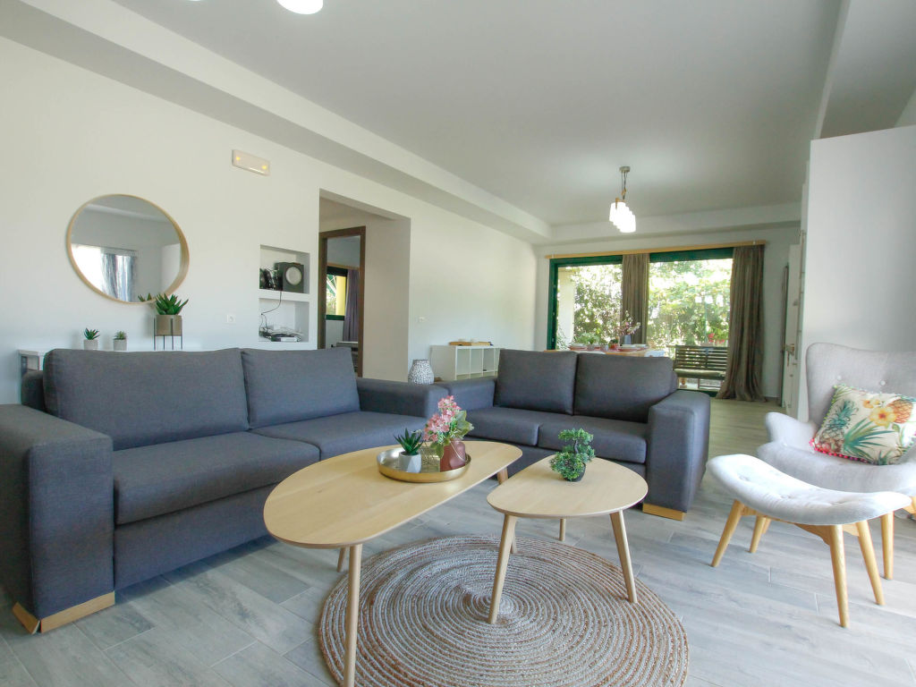 "Aether", 4-Zimmer-Villa 130 m2. Geräumig und hell, komfortabel und schön eingerichtet: offenes Wohn-/Schlafzimmer mit 1 Doppeldiwanbett und Sat-TV (Flachbildschirm). Ausgang zum Garten, zur Terrasse. 1 Doppelzimmer mit 1 Doppelbett, Dusche/WC und TV (Flachbildschirm). 2 Doppelzimmer, jedes Zimmer mit 1 Doppelbett. Offene Küche (Backofen, Geschirrspüler, 4 Glaskeramikherd Platten, Toaster, Wasserkocher, Mikrowelle, elektrische Kaffeemaschine) mit Esstisch. Dusche/WC. Klimaanlage. Grosse Terrasse teilweise überdacht. Gartengrill. Schöne Sicht auf die Landschaft. Zur Verfügung: Waschmaschine, Safe, Bügeleisen, Haartrockner. Internet (Wireless LAN, gratis).