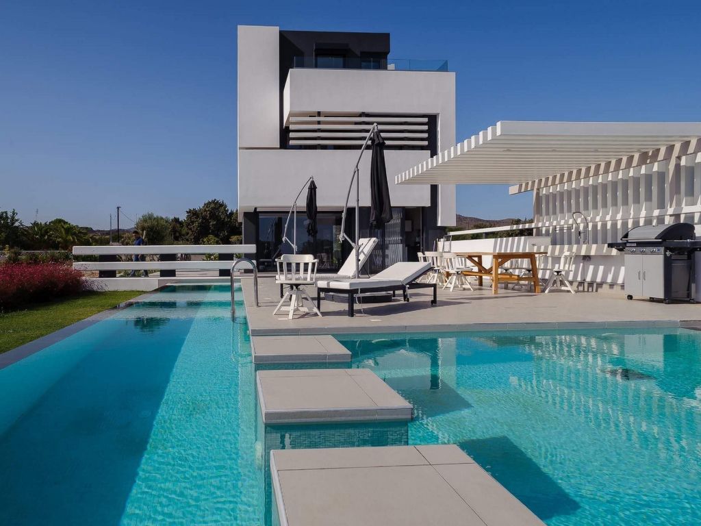 Moderne, alleinstehende, komfortable Villa "Villa Laysan". Im Ortsteil Gennadi, ruhige, sonnige Lage, 140 m vom Meer, 140 m vom Strand. Zur Alleinbenutzung: gepflegter Garten mit Rasen und Blumen, Schwimmbad eckig (50 m2, 5 - 160 cm tief, 01.04.-30.11.) mit Meerwasser. Parkplatz beim Haus. Lebensmittelgeschäft 2.5 km, Supermarkt 2.5 km, Restaurant 2.5 km, Café 2.5 km. Golfplatz (18 Loch) 48 km. Nahe gelegene Sehenswürdigkeiten: Lindos Acropolis 23 km, Valley of the Butterflies 68 km, Hortis Wild Life Reservation 14 km, Natural Park of Kalathos Mountain 24 km, Prasonisi Kite Beach 27 km.