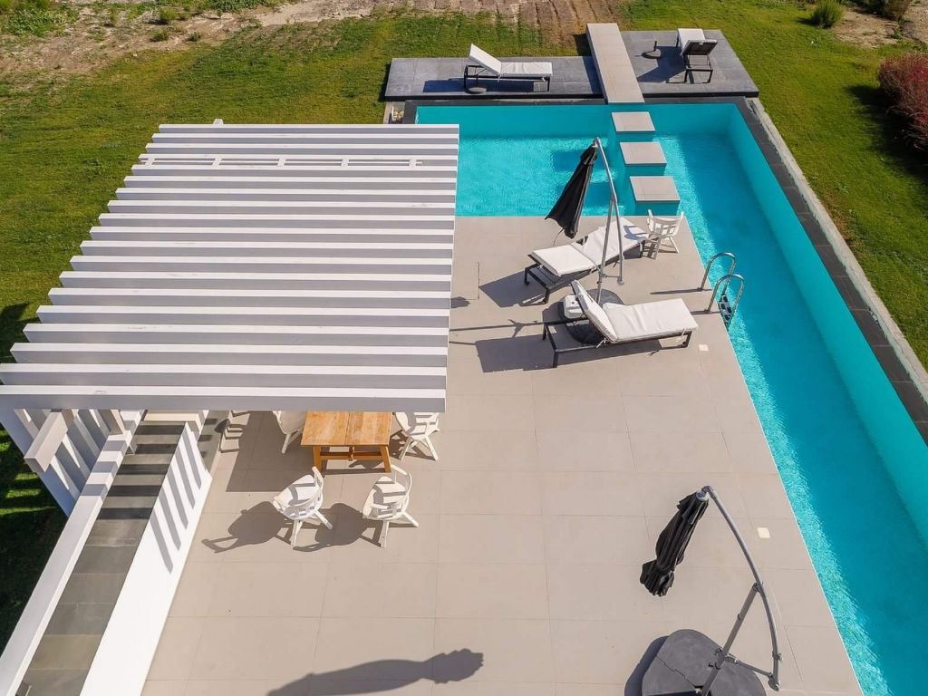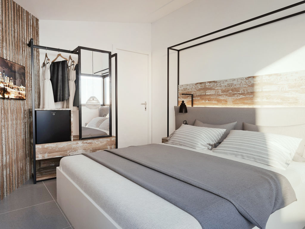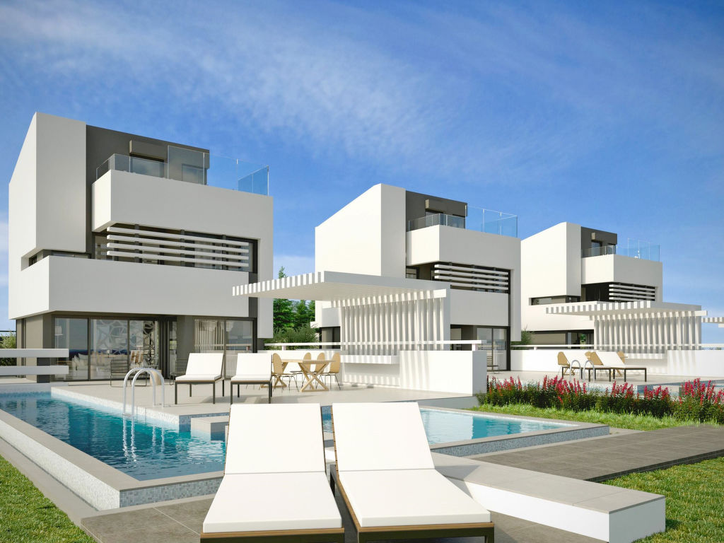 "Villa Great", 4-Zimmer-Villa 150 m2 auf 4 Stockwerken. Geräumig und hell, komfortabel und modern eingerichtet: offenes Wohnzimmer mit Sat-TV (Flachbildschirm), Radio, DVD und Klimaanlage. Ausgang zur Terrasse, zum Schwimmbad. Grosse, offene Küche (Backofen, Geschirrspüler, 4 Glaskeramikherd Platten, elektrische Kaffeemaschine) mit Esstisch. Klimaanlage. Unteres Geschoss: (geländerlose Treppe) 1 offenes Zimmer mit 1 Doppelbett, Dusche/WC und Sat-TV (Flachbildschirm). Klimaanlage. Obergeschoss: (geländerlose Treppe) 1 Zimmer mit 1 Doppelbett. Ausgang zum Balkon. Dusche/WC. Klimaanlage. 2. Obergeschoss: (geländerlose Treppe) 1 Zimmer mit 1 Doppelbett und Dusche/WC. Ausgang zum Balkon. Klimaanlage. 2 Balkone, grosse Terrasse. Terrassenmöbel, Balkonmöbel, Gartengrill, Liegestühle. Schöne Sicht auf das Meer. Zur Verfügung: Waschmaschine, Safe, Bügeleisen, Haartrockner. Internet (Wireless LAN, gratis). IPod docking station. Bitte beachten: geeignet für Familien. Nichtraucher-Haus.