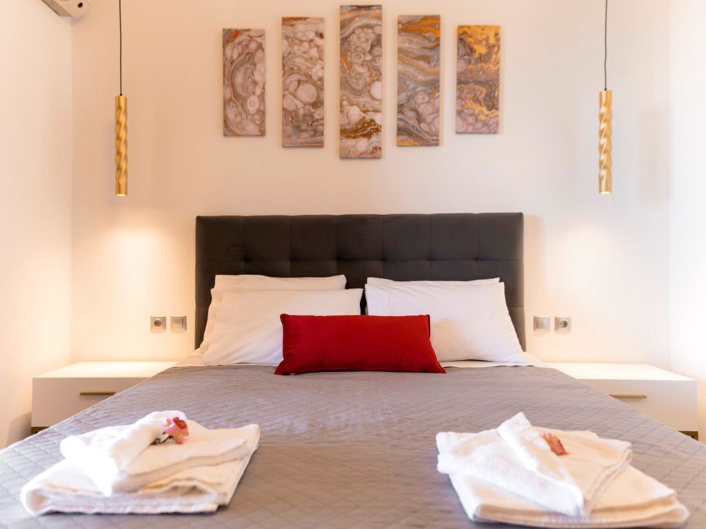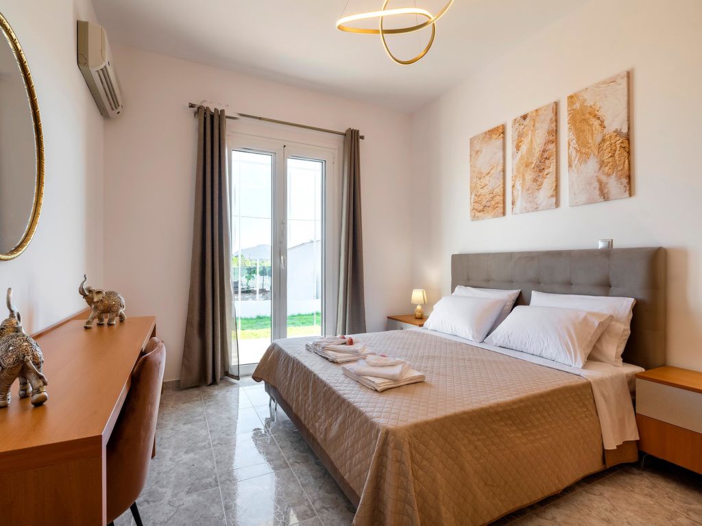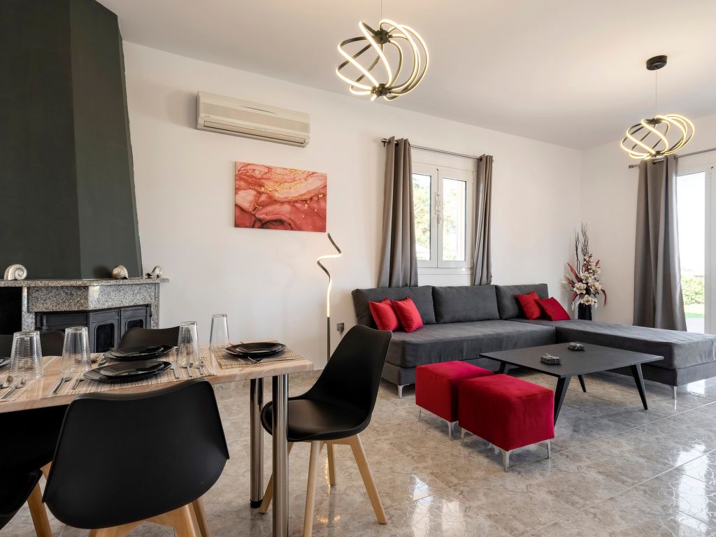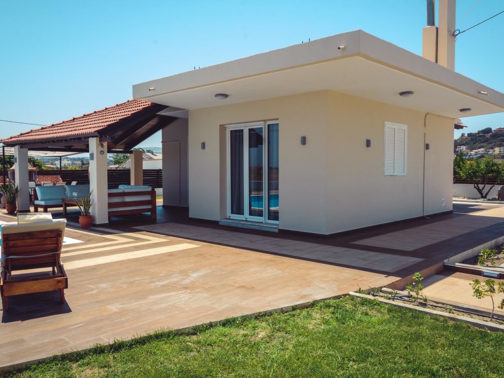 "Elysian", 3-Zimmer-Villa 85 m2. Geräumig und hell, komfortabel und schön eingerichtet: offenes Wohn-/Schlafzimmer mit 2 Diwanbetten, offenem Kamin, Esstisch und Sat-TV (Flachbildschirm). Ausgang zum Garten, zum Schwimmbad. 2 Doppelzimmer, jedes Zimmer mit 1 Doppelbett. Ausgang zum Garten. Offene Küche (Backofen, 4 Glaskeramikherd Platten, Mikrowelle, elektrische Kaffeemaschine). Bad/WC. Klimaanlage. Grosse Terrasse teilweise überdacht. Gartengrill. Schöne Sicht auf die Landschaft. Zur Verfügung: Waschmaschine, Safe, Bügeleisen, Haartrockner. Internet (Wireless LAN, gratis).