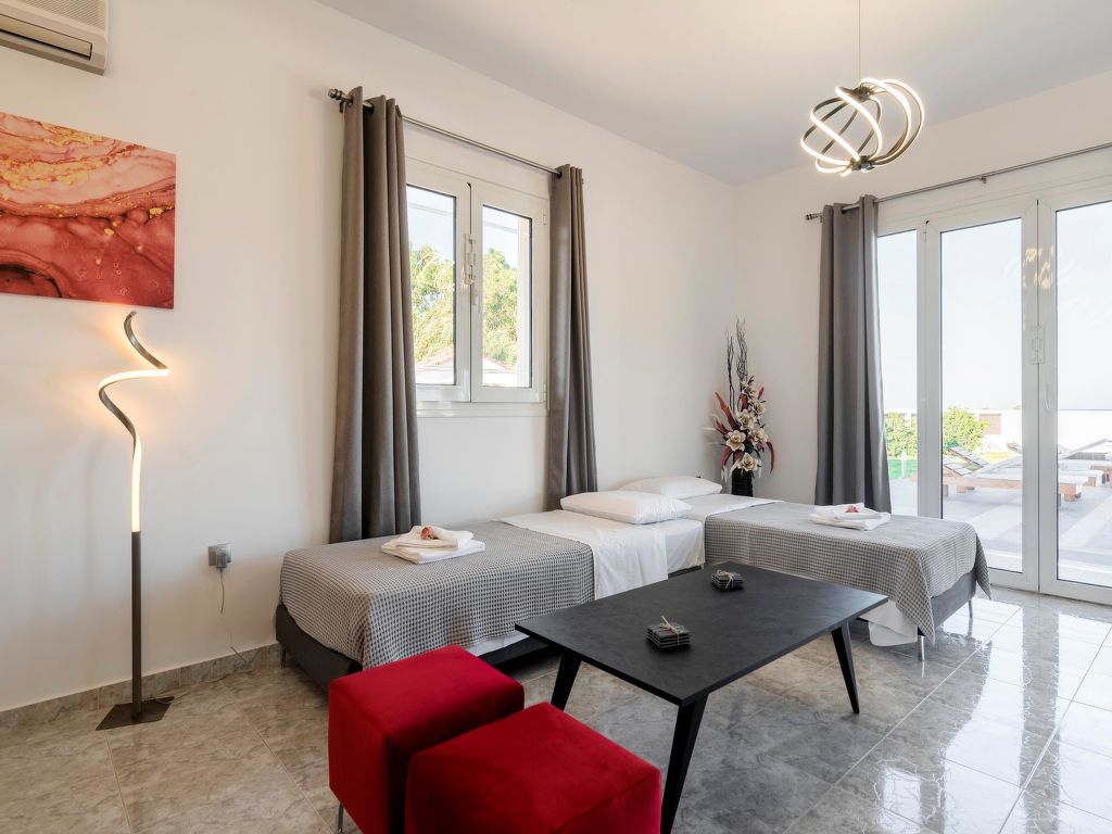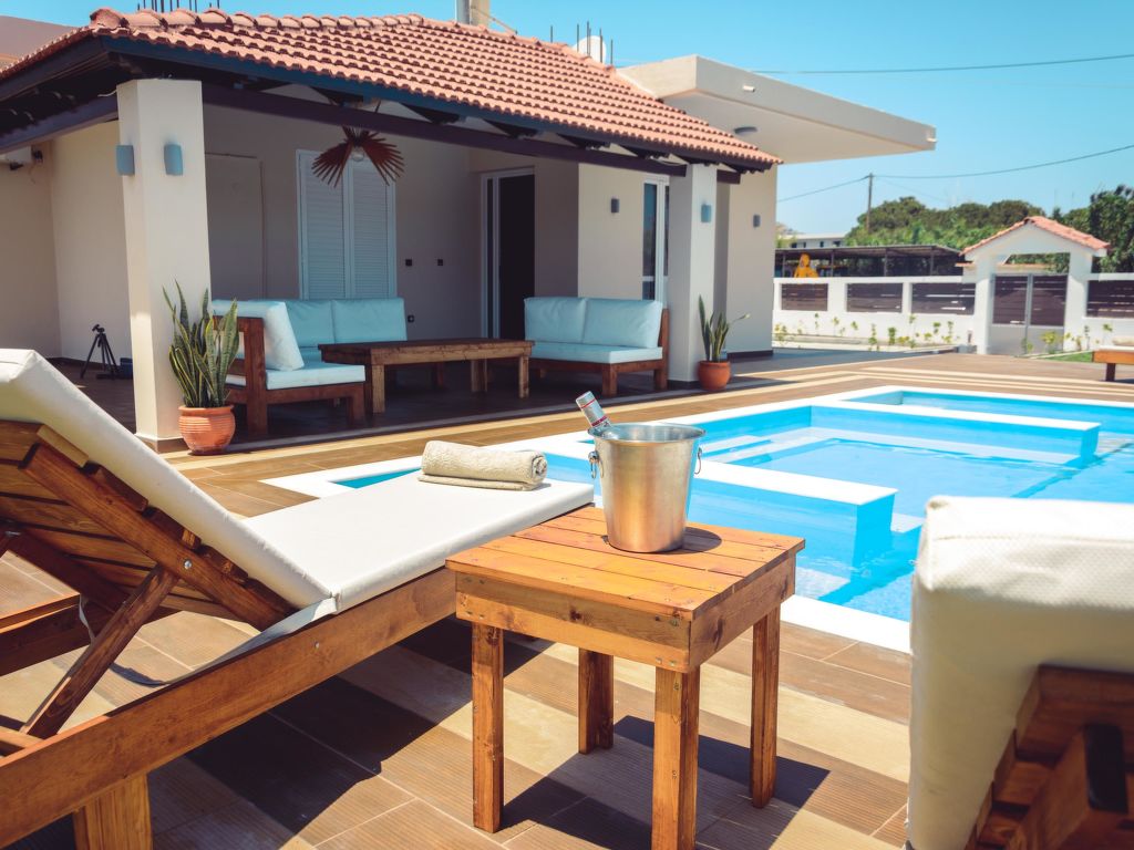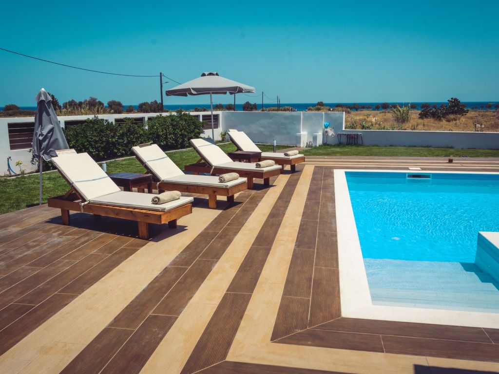 Schöne, alleinstehende, komfortable Villa "Elysian", umgeben von Feldern. Im Ortsteil Afandou, ruhige, sonnige Lage, 300 m vom Meer, 300 m vom Strand. Zur Alleinbenutzung: schöner, gepflegter Garten mit Blumen und Bäumen, Liegewiese, Schwimmbad eckig (49 m2, 70 - 150 cm tief, 01.04.-30.11.) mit Innentreppe. Parkplatz beim Haus. Lebensmittelgeschäft 2 km, Supermarkt 2 km, Restaurant 2 km, Bar 2 km, Bäckerei 2 km, Café 2 km, Sandstrand "Afandou" 300 m. Golfplatz (18 Loch) 1.5 km, Reitstall 8.4 km. Nahe gelegene Sehenswürdigkeiten: Valley of the Butterflies 19.4 km, Bee Museum of Rhodes 14.3 km, Lindos Acropolis 31 km, Asklipio Castle 43.7 km, Palace of the Grand Master of Knights 21.3 km, Waterpark Rhodes 10.7 km. Bitte beachten: Fahrzeug empfohlen. Geeignet für Familien, Babyausstattung auf Anfrage (inkl.). Jugendgruppen nur auf Anfrage.