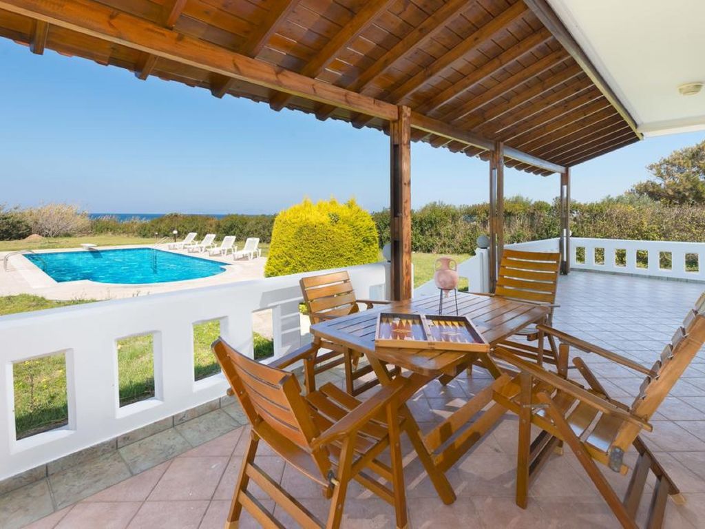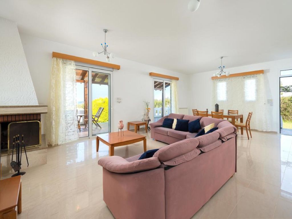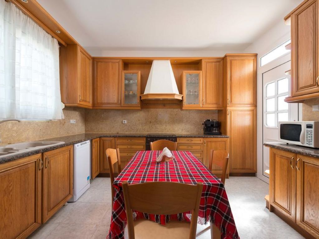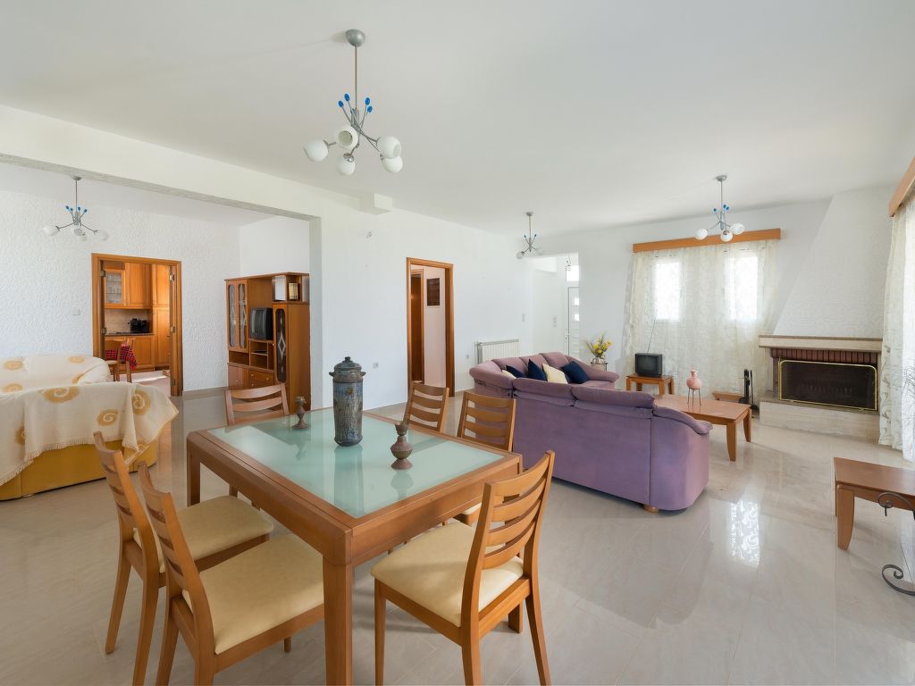 "Kalavarda Villa", 5-Zimmer-Villa 210 m2 auf 2 Stockwerken. Geräumig und hell, komfortabel und schön eingerichtet: offenes Wohn-/Esszimmer mit offenem Kamin, Esstisch und Sat-TV (Flachbildschirm), DVD. Ausgang zum Garten, zur Terrasse, zum Schwimmbad. 1 Zimmer mit 1 Doppelbett. Ausgang zur Terrasse. Offene Küche (Backofen, Geschirrspüler, 4 Glaskeramikherd Platten, Mikrowelle, elektrische Kaffeemaschine). Dusche/WC. Klimaanlage. Obergeschoss: (geländerlose Treppe) 3 Zimmer, jedes Zimmer mit 1 Doppelbett. Ausgang zum Balkon. Bad/WC. Klimaanlage. 2 grosse Balkone, grosse Terrasse. Gartengrill. Sehr schöne Sicht auf das Meer und die Landschaft. Zur Verfügung: Waschmaschine, Safe, Bügeleisen, Haartrockner. Internet (Wireless LAN, gratis). Bitte beachten: Nichtraucher-Haus.