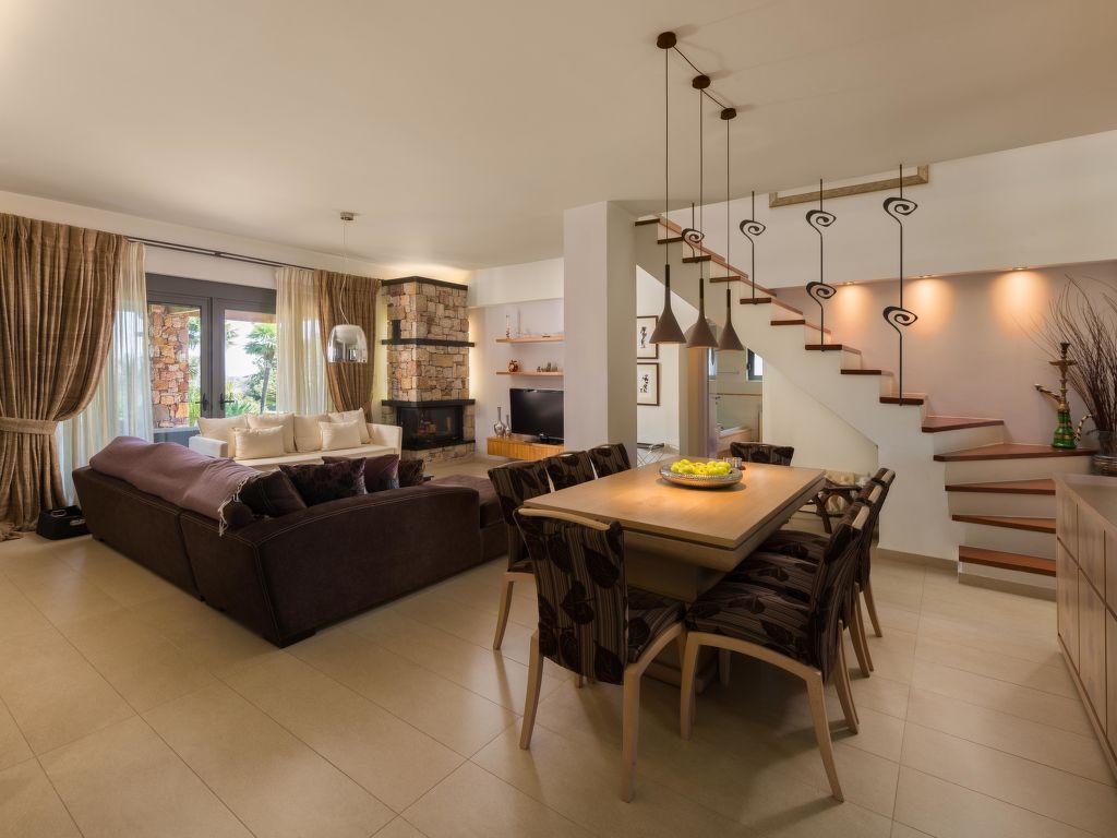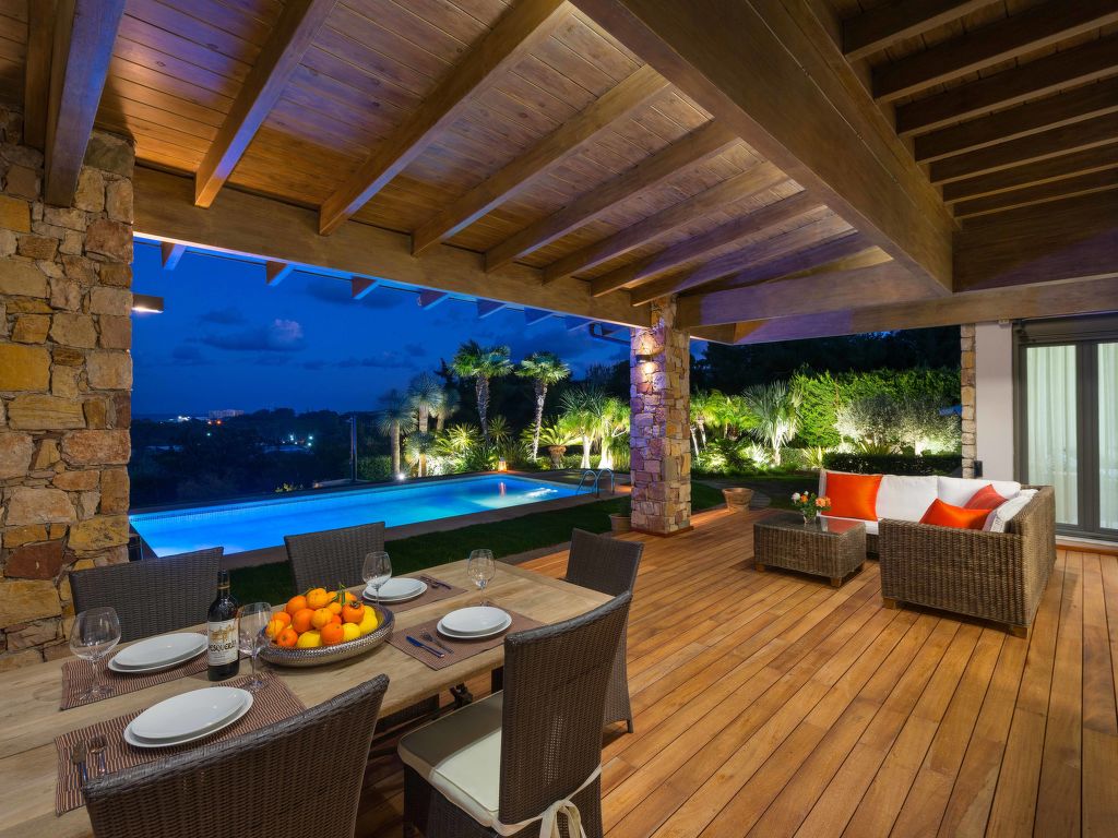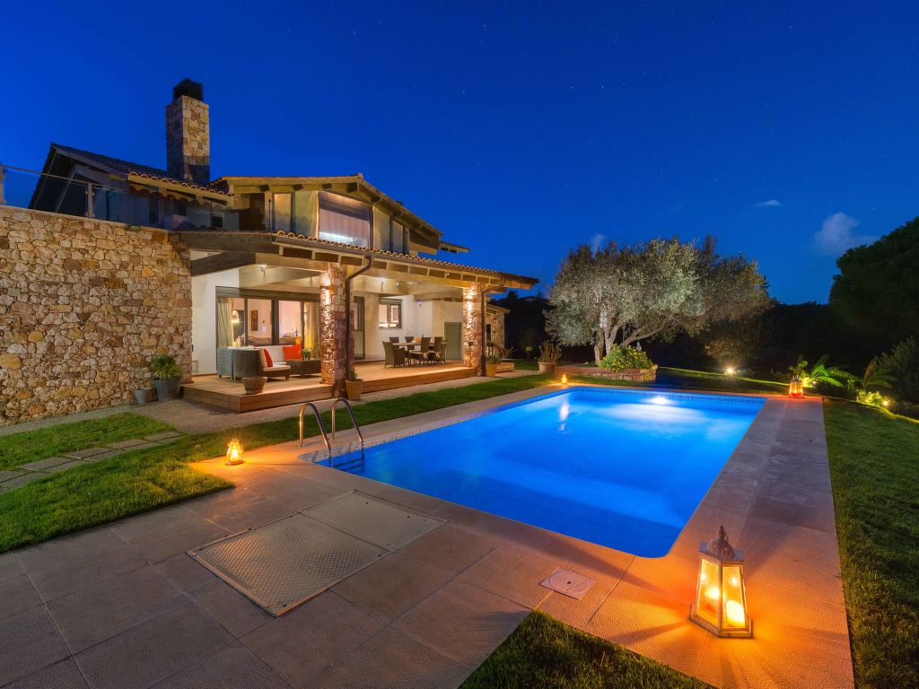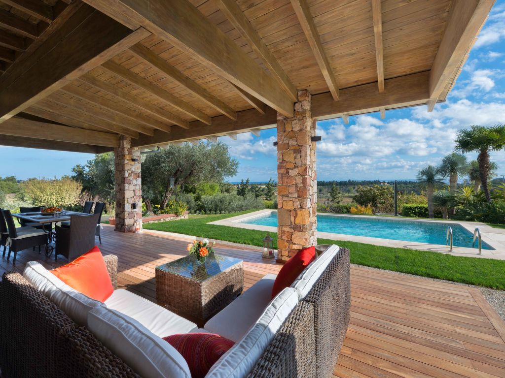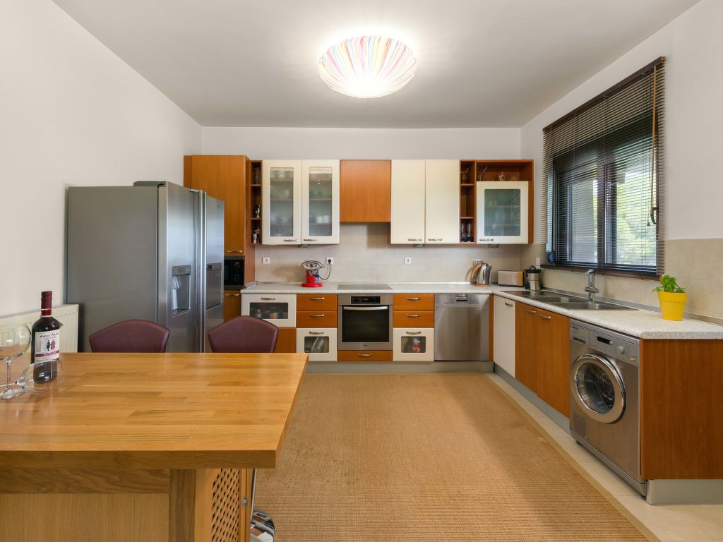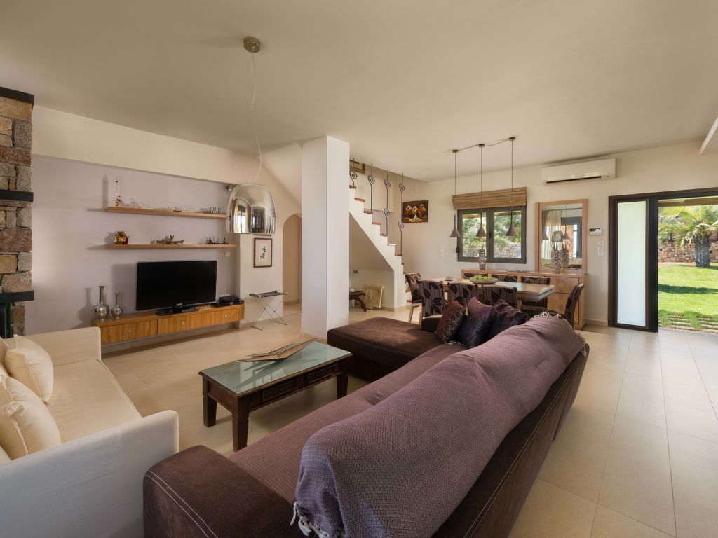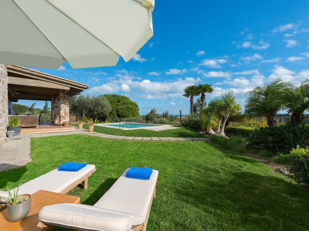 "Verde", 4-Zimmer-Villa 180 m2 auf 2 Stockwerken. Geräumig und hell: offenes Wohn-/Schlafzimmer mit 2 Diwanbetten, offenem Kamin, Esstisch und Sat-TV (Flachbildschirm), DVD. Ausgang zum Garten, zum Schwimmbad. 2 Doppelzimmer, jedes Zimmer mit 1 Doppelbett. Offene Küche (Backofen, Geschirrspüler, 4 Glaskeramikherd Platten, Wasserkocher, Mikrowelle, elektrische Kaffeemaschine) mit kleinem Esstisch. Sep. WC, Bad/Dusche/WC. Klimaanlage. Obergeschoss: (geländerlose Treppe) 1 Doppelzimmer mit 1 Doppelbett, Dusche/WC und Sprudelbad. Ausgang zum Balkon. Klimaanlage. Grosser Balkon. Gartengrill. Schöne Sicht auf das Meer und die Landschaft. Zur Verfügung: Waschmaschine, Safe, Bügeleisen, Haartrockner. Internet (Wireless LAN, gratis). Geeignet für Familien.