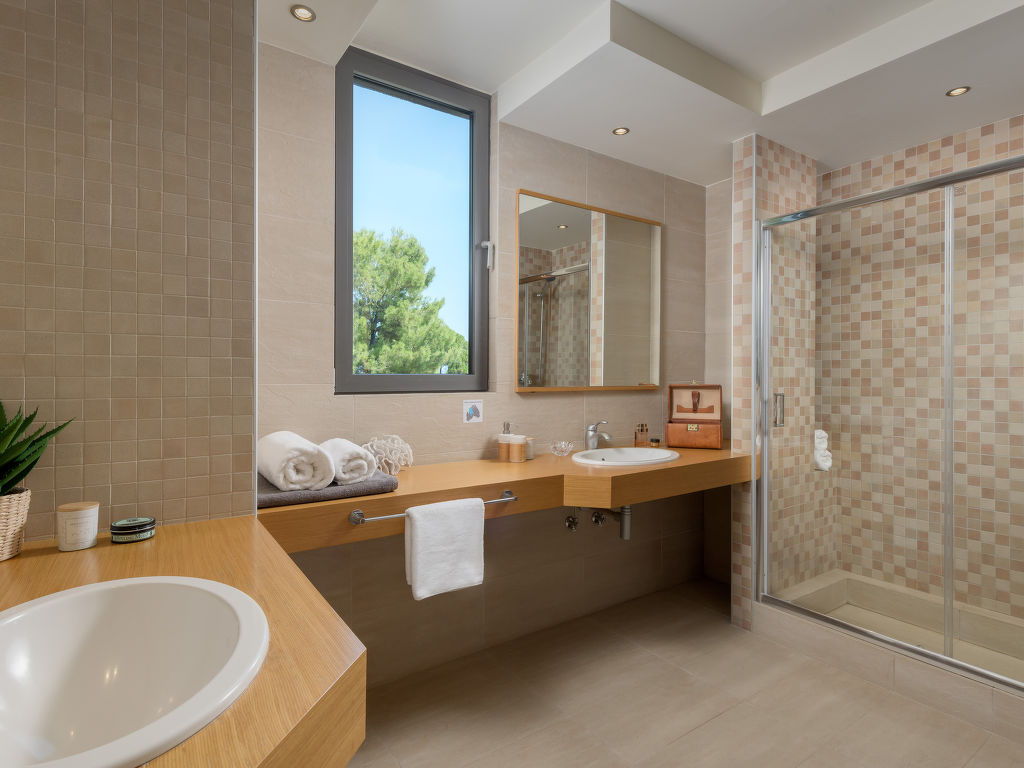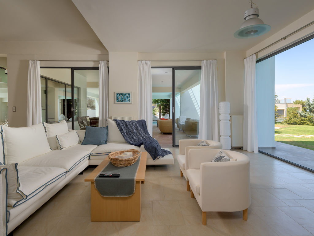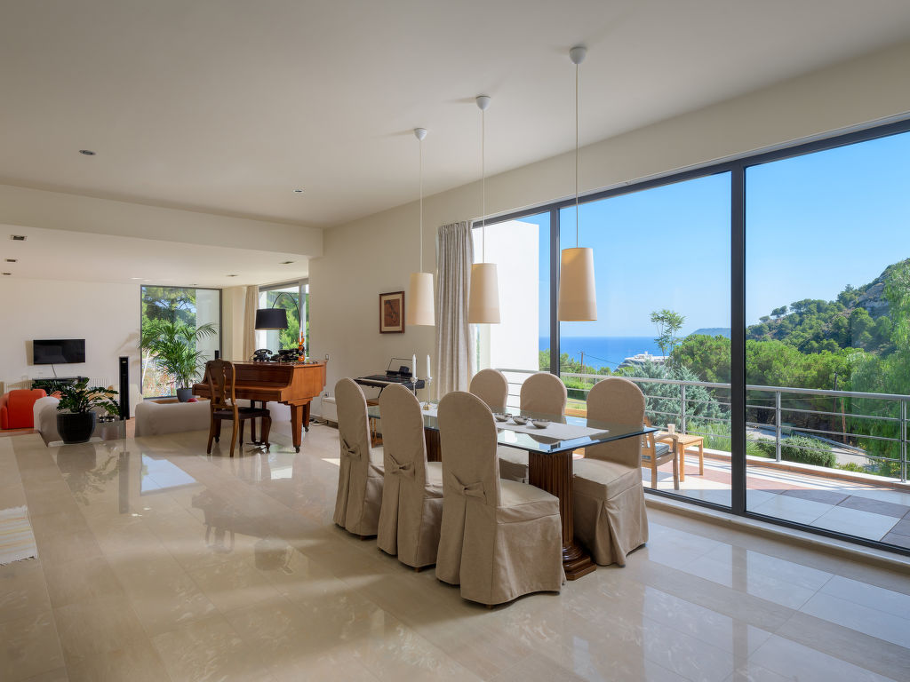 "Ixian Vista", 6-Zimmer-Villa 460 m2 auf 3 Stockwerken. Geräumig und hell, schön und modern eingerichtet: offenes Wohn-/Esszimmer mit Esstisch und Sat-TV (Flachbildschirm). Offene Küche (Backofen, Geschirrspüler, 4 Glaskeramikherd Platten, Toaster, Wasserkocher, Mikrowelle, elektrische Kaffeemaschine, Kochinsel). Sep. WC. Klimaanlage. Unteres Geschoss: offenes Wohn-/Schlafzimmer mit 1 Doppeldiwanbett und Sat-TV (Flachbildschirm). Ausgang zum Garten, zum Schwimmbad. 1 Doppelzimmer mit 2 Betten und Dusche/WC. Ausgang zum Garten. 2 Doppelzimmer, jedes Zimmer mit 1 Doppelbett. Ausgang zum Balkon. Kleine Kochnische (Toaster, Wasserkocher, elektrische Kaffeemaschine). Klimaanlage. Obergeschoss: (geländerlose Treppe) 1 Doppelzimmer mit 1 Doppelbett und Dusche/WC. Ausgang zum Balkon. Bad/WC. Klimaanlage. 2 grosse Balkone. Gartengrill. Schöne Sicht auf das Meer und die Landschaft. Zur Verfügung: Waschmaschine, Bügeleisen, Haartrockner. Internet (Wireless LAN, gratis).
