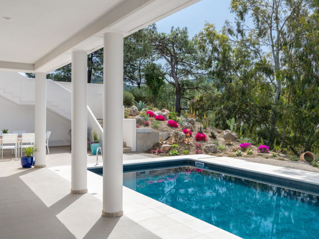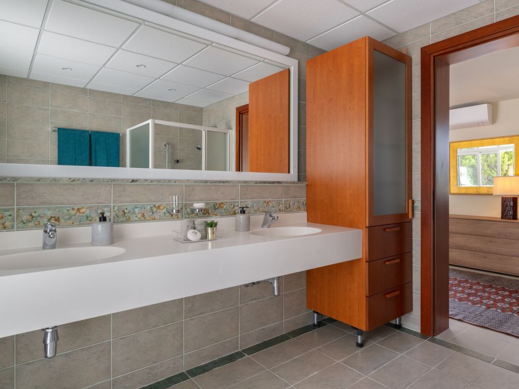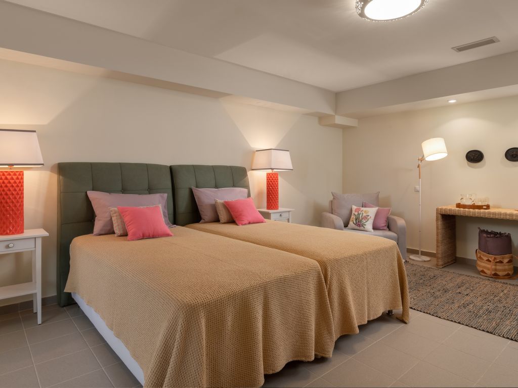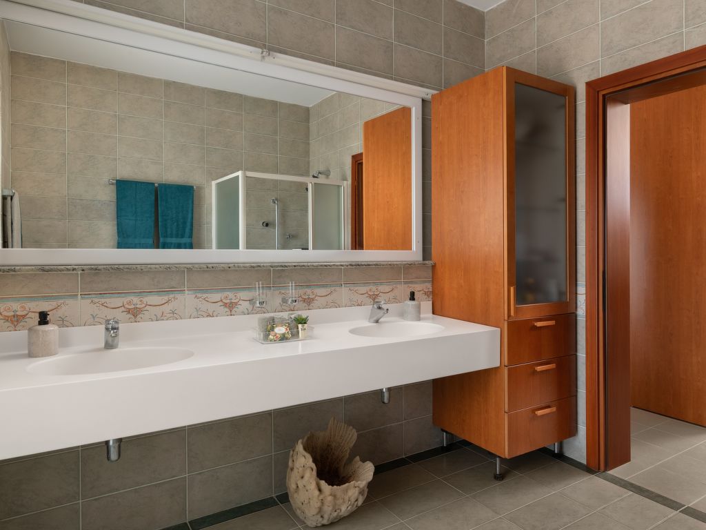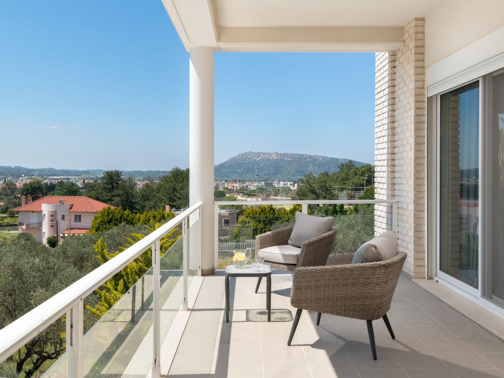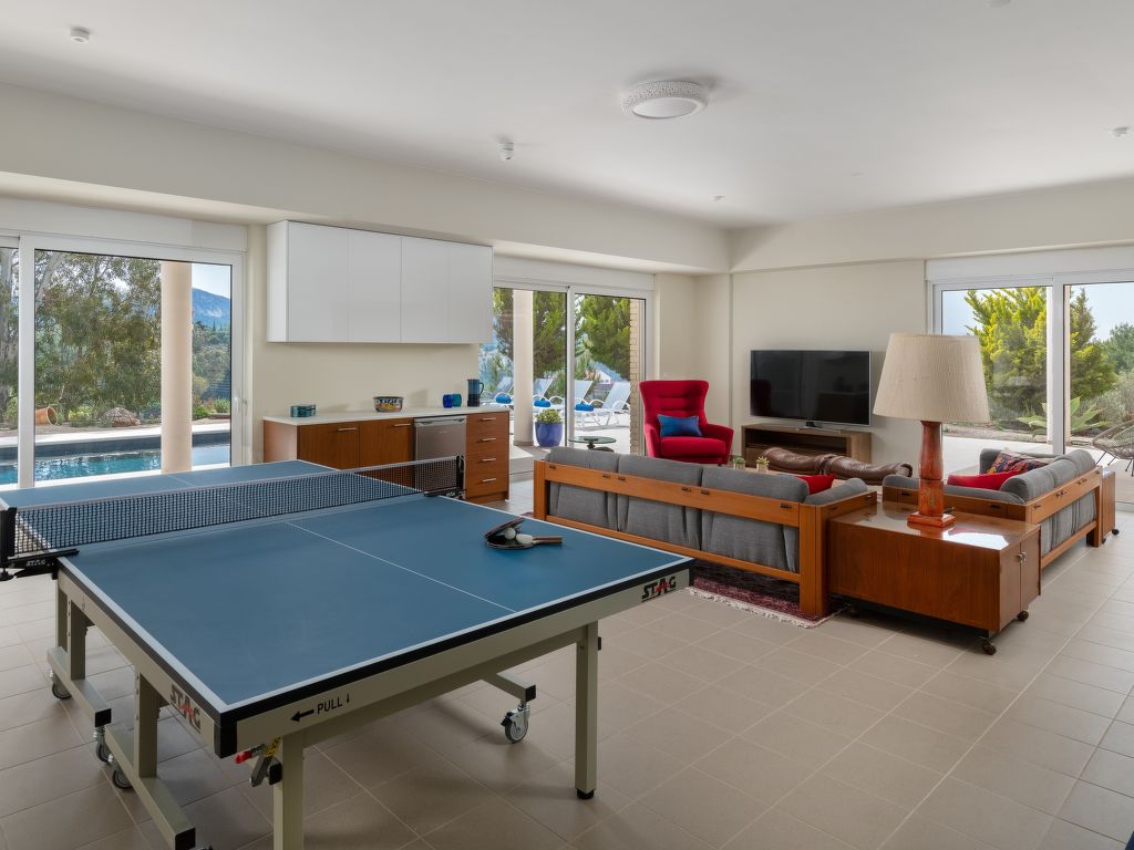 "Hill Top", 5-Zimmer-Villa 400 m2 auf 2 Stockwerken. Geräumig und hell, komfortabel und schön eingerichtet: offenes Wohn-/Esszimmer mit Esstisch und Sat-TV (Flachbildschirm), Radio. Ausgang zum Garten, zum Schwimmbad. 1 Doppelzimmer mit 2 Betten, 1 Doppelbett und Dusche/WC. Ausgang zum Garten. 1 Doppelzimmer mit 3 Betten und Dusche/WC. Ausgang zum Garten. Offene Küche (Backofen, Geschirrspüler, 4 Flammen, Toaster, Wasserkocher, Mikrowelle, elektrische Kaffeemaschine). Klimaanlage. Obergeschoss: (geländerlose Treppe) 1 Doppelzimmer mit 1 Doppelbett und Dusche/WC. Ausgang zum Balkon. 1 Doppelzimmer mit 3 Betten und Dusche/WC. Ausgang zum Balkon. Klimaanlage. 2 grosse Balkone. Gartengrill. Schöne Sicht auf die Landschaft. Zur Verfügung: Waschmaschine, Wäschetrockner, Safe, Bügeleisen, Haartrockner. Internet (Wireless LAN, gratis).