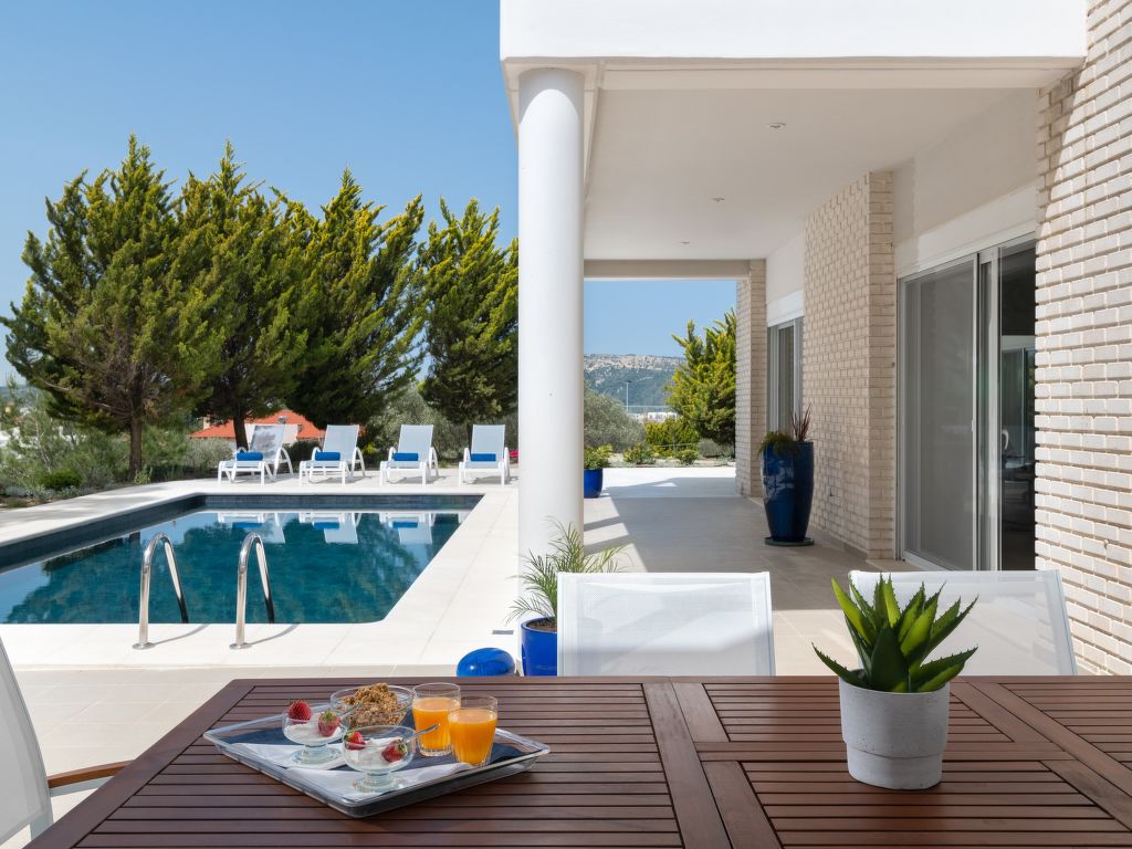 Moderne, schöne, alleinstehende Villa "Hill Top", auf 2 Stockwerken, umgeben von Bäumen und Feldern. Im Ortsteil Pastida, 4.9 km vom Zentrum von Kremasti, ruhige, sonnige Lage auf einem Hügel, 5.8 km vom Meer, 5.8 km vom Strand. Zur Alleinbenutzung: schöner, gepflegter Garten mit Blumen und Bäumen, Schwimmbad eckig (36 m2, 150 cm tief, 01.04.-30.11.) mit Innentreppe. Grill, Parkplatz beim Haus. Lebensmittelgeschäft 1.1 km, Supermarkt 1.1 km, Restaurant 1.1 km, Bar 1.1 km, Bäckerei 1.1 km, Café 1.1 km, Kieselstrand "Kremasti" 5.8 km. Golfplatz (18 Loch) 14.5 km, Reitstall 5.5 km. Nahe gelegene Sehenswürdigkeiten: Valley of the Butterflies 15 km, Lindos Acropolis 45.7 km, Bee Museum 3 km, Palace of the Grand Master of Knights 16.7 km, Medieval City of Rhodes 14.6 km, CAIR Wine Museum 18.7 km. Bitte beachten: Fahrzeug empfohlen. Geeignet für Familien, Babyausstattung auf Anfrage (inkl.). Jugendgruppen nur auf Anfrage.