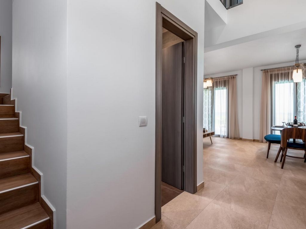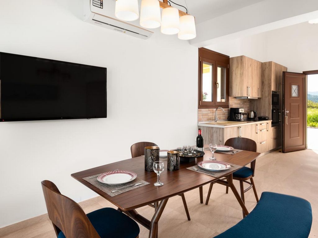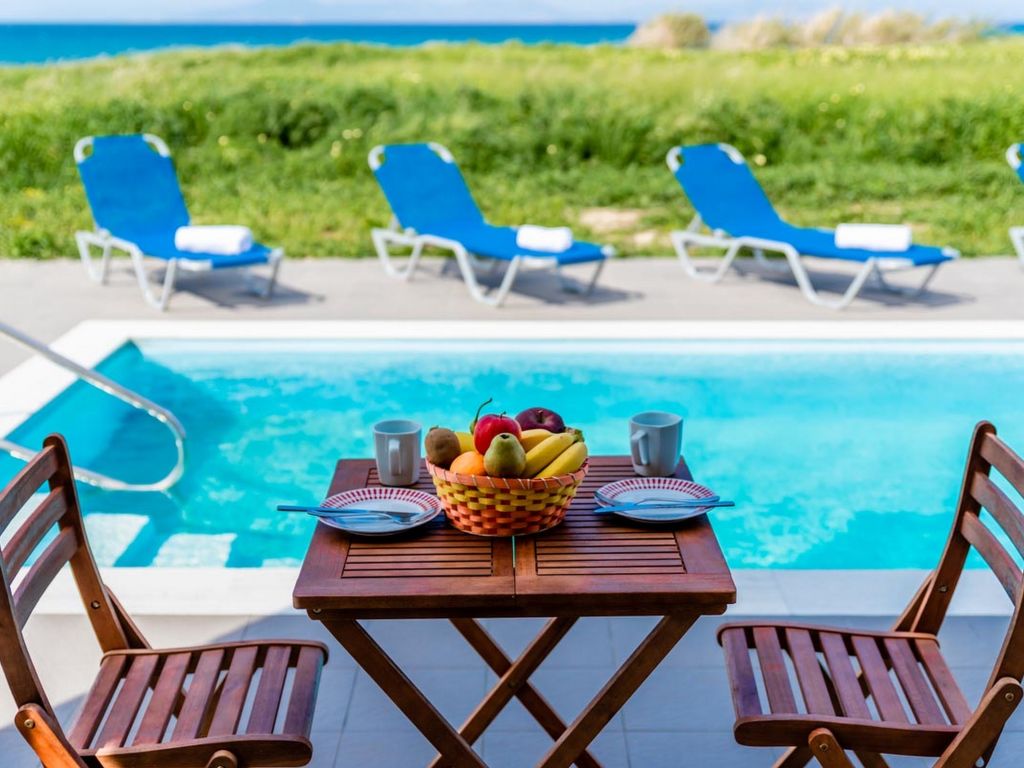 "Fanes Seafront Villa I", 3-Zimmer-Villa 120 m2 auf 2 Stockwerken. Geräumig und hell, komfortabel und schön eingerichtet: offenes Wohn-/Schlafzimmer mit 1 Diwanbett, Esstisch und Sat-TV (Flachbildschirm). Ausgang zum Garten, zum Schwimmbad. Offene Küche (Backofen, Toaster, Wasserkocher, Mikrowelle, elektrische Kaffeemaschine). Dusche/WC. Klimaanlage. Obergeschoss: (geländerlose Treppe) 2 Doppelzimmer, jedes Zimmer mit 1 Doppelbett. Ausgang zum Balkon. Dusche/WC. Klimaanlage. Grosser Balkon. Gartengrill. Schöne Panoramasicht auf das Meer und die Landschaft. Zur Verfügung: Waschmaschine, Safe, Bügeleisen, Haartrockner. Internet (Wireless LAN, gratis).