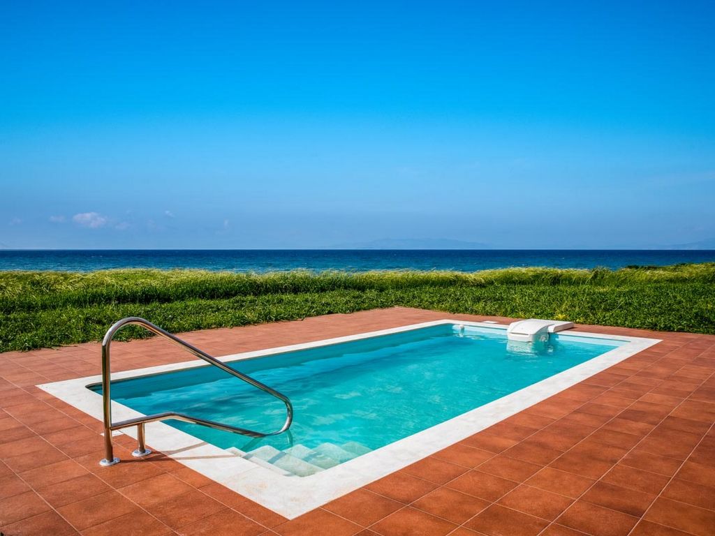 Moderne, schöne Villa "Fanes Seafront Villas", auf 2 Stockwerken, einseitig angebaut. Im Ortsteil Fanes, ruhige, sonnige Lage, 50 m vom Meer, 50 m vom Strand, direkter Zugang zum Strand. Zur Alleinbenutzung: schöner, gepflegter Garten mit Bäumen, Liegewiese, Schwimmbad eckig (18 m2, 140 cm tief, 01.04.-30.11.) mit Innentreppe. Grill, Parkplatz beim Haus. Lebensmittelgeschäft 1.7 km, Supermarkt 1.7 km, Restaurant 1.7 km, Bar 1.7 km, Bäckerei 1.7 km, Café 1.7 km, Kieselstrand "Fanes" 50 m. Golfplatz (18 Loch) 34.6 km, Reitstall 25.5 km. Nahe gelegene Sehenswürdigkeiten: Valley of the Butterflies 13.8 km, Lindos Acropolis 53.3 km, Asklipio Castle 50.5 km, Palace of the Grand Master of Knights 31.1 km, Medieval City of Rhodes 28.9 km, CAIR Wine Museum 1.6 km. Bitte beachten: Fahrzeug empfohlen. Geeignet für Familien, Babyausstattung auf Anfrage (inkl.). Jugendgruppen nur auf Anfrage. In diesem Haus sind weitere Ferienwohnungen mietbar. Ferienwohnung Ref. GR5064.2.1 befindet sich auf dem gleichen Grundstück.