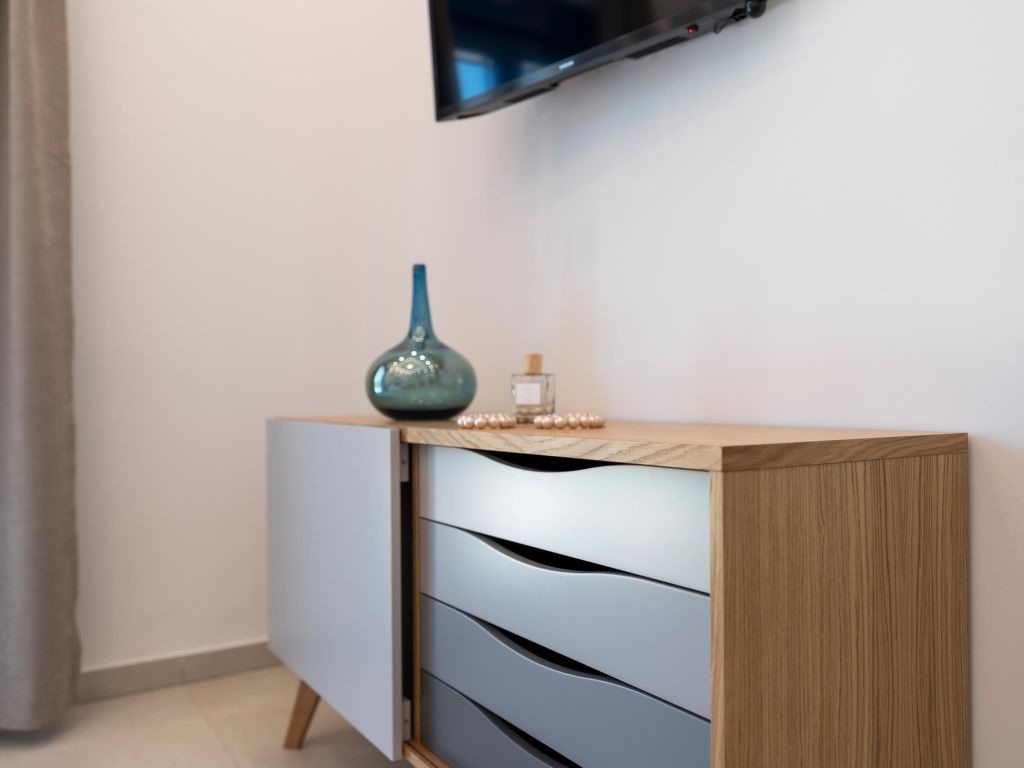 "Mare", 3-Zimmer-Villa 85 m2. Geräumig und hell, komfortabel und schön eingerichtet: offenes Wohn-/Schlafzimmer mit 1 Doppeldiwanbett, offenem Kamin, Esstisch und Sat-TV (Flachbildschirm). Ausgang zum Garten, zum Schwimmbad. 1 Doppelzimmer mit 1 Doppelbett, Dusche/WC und Sat-TV (Flachbildschirm). Ausgang zur Terrasse, zum Schwimmbad. 1 Doppelzimmer mit 1 Doppelbett, Dusche/WC und Sat-TV (Flachbildschirm). Offene Küche (Backofen, Geschirrspüler, 2 Glaskeramikherd Platten, Toaster, Wasserkocher, Mikrowelle, elektrische Kaffeemaschine). Dusche/WC. Klimaanlage. Terrasse teilweise überdacht. Schöne Sicht auf die Landschaft. Zur Verfügung: Waschmaschine, Safe, Bügeleisen, Haartrockner. Internet (Wireless LAN, gratis). Bitte beachten: für Kleinkinder nicht geeignet ein Doppelzimmer liegt außerhalb der Wohnung.