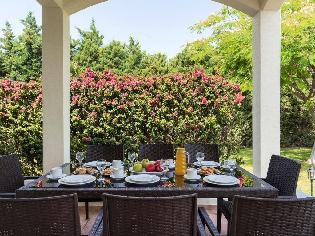"Queen", 6-Zimmer-Villa 320 m2 auf 2 Stockwerken. Geräumig und hell, komfortabel und schön eingerichtet: offenes Wohn-/Esszimmer mit offenem Kamin, Esstisch und Sat-TV (Flachbildschirm), Radio und DVD. Ausgang zum Garten, zum Schwimmbad. 1 Doppelzimmer mit 1 Doppelbett. Offene Küche (Backofen, Geschirrspüler, 4 Glaskeramikherd Platten, Mikrowelle, elektrische Kaffeemaschine). Dusche/WC, sep. WC. Klimaanlage. Obergeschoss: (geländerlose Treppe) 1 Doppelzimmer mit 1 Doppelbett, Dusche/WC und Sprudelbad. Ausgang zum Balkon. 1 Doppelzimmer mit 2 Betten. 1 Doppelzimmer mit 1 Doppelbett. Ausgang zum Balkon. 1 Doppelzimmer mit 2 Betten. Ausgang zum Balkon. Bad/WC. Klimaanlage. Grosser Balkon. Gartengrill. Schöne Sicht auf die Landschaft. Zur Verfügung: Waschmaschine, Safe, Bügeleisen, Haartrockner. Internet (Wireless LAN, gratis). Geeignet für Familien.
