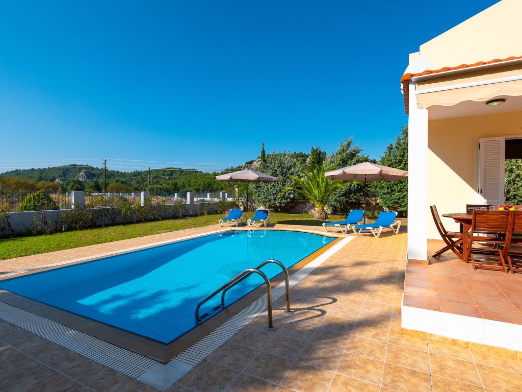 Schöne, alleinstehende, komfortable Villa "Olivia", auf 2 Stockwerken. Im Ortsteil Kolymbia, ruhige, sonnige Lage, 4 km vom Meer, 4 km vom Strand. Zur Alleinbenutzung: schöner, gepflegter Garten mit Blumen und Bäumen, Liegewiese, Schwimmbad eckig (24 m2, 150 cm tief, 01.04.-30.11.) mit Innentreppe. Grill, Parkplatz beim Haus. Lebensmittelgeschäft 2.5 km, Supermarkt 2.5 km, Restaurant 2.5 km, Bar 2.5 km, Bäckerei 2.5 km, Café 2.5 km, Kieselstrand "Kolymbia" 4 km. Golfplatz (18 Loch) 8.1 km, Reitstall 16.2 km. Nahe gelegene Sehenswürdigkeiten: Valley of the Butterflies 21 km, Lindos Acropolis 26.8 km, Asklipio Castle 39.5 km, Palace of the Grand Master of Knights 27.8 km, Medieval City of Rhodes 26.9 km, Seven Springs Waterfall 2.1 km. Bitte beachten: Fahrzeug empfohlen. Geeignet für Familien, Babyausstattung auf Anfrage (inkl.). Jugendgruppen nur auf Anfrage.