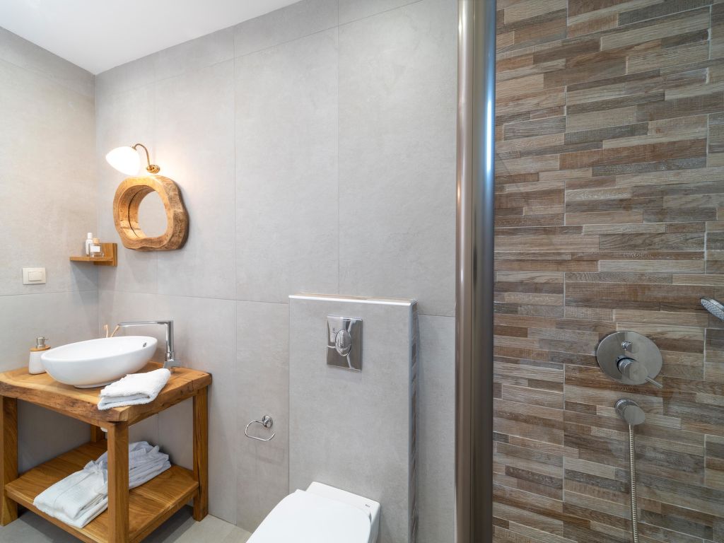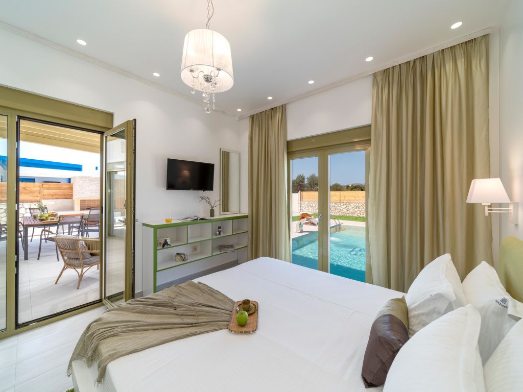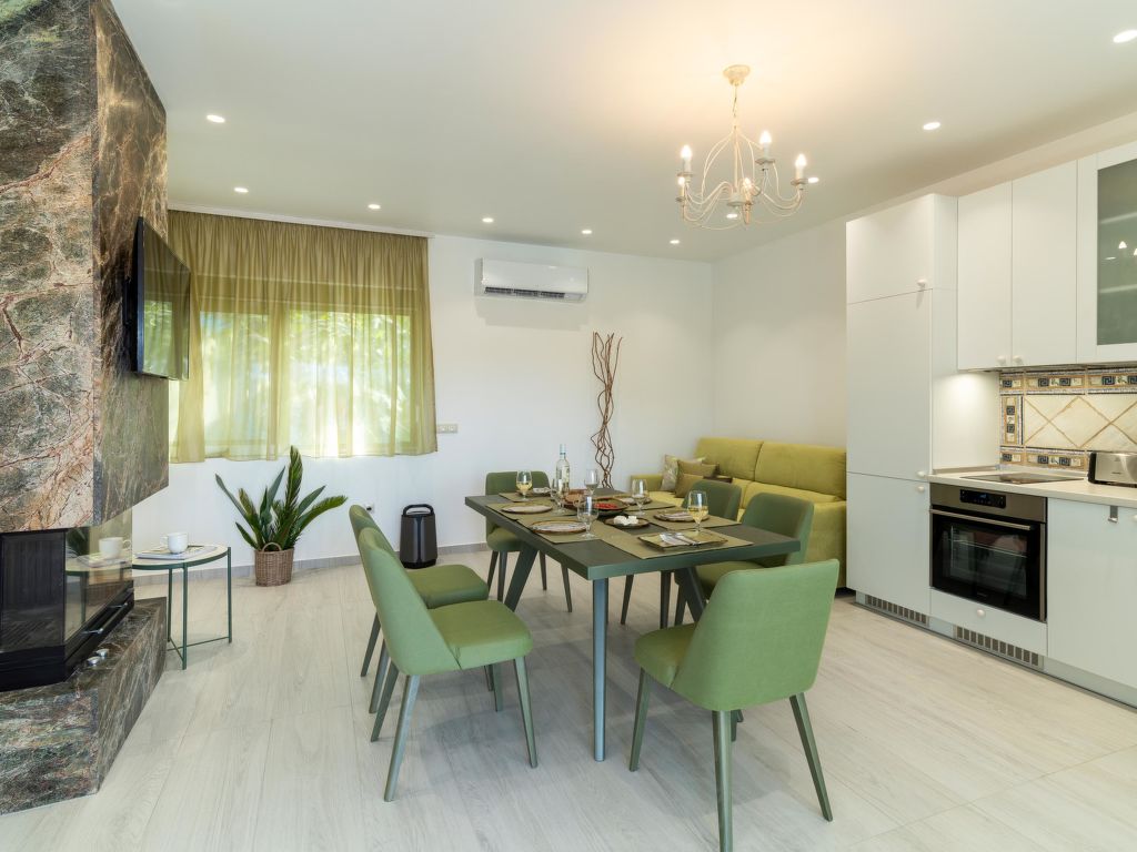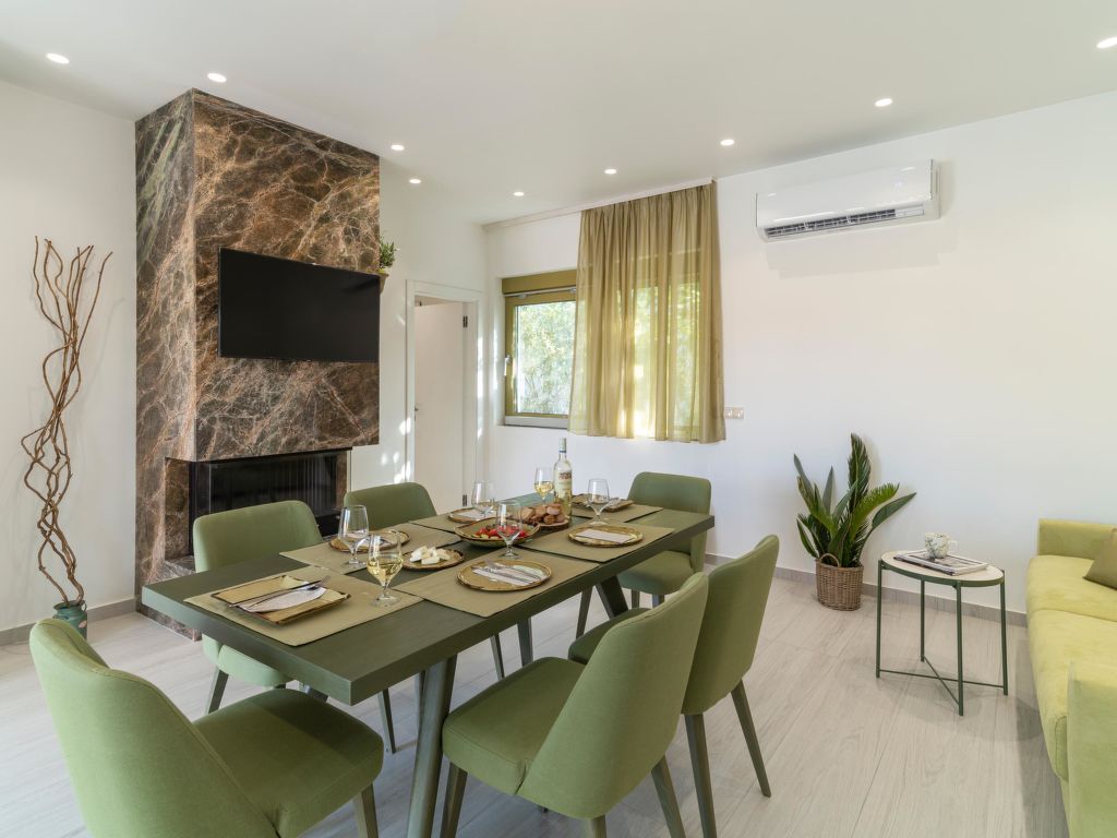 "Olive", 3-Zimmer-Villa 85 m2. Geräumig und hell, komfortabel und schön eingerichtet: offenes Wohn-/Schlafzimmer mit 1 Doppeldiwanbett, offenem Kamin, Esstisch und Sat-TV (Flachbildschirm). Ausgang zum Garten, zum Schwimmbad. 1 Doppelzimmer mit 1 Doppelbett, Dusche/WC und Sat-TV (Flachbildschirm). Ausgang zur Terrasse, zum Schwimmbad. 1 Doppelzimmer mit 1 Doppelbett, Dusche/WC und Sat-TV (Flachbildschirm). Offene Küche (Backofen, Geschirrspüler, 2 Glaskeramikherd Platten, Toaster, Wasserkocher, Mikrowelle, elektrische Kaffeemaschine). Dusche/WC. Klimaanlage. Terrasse teilweise überdacht. Schöne Sicht auf die Landschaft. Zur Verfügung: Waschmaschine, Safe, Bügeleisen, Haartrockner. Internet (Wireless LAN, gratis). Bitte beachten: für Kleinkinder nicht geeignet ein Doppelzimmer liegt außerhalb der Wohnung.