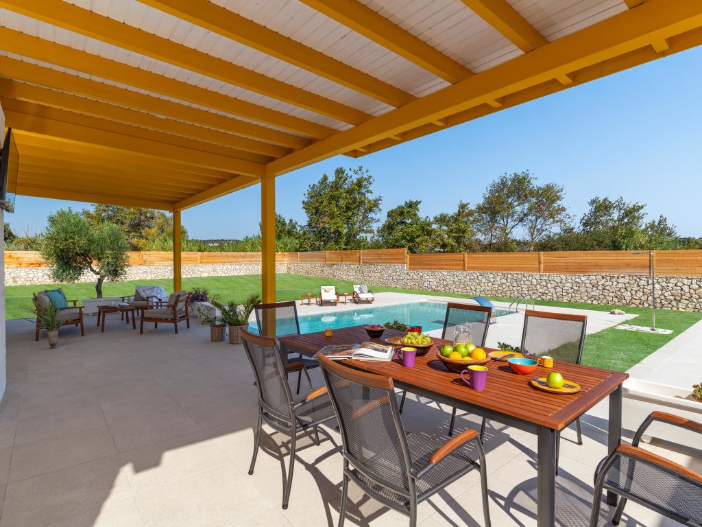 "Sun", 3-Zimmer-Villa 95 m2. Geräumig und hell, komfortabel und schön eingerichtet: offenes Wohn-/Schlafzimmer mit 1 Doppeldiwanbett, offenem Kamin, Esstisch und Sat-TV (Flachbildschirm). Ausgang zum Garten, zum Schwimmbad. 1 Doppelzimmer mit 1 Doppelbett, Dusche/WC und Sat-TV (Flachbildschirm). Ausgang zur Terrasse, zum Schwimmbad. 1 Doppelzimmer mit 1 Doppelbett, Dusche/WC und Sat-TV (Flachbildschirm). Offene Küche (Backofen, Geschirrspüler, 2 Glaskeramikherd Platten, Toaster, Wasserkocher, Mikrowelle, elektrische Kaffeemaschine). Dusche/WC. Klimaanlage. Terrasse teilweise überdacht. Schöne Sicht auf die Landschaft. Zur Verfügung: Waschmaschine, Safe, Bügeleisen, Haartrockner. Internet (Wireless LAN, gratis).