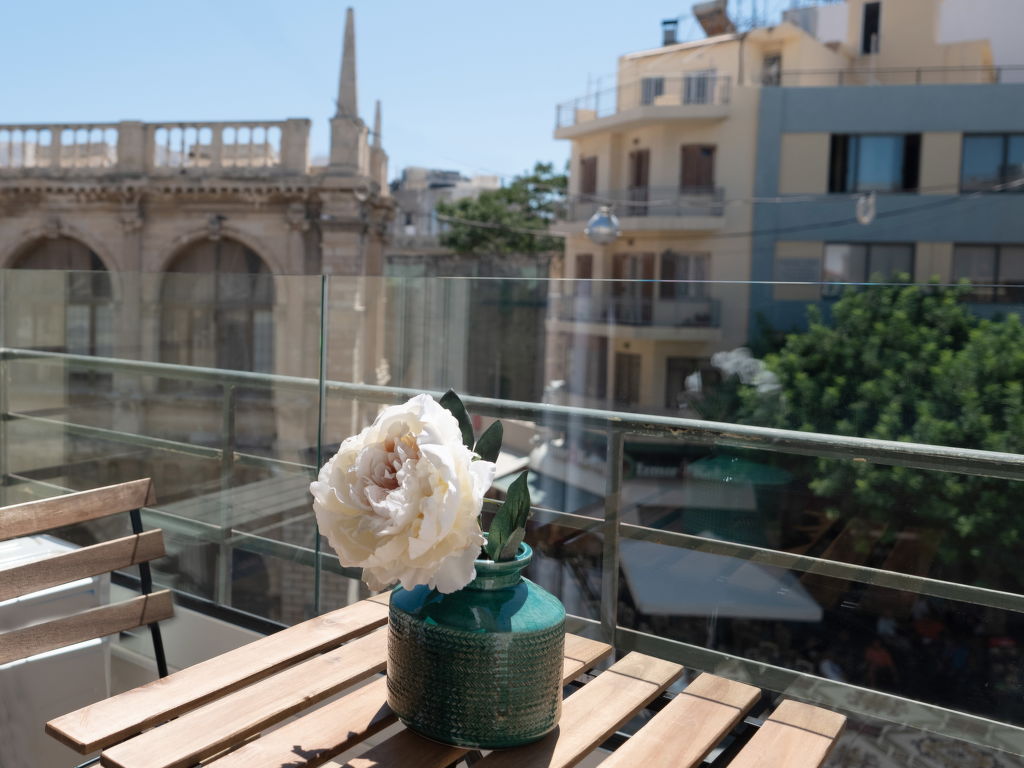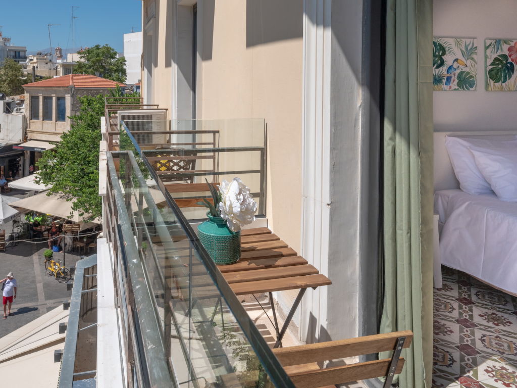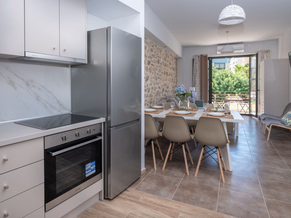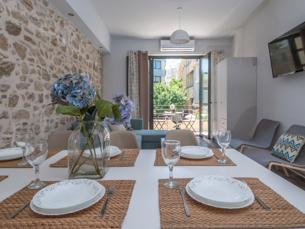 "Heraklion's Heart", 3-Zimmer-Maisonette-Wohnung 70 m2 auf 2 Stockwerken. Geräumig, vollständig renoviert im Jahre 2019, sehr schön und stilvoll eingerichtet: Wohn-/Schlafzimmer mit 1 Doppeldiwanbett und Sat-TV (Flachbildschirm). Ausgang zum Balkon. Offene Küche (4 Kochplatten, Backofen, Mikrowelle, elektrische Kaffeemaschine) mit Esstisch. Dusche/WC. Klimaanlage. Obergeschoss: 1 Doppelzimmer mit 1 Doppelbett und Sat-TV (Flachbildschirm). Ausgang zum Balkon. 1 Doppelzimmer mit 1 Doppelbett und Sat-TV (Flachbildschirm). Dusche/WC. Klimaanlage. 2 kleine Balkone. Balkonmöbel. Sicht auf die Stadt. Zur Verfügung: Waschmaschine, Bügeleisen, Haartrockner. Internet (Wireless LAN, gratis).