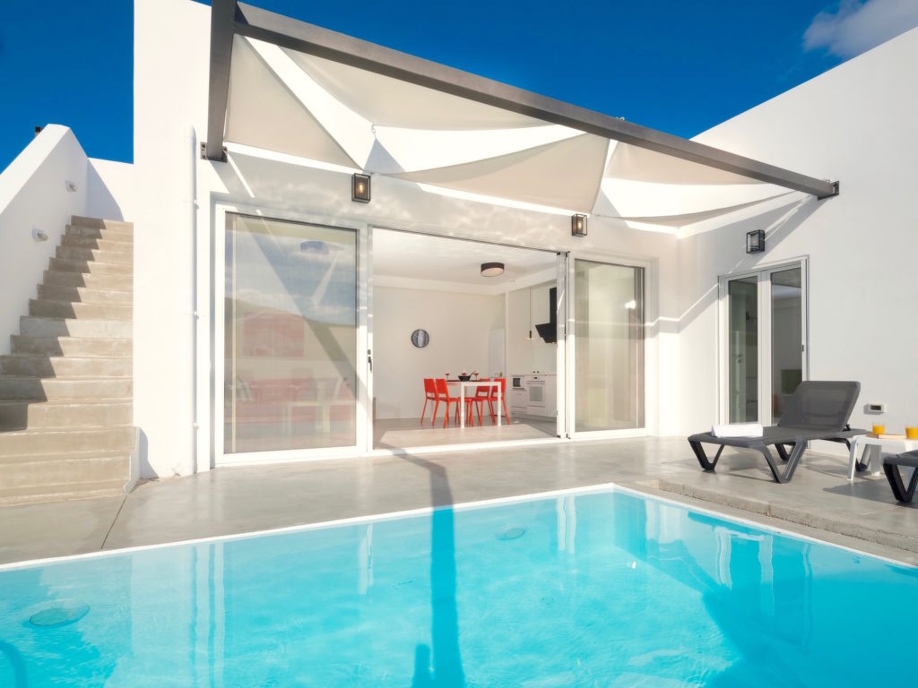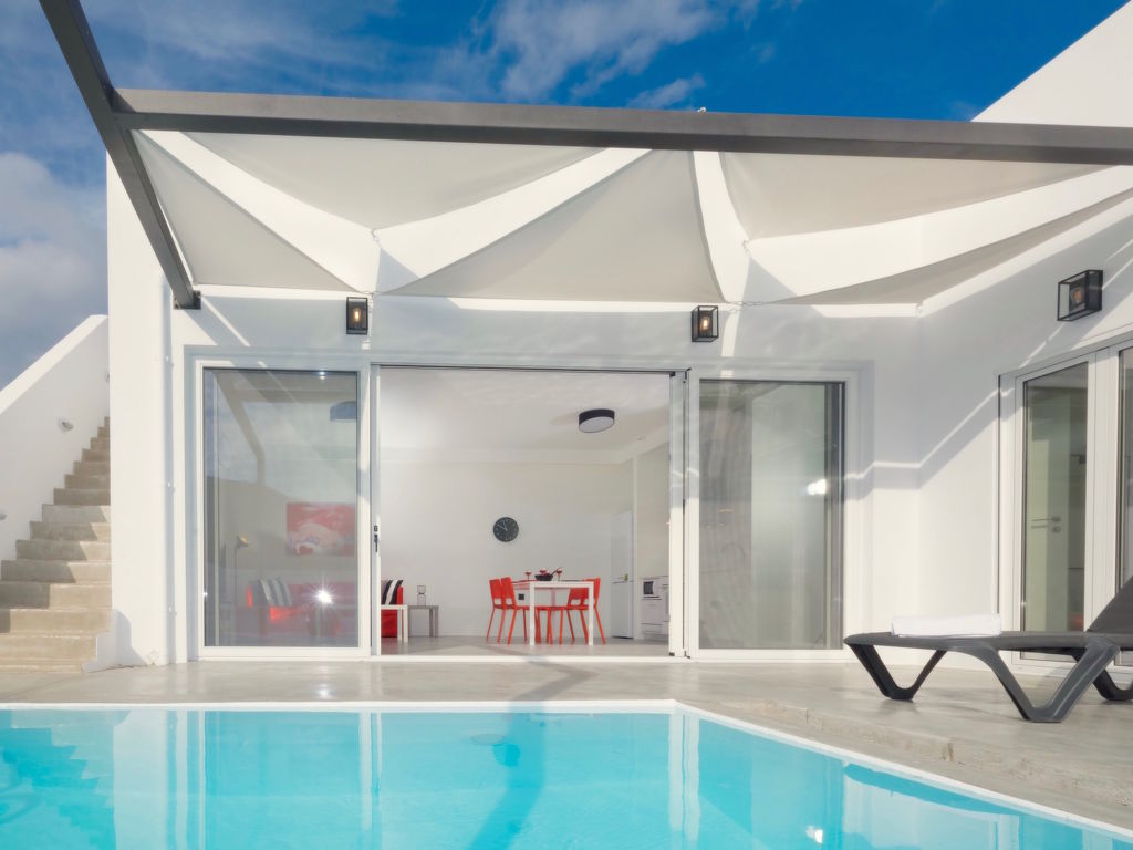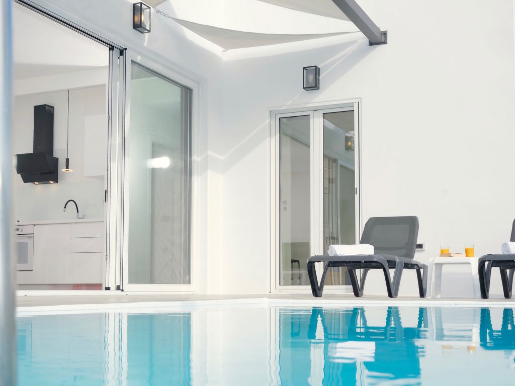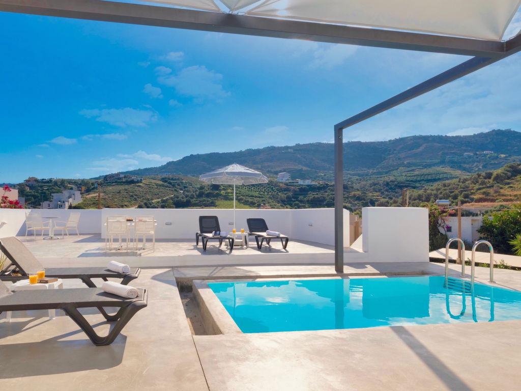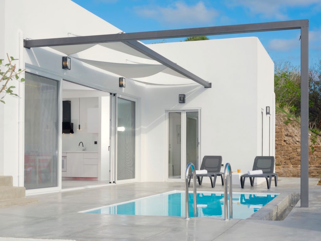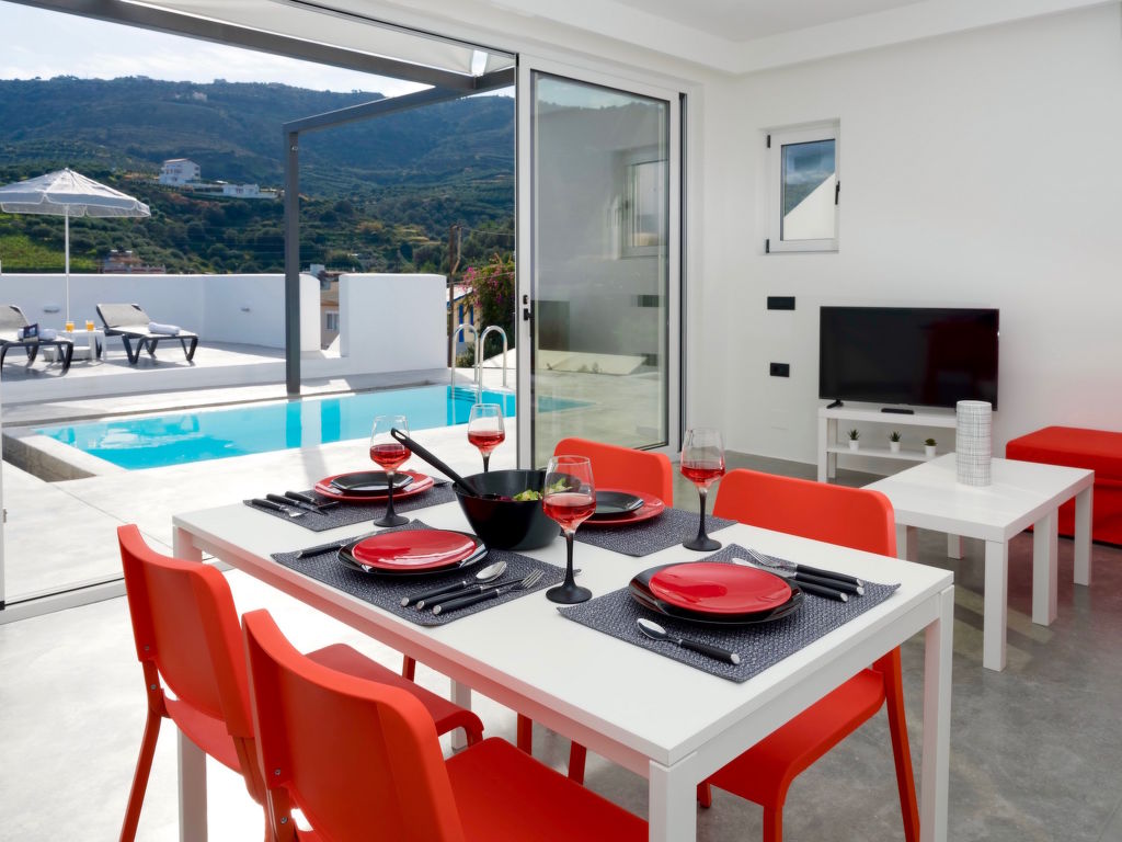 Sehr moderne, einfache Villa "Paradiso III", einseitig angebaut, Baujahr 2019. Im Ort, 400 m vom Zentrum von Agia Pelagia, ruhige, sonnige Lage, 500 m vom Strand. Zur Alleinbenutzung: kleiner, schöner Garten mit Blumen und Bäumen, Schwimmbad (20 m2, 150 cm tief, 01.04.-31.10.). Aussendusche, Terrasse, Grill. Wäschewechsel 2 mal wöchentlich. Handtuchwechsel 2 mal wöchentlich. Wohnungsreinigung 2 mal wöchentlich. Öffentliche Parkplätze 10 m auf der Strasse. Supermarkt 400 m, Restaurant, Bar 500 m, Sandstrand "Agia Pelagia beach" 500 m. Golfplatz (18 Loch) 48 km. Nahe gelegene Sehenswürdigkeiten: El Greco Museum 10 km, Heraklion Archaeological Museum 23 km, Koules Fortress 25 km. Bitte beachten: Fahrzeug empfohlen. Babyausstattung auf Anfrage (inkl.). Jugendgruppen nur auf Anfrage. In diesem Haus sind weitere Ferienwohnungen mietbar. Ferienwohnung Ref. GR6006.9.1 befindet sich auf dem gleichen Grundstück. In dieser Anlage zusätzlich mietbar: 3 Häuser.