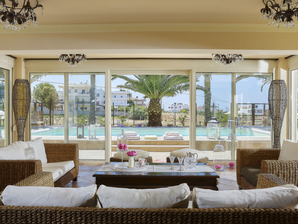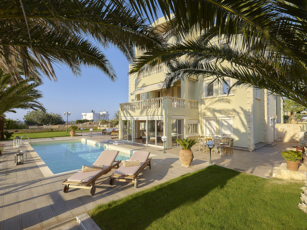 Schöne, alleinstehende, luxuriöse Villa "Zoe", auf 4 Stockwerken, Baujahr 2003, renoviert im Jahre 2016. Im Ortsteil Gournes, ruhige, sonnige Lage, 800 m vom Meer, 800 m vom Strand. Zur Alleinbenutzung: grosser, gepflegter Garten 800 m2 mit Blumen und Bäumen, Liegewiese, Schwimmbad eckig (40 m2, 150 cm tief, 01.04.-30.11.). Aussendusche, Grill. Wäschewechsel 2 mal wöchentlich. Handtuchwechsel 2 mal wöchentlich. Wohnungsreinigung 2 mal wöchentlich. Parkplatz (für 4 Autos) beim Haus. Lebensmittelgeschäft, Supermarkt, Restaurant, Bar, Bäckerei, Café 800 m, Sandstrand "Kokkini" 800 m. Jacht-Hafen 15.2 km, Golfplatz (18 Loch) 13.6 km, Surfschule 3.7 km, Reitstall 8.2 km. Nahe gelegene Sehenswürdigkeiten: CretAquarium Thalassokosmos 1.5 km, Dinosauria Park 1.2 km, Nikos Kazantzakis Museum 26.5 km, Minoan Palace of Knossos 17.1 km, Archaeological Museum of Heraklion 15 km, Water City Waterpark 4.9 km. Bitte beachten: Fahrzeug empfohlen. Geeignet für Familien, Babyausstattung auf Anfrage (inkl.). Jugendgruppen nur auf Anfrage.
