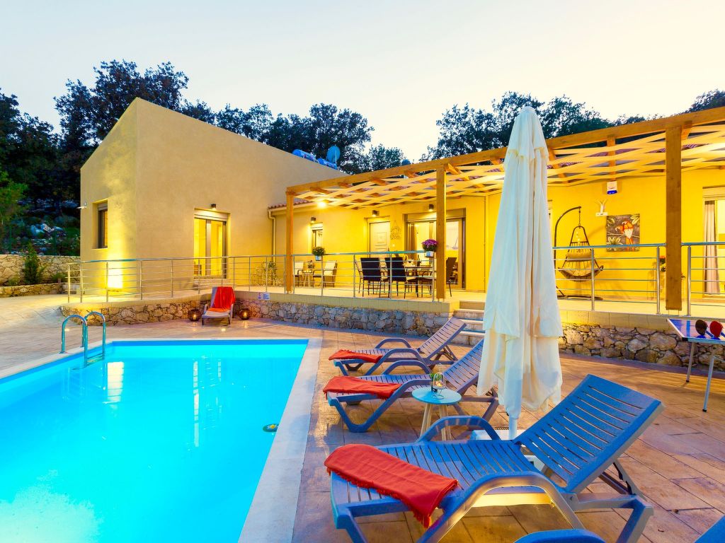 Sehr schöne, gemütliche, alleinstehende Villa "Trules", Baujahr 2018, umgeben von Bäumen. 2 km vom Zentrum von Armenoi, ruhige, sonnige Lage, 12 km vom Strand. Zur Alleinbenutzung: schöner Garten (eingezäunt) mit Blumen und Bäumen, Schwimmbad nicht einsehbar (4 x 7 m, 29 m2, 120 - 140 cm tief, 01.04.-31.10.). Tischtennis, Pergola, Gartenmöbel, Grill, Kinderspielplatz. Im Hause: Klimaanlage. Wäschewechsel 2 mal wöchentlich. Handtuchwechsel 2 mal wöchentlich. Wohnungsreinigung 2 mal wöchentlich (inkl.). Parkplatz (für 4 Autos) beim Haus. Supermarkt 2 km, Restaurant 2 km, Sandstrand "Rethymnon" 12 km. Bitte beachten: Fahrzeug empfohlen. Geeignet für Familien, Babyausstattung auf Anfrage (inkl.). Jugendgruppen nur auf Anfrage.
