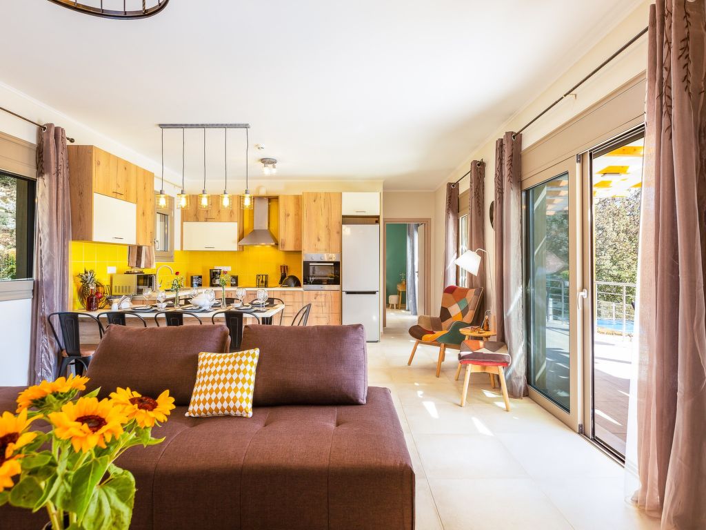 "Trules", 5-Zimmer-Villa 120 m2. Sehr schön und gemütlich eingerichtet: Salon mit 1 Diwanbett, offenem Kamin, Esstisch und Sat-TV (Flachbildschirm). Ausgang zum Garten, zum Schwimmbad. 3 Doppelzimmer, jedes Zimmer mit 1 Doppelbett (160 cm, Länge 200 cm), Dusche/WC und Sat-TV (Flachbildschirm). Ausgang zum Garten, zum Schwimmbad. 1 Doppelzimmer mit 1 Doppelbett (160 cm, Länge 200 cm), Sat-TV (Flachbildschirm). Ausgang zum Garten, zum Schwimmbad. Offene Küche (Backofen, Geschirrspüler, 4 Glaskeramikherd Platten, Mikrowelle, elektrische Kaffeemaschine, Kombinationsmikrowelle) mit Esstisch (90 cm, Länge 190 cm). Ausgang zum Garten, zum Schwimmbad. Dusche/WC. Klimaanlage. Balkonmöbel, Gartengrill, Sitzplatz. Schöne Sicht auf die Berge und den Garten. Zur Verfügung: Waschmaschine, Wäschetrockner, Safe, Bügeleisen, Haartrockner. Internet (Wireless LAN, gratis). Geeignet für Familien. 1084155