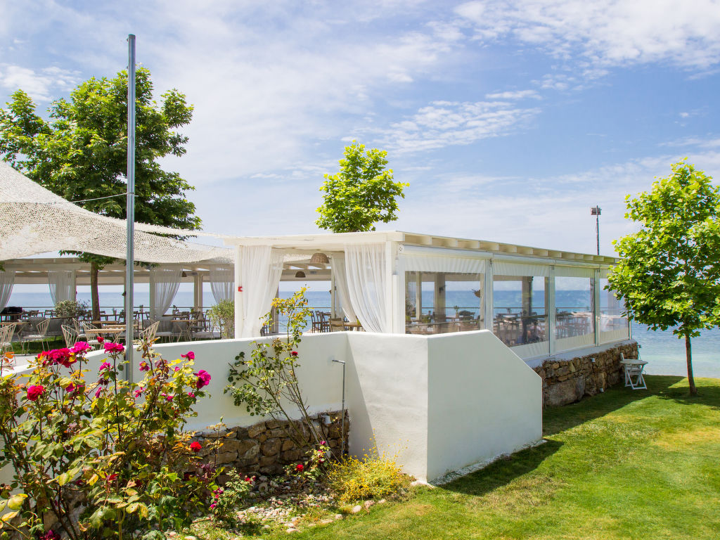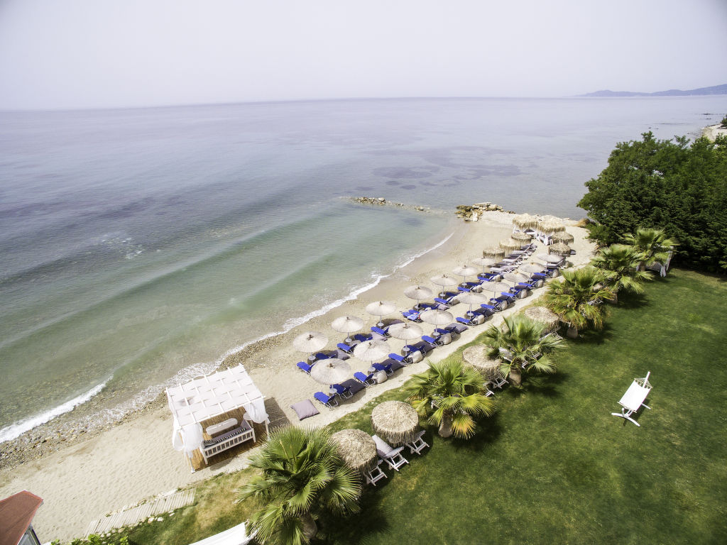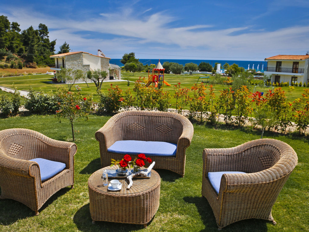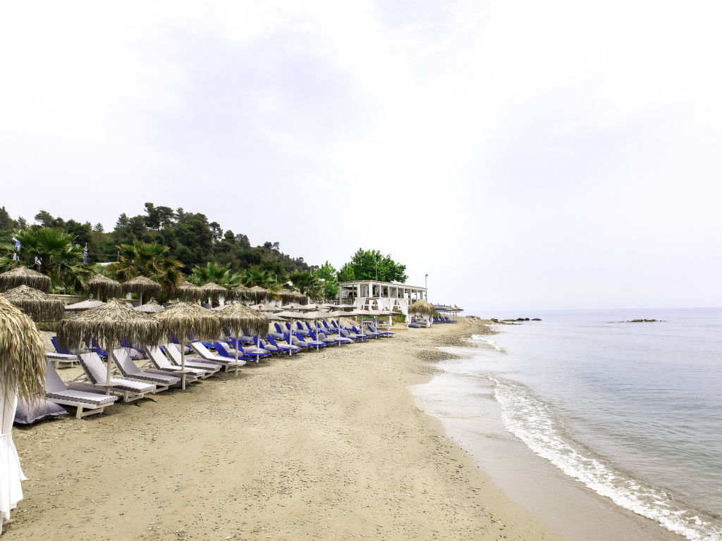 Grosse, schöne Ferienanlage "Nefeli Villas and Suites", renoviert im Jahre 2010. 26 Häuser im Ferienresort. Im Ortsteil Nea Skioni, alleinstehende, ruhige Lage, 100 m vom Meer, 100 m vom Strand, Strasse zu überqueren, Richtung Westen. Zur Mitbenutzung: Garten (eingezäunt), Schwimmbad eckig (5 x 16 m, 200 cm tief 01.04.-31.10.). Privatstrand, Terrasse, Kinderspielplatz (Rutschbahn, Schaukel). In der Anlage: Empfang, Restaurant, Bar, Wireless LAN, Einkaufsmöglichkeit. Wäschewechsel 2 mal wöchentlich. Handtuchwechsel 2 mal wöchentlich. Wohnungsreinigung täglich. Parkplatz. Einkaufsgeschäft 2 km, Lebensmittelgeschäft 2 km, Supermarkt 2 km, Einkaufszentrum 2 km, Restaurant 5 km, Bar 5 km, Bäckerei 2 km, Café 5 km, Sandstrand 100 m, Thermalbad 4 km. Nahe gelegene Sehenswürdigkeiten: Possidi Lighthouse 17 km, Afytos 31 km, Paliouri Wildlife Reservation 11 km, Pallini Lagoon Beach 20 km. Bitte beachten: Fahrzeug empfohlen. Animation in der Saison. Geeignet für Familien. Geeignet für Events. Ab Hof Verkauf von bäuerlichen Produkten. Das Foto ist nur ein Hausbeispiel. In diesem Haus sind weitere Ferienwohnungen mietbar.