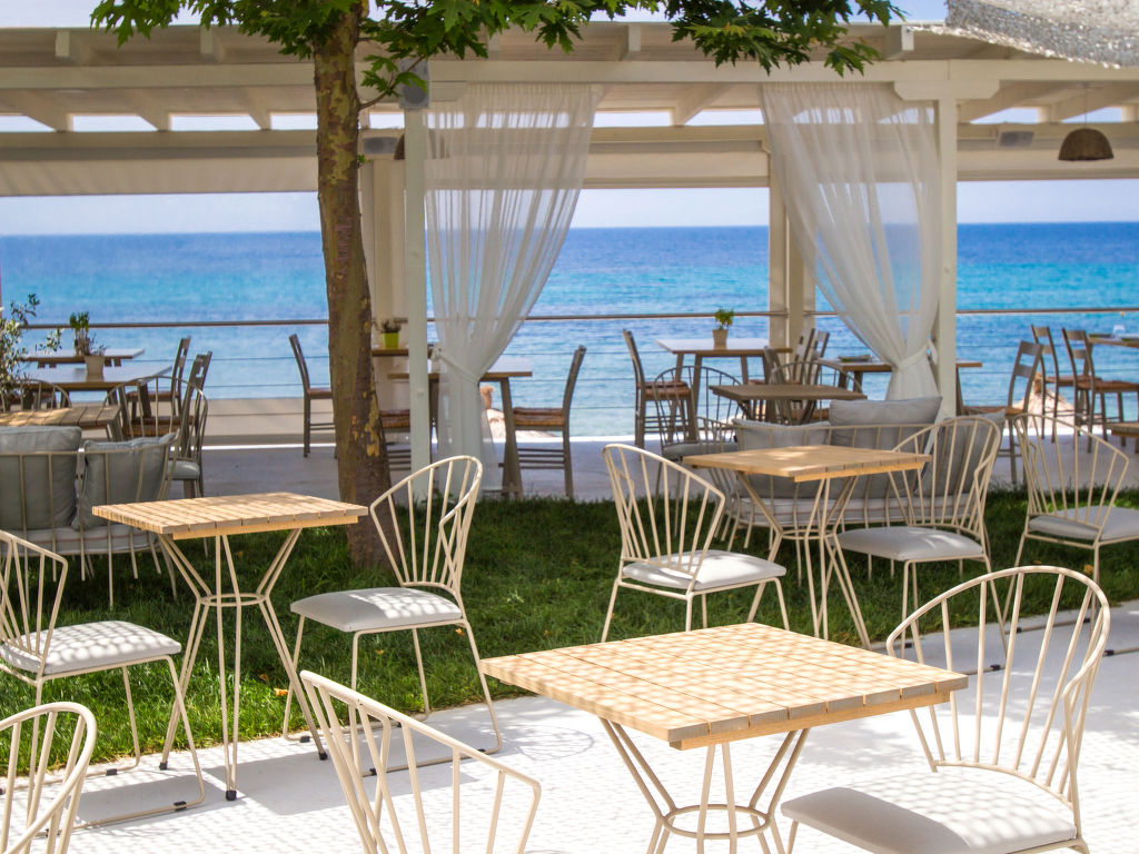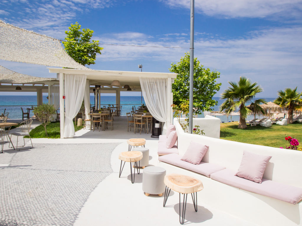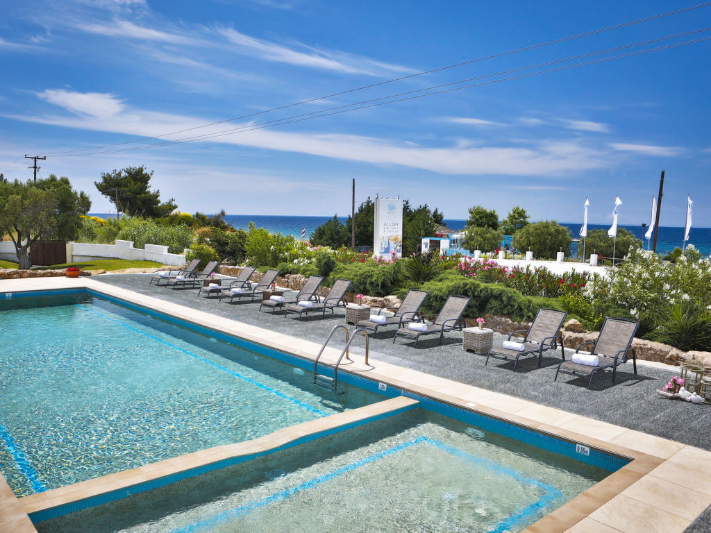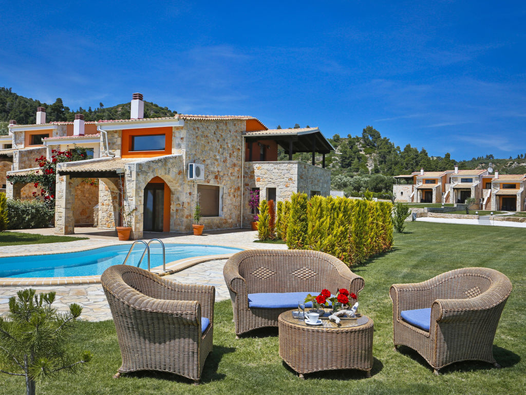 Grosse, schöne Ferienanlage "Nefeli Villas and Suites", renoviert im Jahre 2010. 26 Häuser im Ferienresort. Im Ortsteil Nea Skioni, alleinstehende, ruhige Lage, 100 m vom Meer, 100 m vom Strand, Strasse zu überqueren, Richtung Westen. Zur Mitbenutzung: Garten (eingezäunt), Schwimmbad eckig (5 x 16 m, 200 cm tief 01.04.-31.10.). Privatstrand, Terrasse, Kinderspielplatz (Rutschbahn, Schaukel). In der Anlage: Empfang, Restaurant, Bar, Wireless LAN, Einkaufsmöglichkeit. Wäschewechsel 2 mal wöchentlich. Handtuchwechsel 2 mal wöchentlich. Wohnungsreinigung täglich. Parkplatz. Einkaufsgeschäft 2 km, Lebensmittelgeschäft 2 km, Supermarkt 2 km, Einkaufszentrum 2 km, Restaurant 5 km, Bar 5 km, Bäckerei 2 km, Café 5 km, Sandstrand 100 m, Thermalbad 4 km. Nahe gelegene Sehenswürdigkeiten: Possidi Lighthouse 17 km, Afytos 31 km, Paliouri Wildlife Reservation 11 km, Pallini Lagoon Beach 20 km. Bitte beachten: Fahrzeug empfohlen. Animation in der Saison. Geeignet für Familien. Geeignet für Events. Ab Hof Verkauf von bäuerlichen Produkten. Das Foto ist nur ein Hausbeispiel. In diesem Haus sind weitere Ferienwohnungen mietbar.