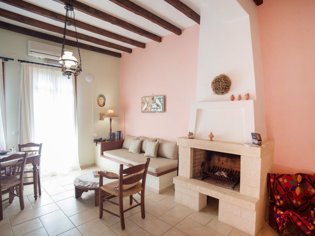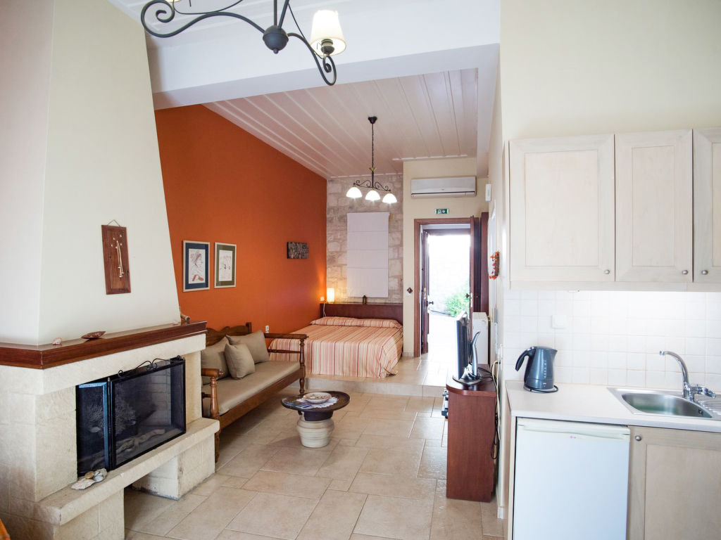 "Katalagari Country Comfort Suite", 1-Zimmer-Studio 45 m2. Objekt geeignet für 2 Erwachsene. Zweckmässig und komfortabel eingerichtet: offenes Wohn-/Schlafzimmer mit 1 Doppelbett, offenem Kamin und Sat-TV (Flachbildschirm). Kleine, offene Küche (4 Kochplatten, Backofen, Wasserkocher, elektrische Kaffeemaschine) mit kleinem Esstisch. Bad/WC oder Dusche/WC. Klimaanlage. Balkon. Zur Verfügung: Safe, Bügeleisen, Haartrockner. Internet (Wireless LAN, gratis). Bitte beachten: Nichtraucher-Haus. 1039 K033 A001 1801