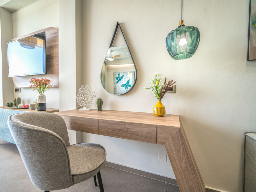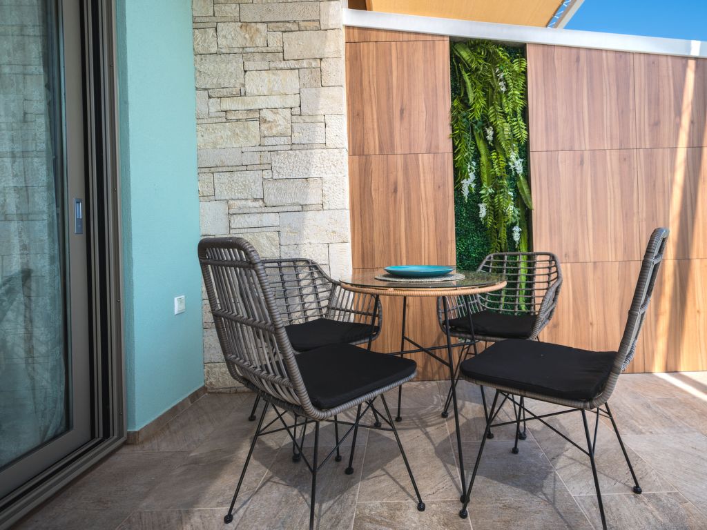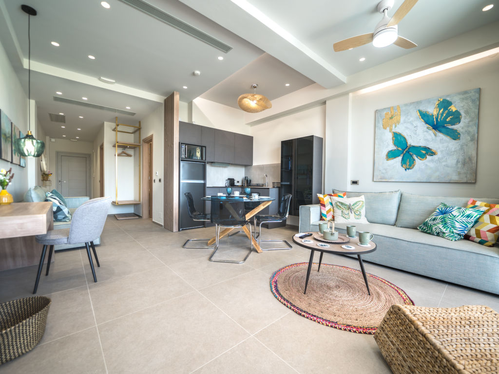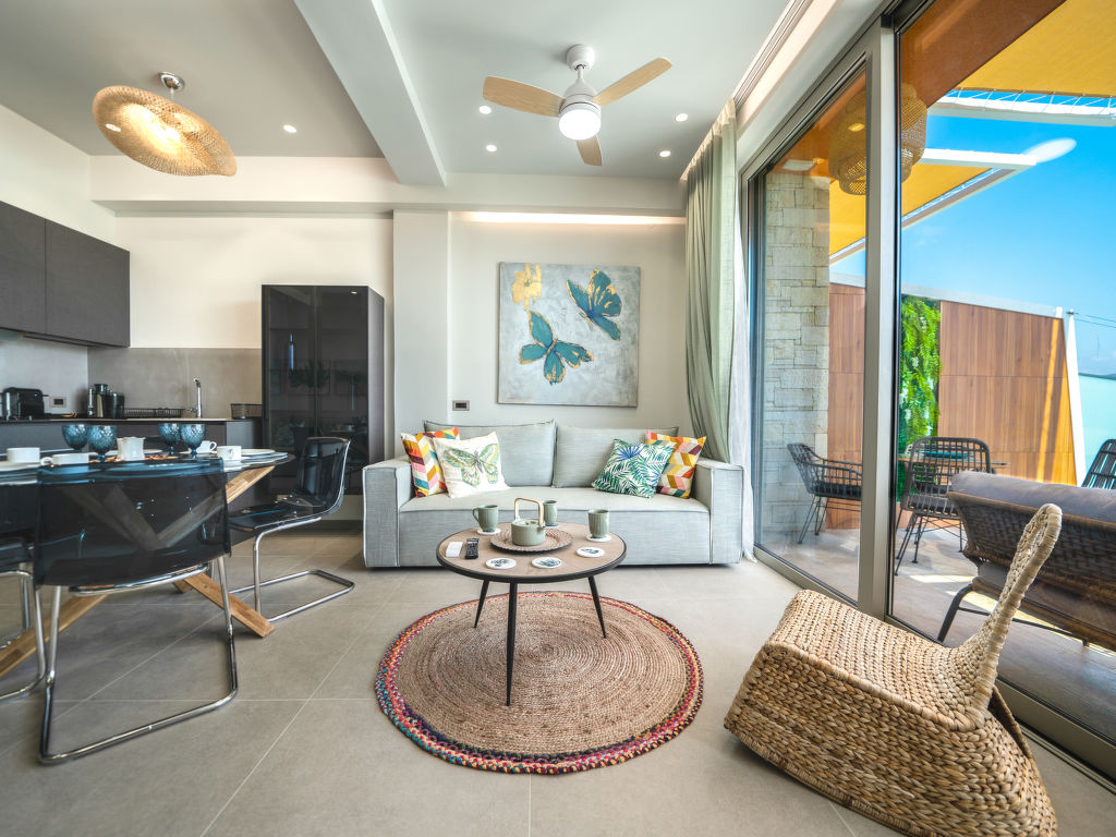 "Oleas Luxury Suite Venus", 2-Zimmer-Bungalow 60 m2. Geräumig und hell, sehr modern eingerichtet: offenes Wohn-/Schlafzimmer mit Schiebetür mit 2 Diwanbetten und Sat-TV (Flachbildschirm). Ausgang zur Terrasse, zum Schwimmbad. 1 Doppelzimmer mit 1 Doppelbett und Sat-TV (Flachbildschirm), Klimaanlage. Offene Küche (2 Glaskeramikherd Platten, Wasserkocher, Mikrowelle, elektrische Kaffeemaschine). Dusche/WC. Terrassenmöbel, Gartengrill (mobil). Schöne Sicht auf das Schwimmbad und die Landschaft. Zur Verfügung: Haartrockner. Internet (Wireless LAN, gratis). Bitte beachten: Nichtraucher-Haus. Rauchmelder, Feuerlöscher. 1218167
