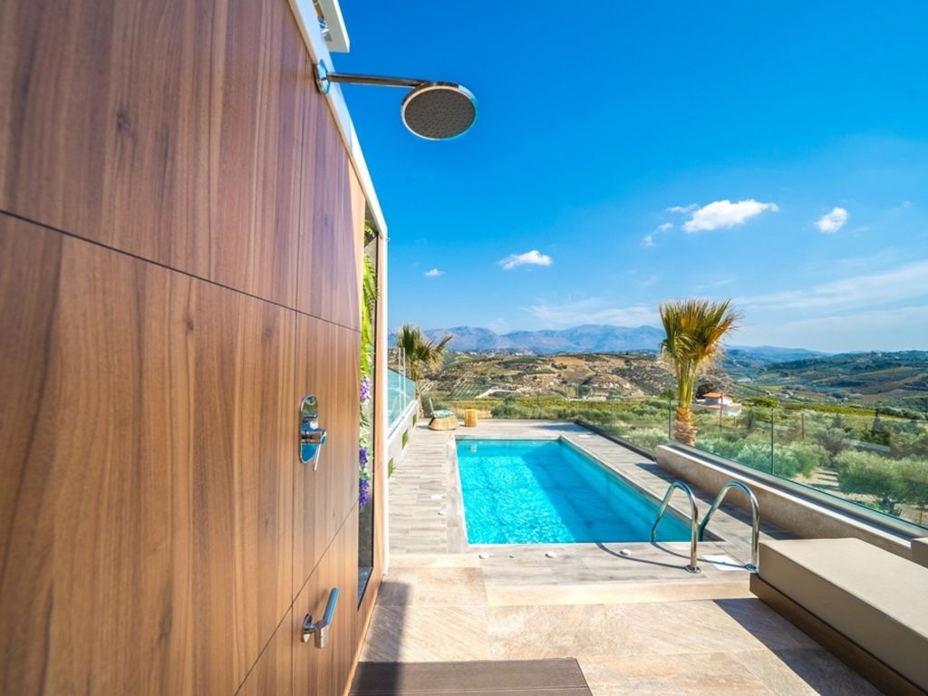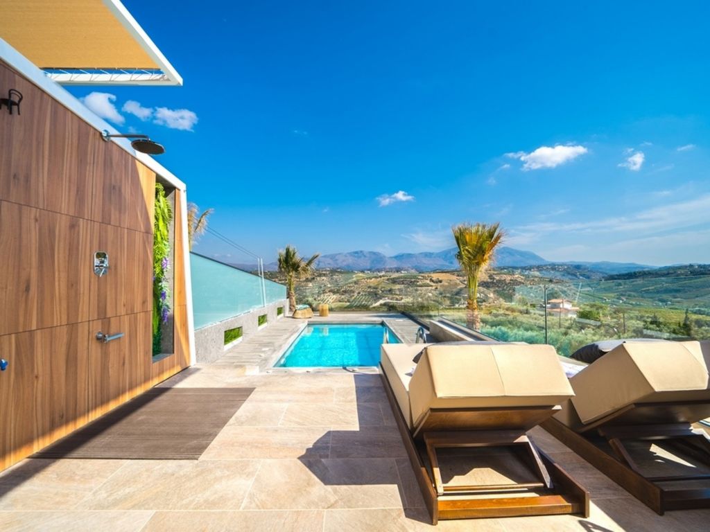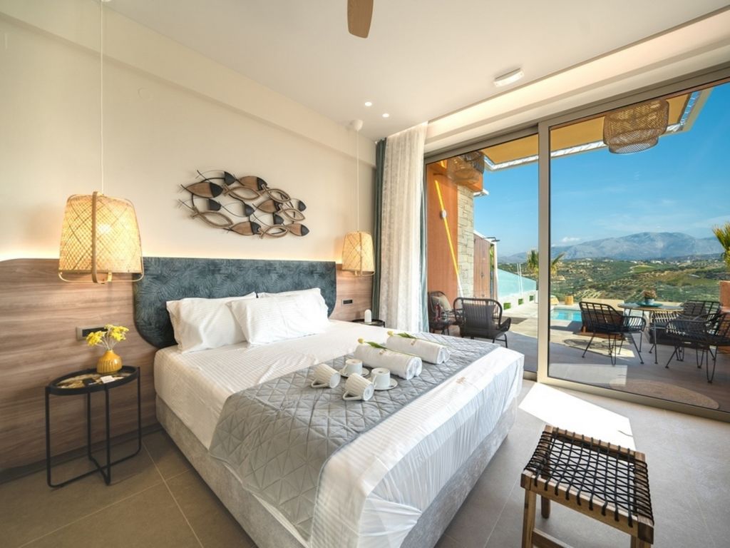 Voutes 9 km von Heraklion: Sehr moderner Bungalow "Oleas Luxury Suite Moon", Baujahr 2021, umgeben von Bäumen. Am Ortsrand, 9 km vom Zentrum von Heraklion, ruhige, sonnige Lage, verkehrsberuhigte Zone, 8 km vom Meer, 8 km vom Strand. Zur Alleinbenutzung: Grundstück (eingezäunt), Schwimmbad (3 x 5 m, 145 - 150 cm tief, 01.04.-31.10.). Aussendusche. Wäschewechsel 2 mal wöchentlich. Handtuchwechsel 2 mal wöchentlich. Wohnungsreinigung 2 mal wöchentlich (inkl.). Parkplatz (für 2 Autos) beim Haus. Lebensmittelgeschäft 2 km, Supermarkt 9 km, Einkaufszentrum 9 km, Restaurant 2 km, Bar 6 km, Bäckerei 2 km, Café 5 km, Sandstrand "Ammoudara" 8 km. Golfplatz (18 Loch) 45 km, Tennis 9 km. Nahe gelegene Sehenswürdigkeiten: Watersports 8 km, Archaeological Museum Heraklion 9 km, Knossos Palace 12 km, Historical Center Heraklion 9 km. Bitte beachten: Fahrzeug empfohlen. Nicht geeignet für Kinder unter 12 Jahren. Objekt geeignet für 3 Erwachsene Jugendgruppen nur auf Anfrage. In diesem Haus sind weitere Ferienwohnungen mietbar.