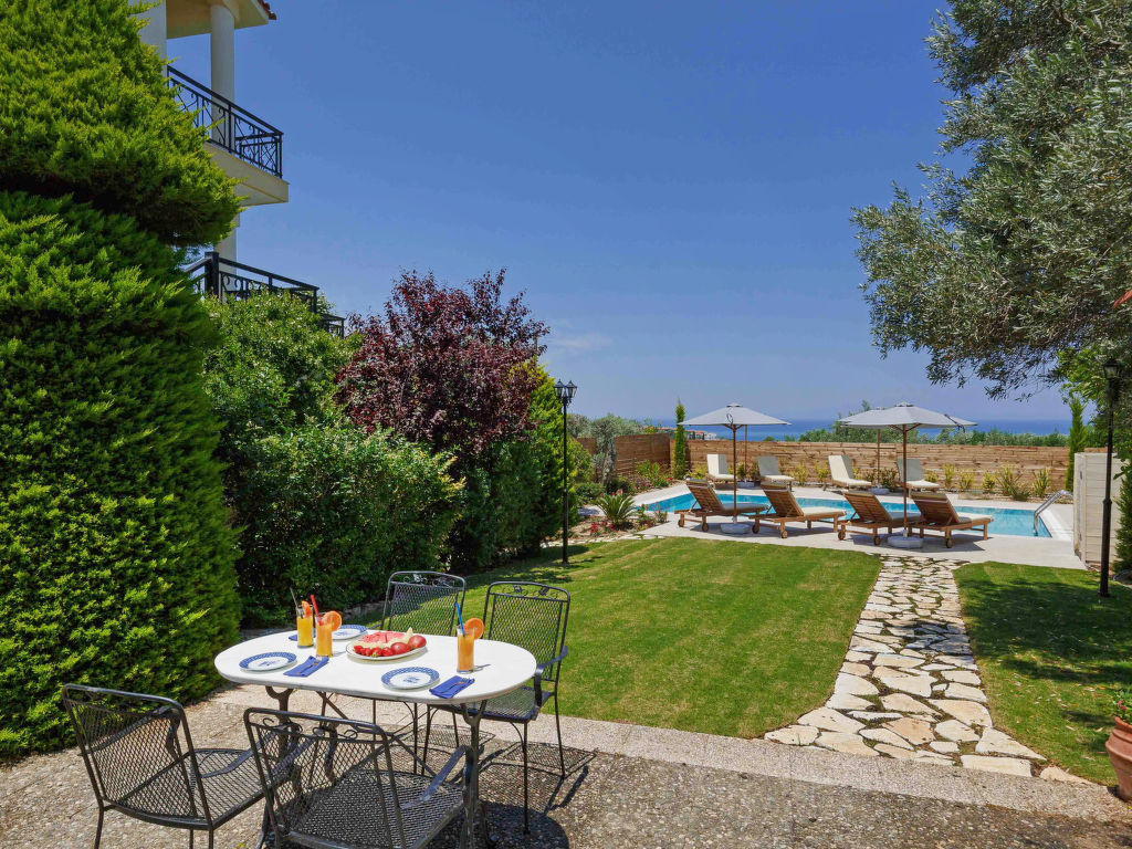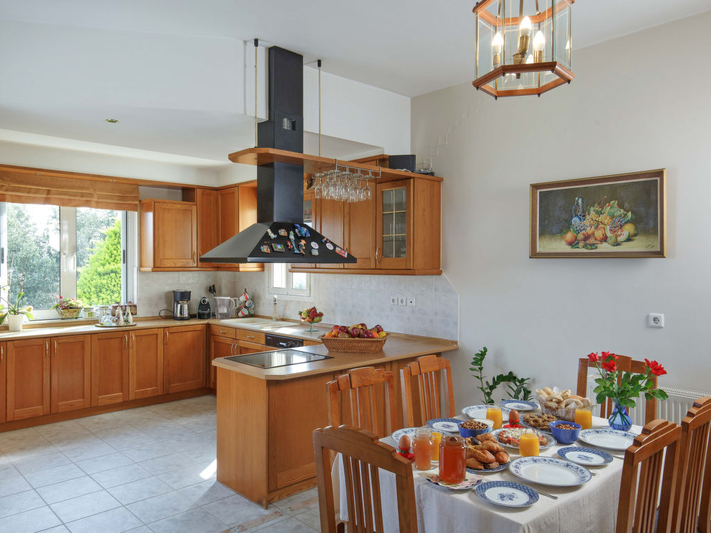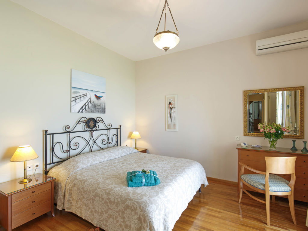 "Ksirochori", 7-Zimmer-Villa 320 m2 auf 2 Stockwerken. Geräumig und hell, komfortabel und schön eingerichtet: offenes Wohn-/Esszimmer mit offenem Kamin, Esstisch und Sat-TV (Flachbildschirm). Ausgang zur Terrasse, zum Schwimmbad. 1 Zimmer mit 1 Doppelbett und Dusche/WC. Ausgang zum Balkon. Offene Küche (Backofen, Geschirrspüler, 5 Glaskeramikherd Platten, Mikrowelle, elektrische Kaffeemaschine, Kapseln für die Kaffeemaschine (Nespresso) extra). Klimaanlage. Obergeschoss: (geländerlose Treppe) 3 Zimmer, jedes Zimmer mit 1 Doppelbett. Ausgang zum Balkon. 1 Zimmer mit 2 Betten. Ausgang zum Balkon. Offenes Wohn-/Schlafzimmer mit 2 Diwanbetten, offenem Kamin und Sat-TV (Flachbildschirm). Klimaanlage. 5 Balkone Terrasse. Gartengrill. Schöne Sicht auf das Meer und die Landschaft. Zur Verfügung: Waschmaschine, Wäschetrockner, Safe, Bügeleisen, Haartrockner. Internet (Wireless LAN, gratis). Bitte beachten: Nichtraucher-Haus. 104K10003269101
