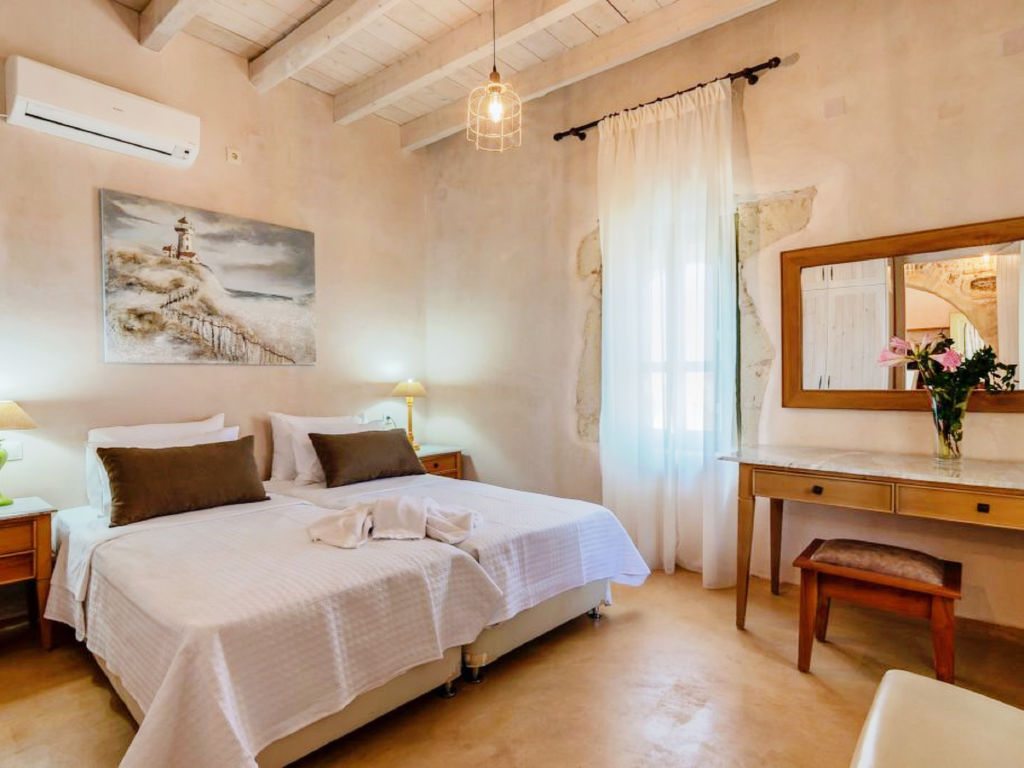 Schöne, alleinstehende, komfortable Villa "Kastellos Old House", auf 2 Stockwerken, Baujahr 1905, renoviert im Jahre 2006. Im Ortsteil Kastellos Village, ruhige, sonnige Lage, 5.8 km vom Meer, 5.8 km vom Strand. Zur Alleinbenutzung: grosser Garten mit 100 m2, Blumen und Bäumen, Liegewiese, Schwimmbad eckig (20 m2, 120 cm tief, 01.01.-31.12.). Aussendusche. Wäschewechsel 2 mal wöchentlich. Handtuchwechsel 2 mal wöchentlich. Wohnungsreinigung 2 mal wöchentlich. Parkplatz beim Haus. Einkaufsgeschäft 6 km, Lebensmittelgeschäft 6 km, Supermarkt 6 km, Restaurant 6 km, Bar 6 km, Bäckerei 6 km, Café 6 km, Sandstrand "Kournas" 5.8 km. Reitstall 7 km. Nahe gelegene Sehenswürdigkeiten: Ancient Lappa 10 km, Argiroupoli Springs 7.6 km, Georgioupoli 9.7 km. Bekannte Seen in der Umgebung sind gut erreichbar: Lake Kournas 7.5 km. Bitte beachten: Fahrzeug empfohlen. Geeignet für Familien, Babyausstattung auf Anfrage (inkl.). Jugendgruppen nur auf Anfrage.