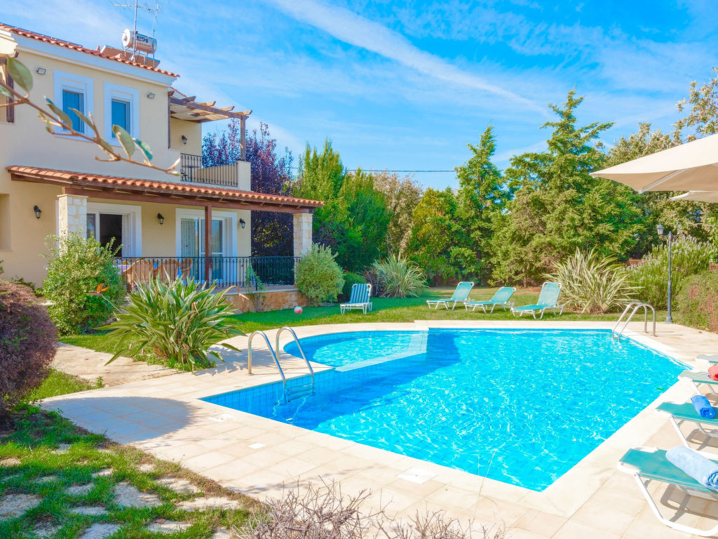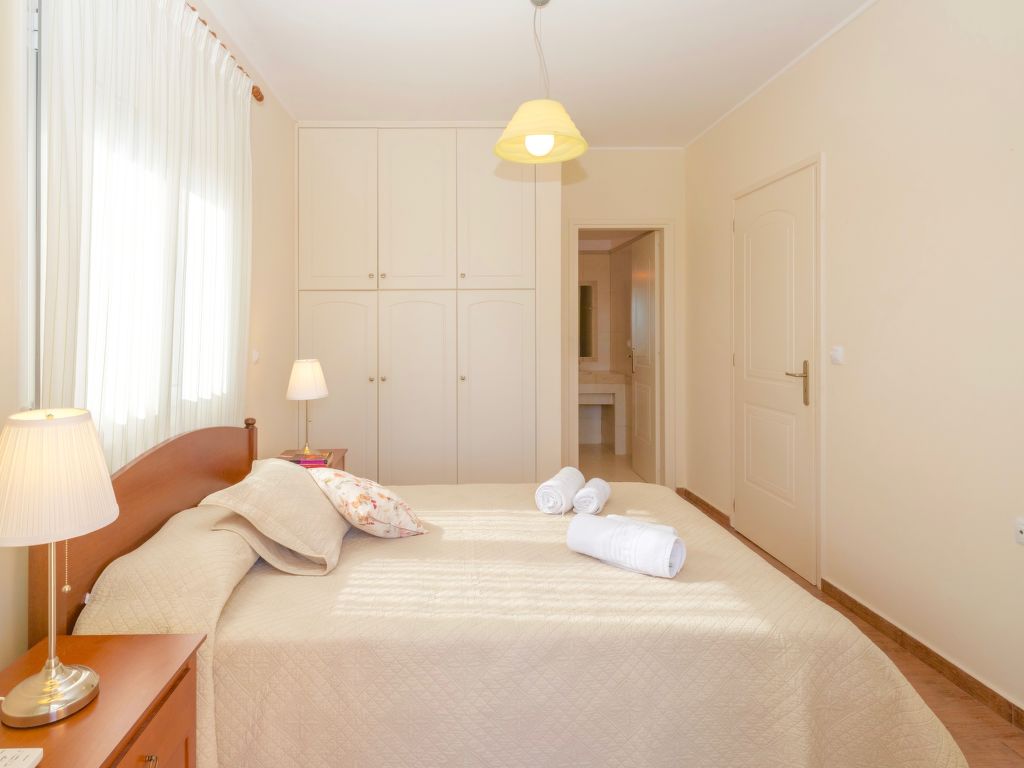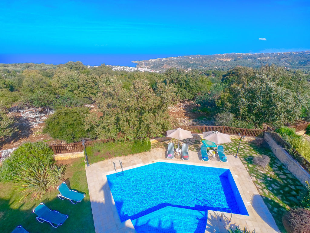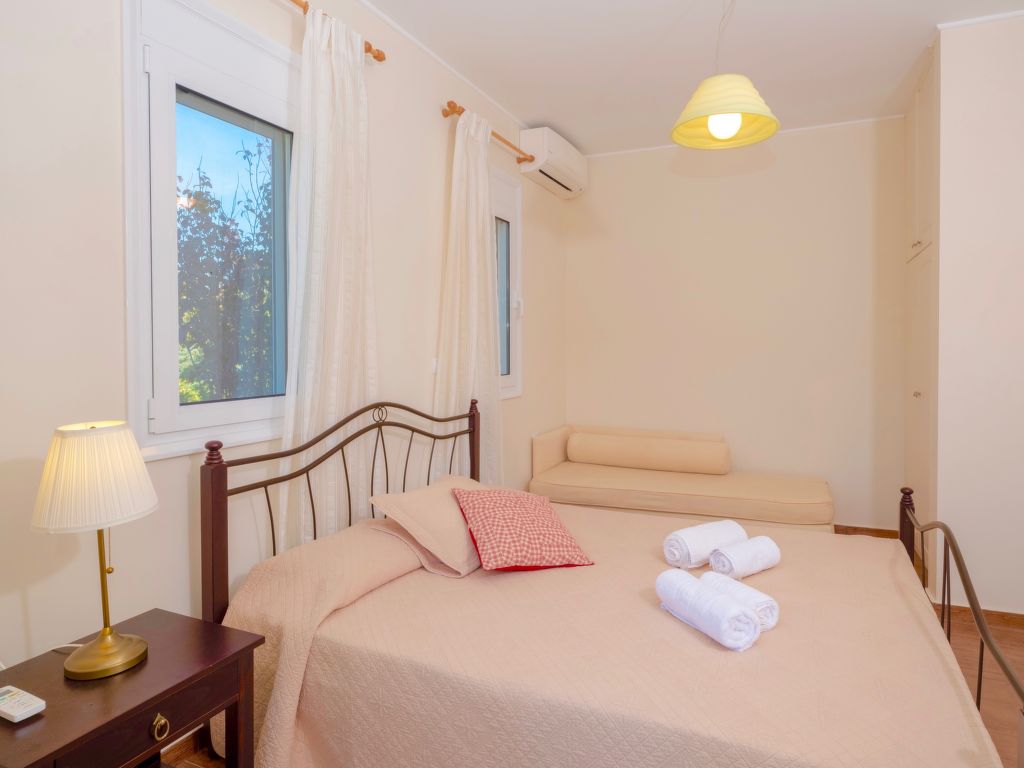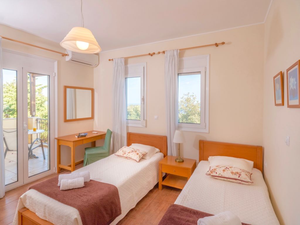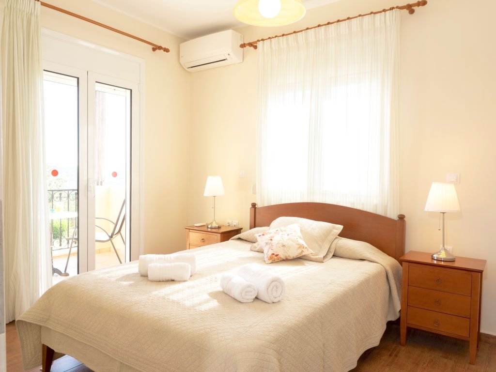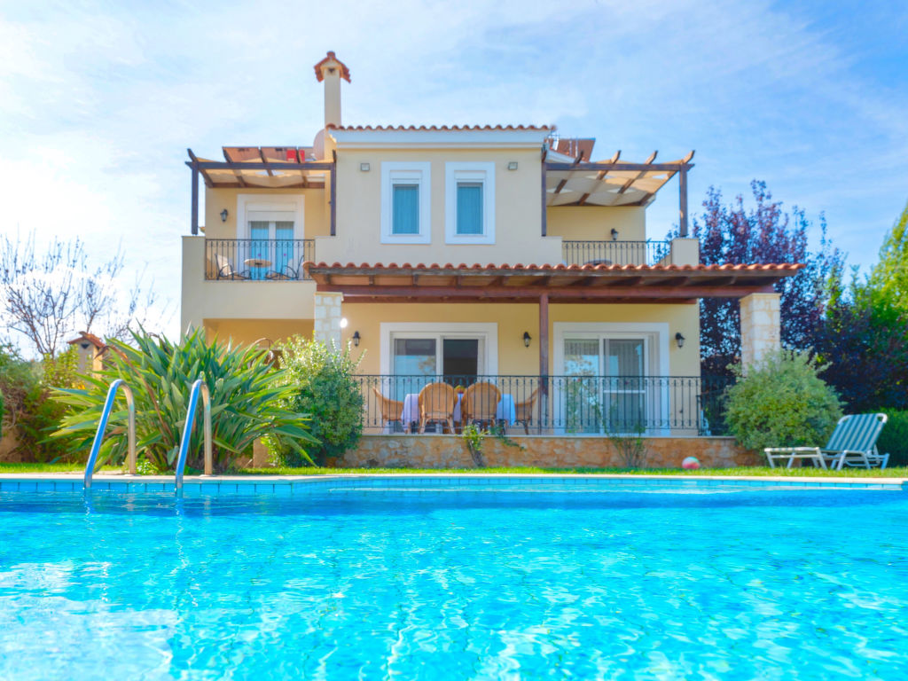 "Dafni", 5-Zimmer-Villa 156 m2 auf 2 Stockwerken. Zweckmässig und stilvoll eingerichtet: Wohn-/Esszimmer mit offenem Kamin, Esstisch und Sat-TV (Flachbildschirm), CD und DVD. Ausgang zum Schwimmbad. 1 Doppelzimmer mit 1 Doppelbett. Ausgang zum Garten. Offene Küche (4 Kochplatten, Backofen, Geschirrspüler, Mikrowelle, elektrische Kaffeemaschine). Dusche/WC. Klimaanlage. Obergeschoss: 1 Doppelzimmer mit 1 Doppelbett, Bad und Klimaanlage. Ausgang zum Balkon. 1 Doppelzimmer mit 2 Betten und Klimaanlage. 1 Doppelzimmer mit 1 Doppelbett und Klimaanlage. Ausgang zum Balkon. Bad/Dusche. Gartengrill. Herrliche Panoramasicht auf das Meer, die Berge und die Landschaft. Zur Verfügung: Waschmaschine, Bügeleisen, Haartrockner. Internet (Wireless LAN, gratis). 1041K91002928501