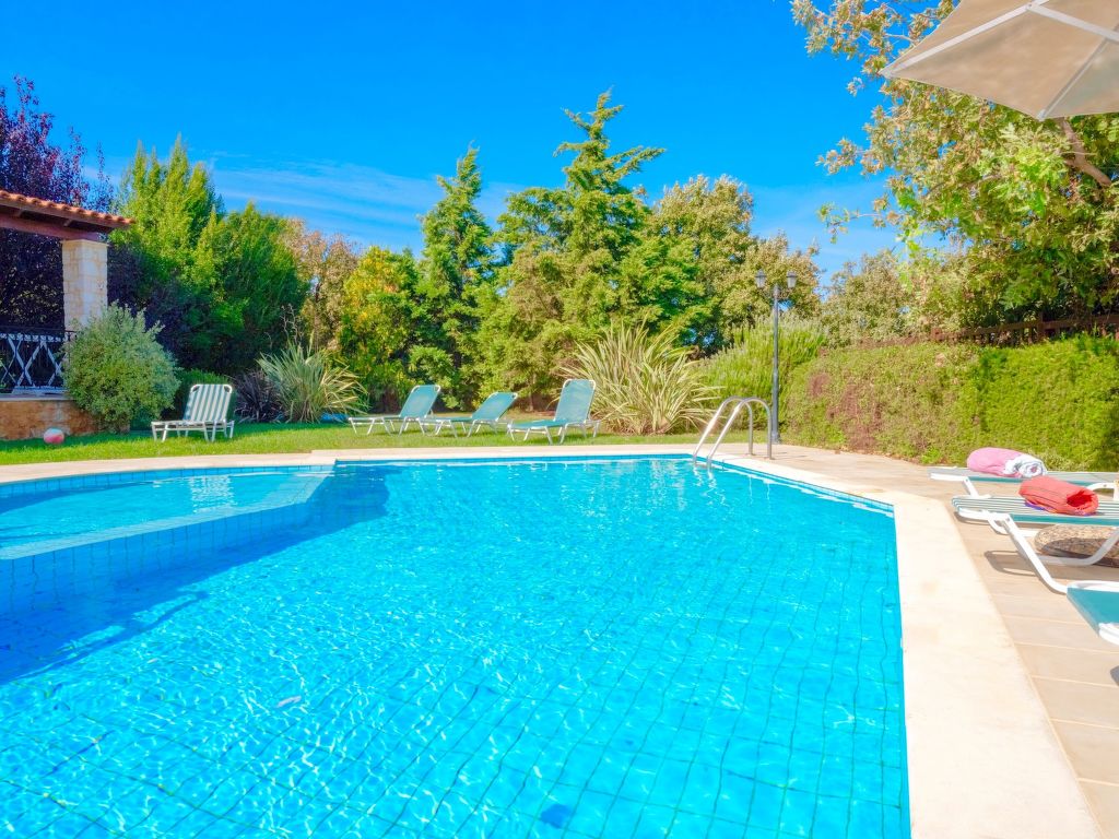 Sehr schöne, alleinstehende, komfortable Villa "Dafni", auf 2 Stockwerken, renoviert im Jahre 2018, umgeben von Bäumen. Oberhalb von Rethymnon, am Ortsrand, 1.5 km vom Zentrum von Gerani, 2 km vom Meer, 3 km vom Strand. Zur Alleinbenutzung: grosser, schöner Garten (eingezäunt) mit Blumen und Bäumen, Schwimmbad nicht einsehbar (36 m2, 100 - 160 cm tief, 01.05.-31.10.). Kinderbecken, Aussendusche, Gartenmöbel, Grill. Im Hause: Klimaanlage. Wäschewechsel 2 mal wöchentlich. Handtuchwechsel 2 mal wöchentlich. Wohnungsreinigung 2 mal wöchentlich (inkl.). Abholservice vom Flughafen (extra). Schmale Zufahrt bis 25 m zum Haus. Parkplatz (für 2 Autos) beim Haus. Einkaufsgeschäft 1 km, Supermarkt 1 km, Einkaufszentrum 7 km, Restaurant 1 km, Bar 7 km, Bäckerei 1 km, Café 1 km, Sandstrand "Gerani" 3 km. Sporthafen 5 km, Jacht-Hafen 5 km. Nahe gelegene Sehenswürdigkeiten: Rethymnon Old town 12 km, Georgioupolis 15 km. Bitte beachten: Fahrzeug empfohlen. Geeignet für Familien, Babyausstattung auf Anfrage (inkl.). Jugendgruppen nur auf Anfrage.