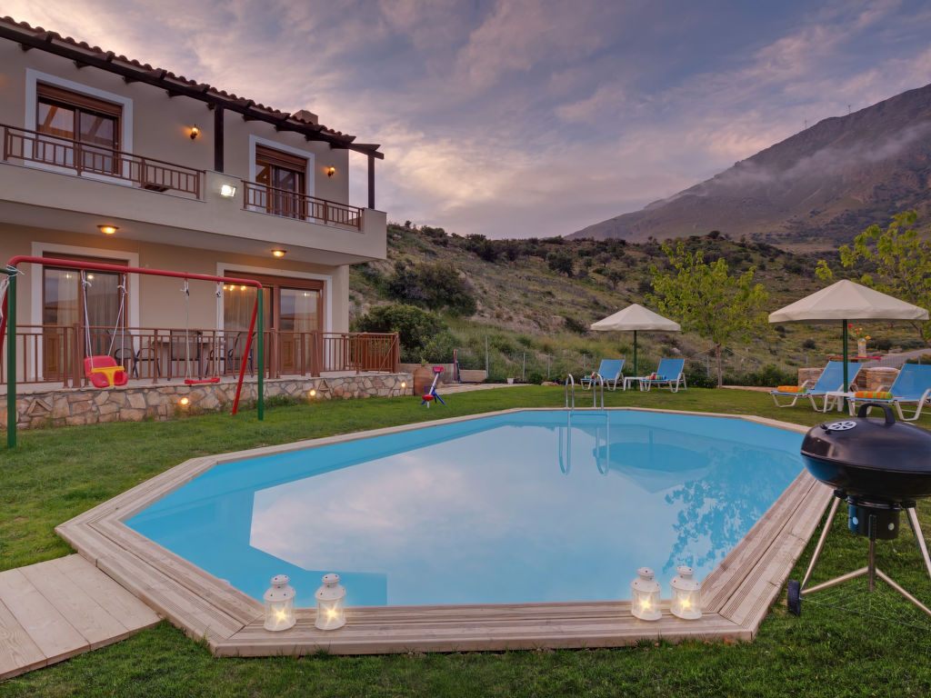 Schöne, alleinstehende, komfortable Villa "Fournou Lago Stefania", auf 2 Stockwerken, Baujahr 2010, renoviert im Jahre 2015, umgeben von Feldern. Im Ortsteil Triopetra, ruhige, sonnige Lage, 2 km vom Meer, 2 km vom Strand. Zur Alleinbenutzung: schöner, gepflegter Garten 100 m2 mit Blumen, Liegewiese, Schwimmbad eckig (15 m2, 01.03.-31.10.). Grill. Wäschewechsel 2 mal wöchentlich. Handtuchwechsel 2 mal wöchentlich. Wohnungsreinigung 2 mal wöchentlich. Parkplatz (für 2 Autos) beim Haus. Restaurant 2 km, Café 2 km, Sandstrand "Triopetra" 2 km, Kieselstrand "Mikri Triopetra" 2.7 km. Nahe gelegene Sehenswürdigkeiten: Folk Museum of Spili 19 km, Caves of Matala 52 km, Agios Pavlos Sand Hills 7.5 km, Preveli Palm Forest 22 km. Bitte beachten: Fahrzeug empfohlen. Geeignet für Familien, Babyausstattung auf Anfrage (inkl.). Jugendgruppen nur auf Anfrage.
