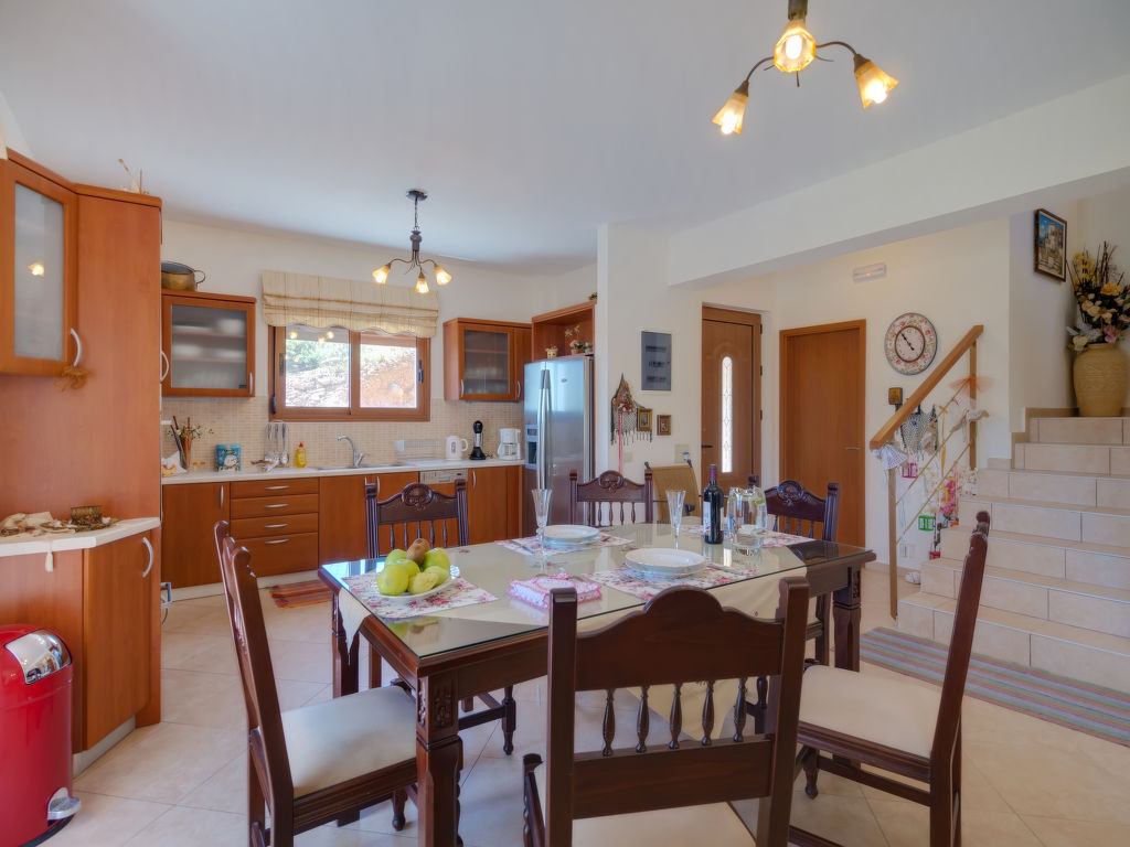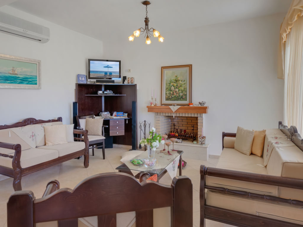"Fournou Lago Stefania", 3-Zimmer-Villa 100 m2 auf 2 Stockwerken. Geräumig und hell, komfortabel und schön eingerichtet: offenes grosses Wohn-/Esszimmer mit 1 Diwanbett, offenem Kamin, Esstisch und Sat-TV (Flachbildschirm), Radio, CD und DVD. Ausgang zum Garten, zum Schwimmbad. Offene Küche (Backofen, 4 Glaskeramikherd Platten, Mikrowelle, elektrische Kaffeemaschine, Kapseln für die Kaffeemaschine (Nespresso) extra). Dusche/WC. Klimaanlage. Obergeschoss: (geländerlose Treppe) 1 Zimmer mit 1 Doppelbett und Sat-TV (Flachbildschirm). Ausgang zum Balkon. 1 Doppelzimmer mit 2 Betten und Sat-TV (Flachbildschirm). Ausgang zum Balkon. Bad/WC. Klimaanlage. Grosser Balkon. Gartengrill, Sitzplatz. Schöne Sicht auf das Meer und die Landschaft. Zur Verfügung: Waschmaschine, Bügeleisen, Haartrockner. Internet (Wireless LAN, gratis). 1041 K910 0289 3801