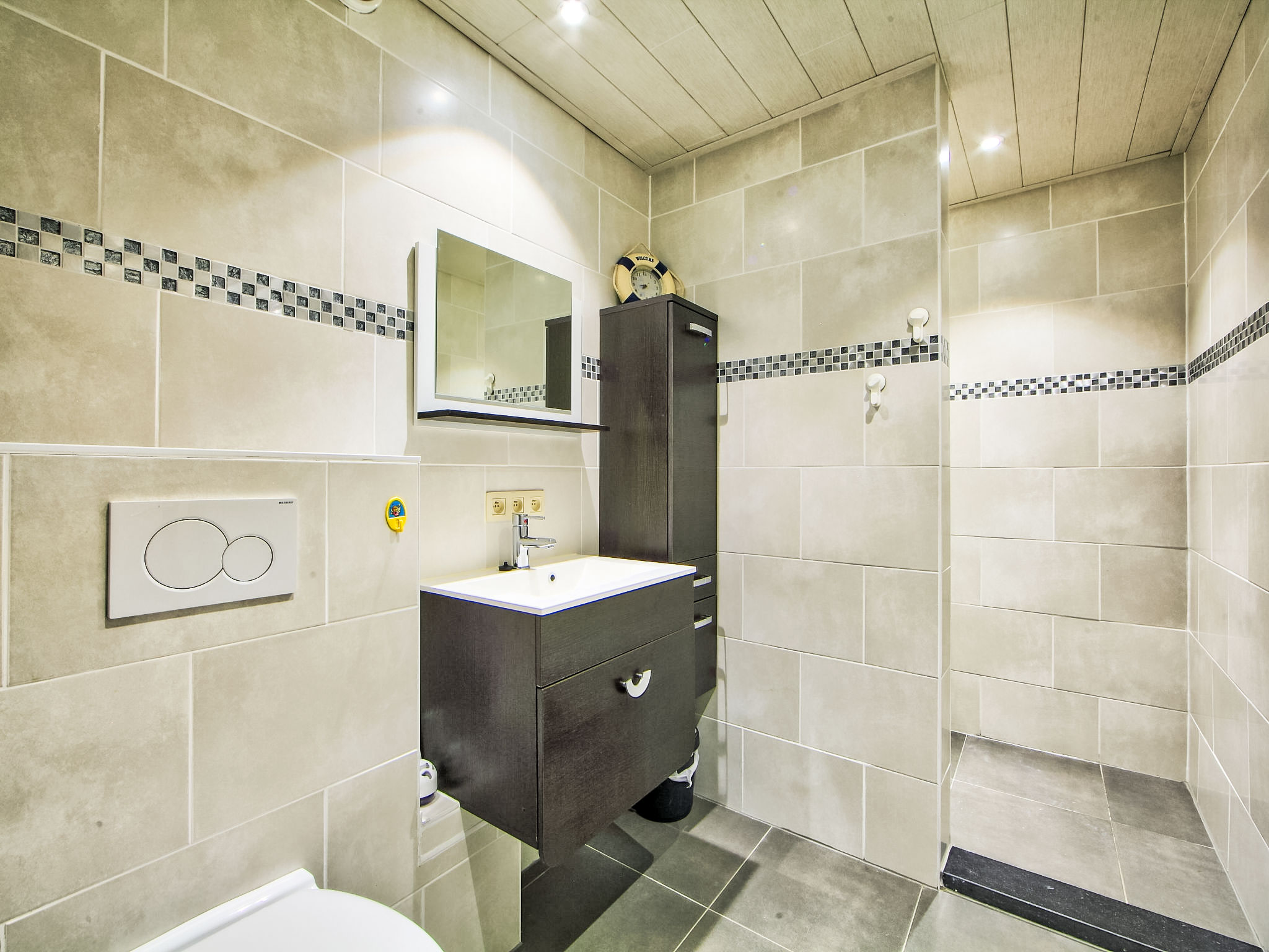 "Apt. 403", 2-Zimmer-Wohnung 60 m2 im 4. Stock. Geräumig und hell, komfortabel eingerichtet: Wohn-/Schlafzimmer mit 1 Doppeldiwanbett, TV und E-Heizung. Ausgang zum Balkon. 1 Zimmer mit 1 Doppelbett (1 x 160 cm). Offene Küche (Backofen, Geschirrspüler, 4 Glaskeramikherd Platten, Mikrowelle, elektrische Kaffeemaschine). Dusche/WC. Balkon. Balkonmöbel. Zur Verfügung: Internet (Wireless LAN, gratis). Garage Nr. 12 auf dem Grundstück (1 Auto).