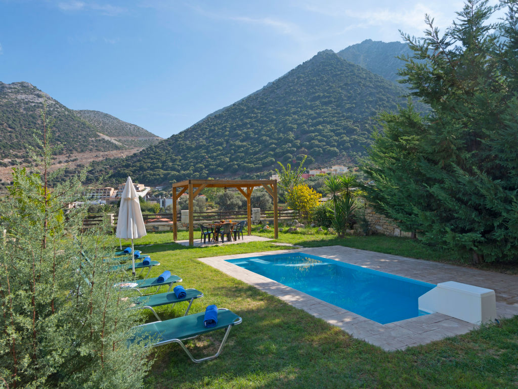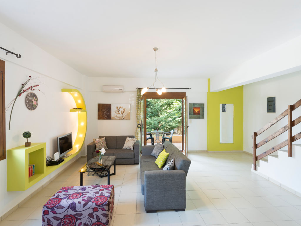 Sehr schöne, alleinstehende, komfortable Villa "Armonia", Baujahr 2013, umgeben von Feldern. Im Ortsteil Vlychada, ruhige, sonnige Lage, 2 km vom Meer, 2 km vom Strand. Zur Alleinbenutzung: schöner Garten mit Blumen und Bäumen, Liegewiese, Schwimmbad nicht einsehbar (18 m2, 150 cm tief, 01.04.-31.10.) mit Innentreppe. Aussendusche, Grill. Wäschewechsel 2 mal wöchentlich. Handtuchwechsel 2 mal wöchentlich. Wohnungsreinigung 2 mal wöchentlich. Parkplatz (für 2 Autos) beim Haus. Lebensmittelgeschäft 2 km, Supermarkt 2 km, Restaurant 2 km, Bar 2 km, Bäckerei 2 km, Café 2 km, Sandstrand "Bali" 2 km. Nahe gelegene Sehenswürdigkeiten: El Greco Museum 23.1 km, Monastery of Arkadi 32.5 km, Rethymnon Old Town 33.4 km, Ideon Andron (Zeus Cave) 56.8 km, Melidoni Cave 15.3 km, Museum of Ancient Eleftherna 34.1 km. Bekannte Seen in der Umgebung sind gut erreichbar: Kournas 54.6 km. Bitte beachten: Fahrzeug empfohlen. Geeignet für Familien, Babyausstattung auf Anfrage (inkl.). Jugendgruppen nur auf Anfrage. Das Foto ist nur ein Hausbeispiel.