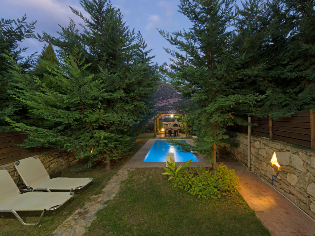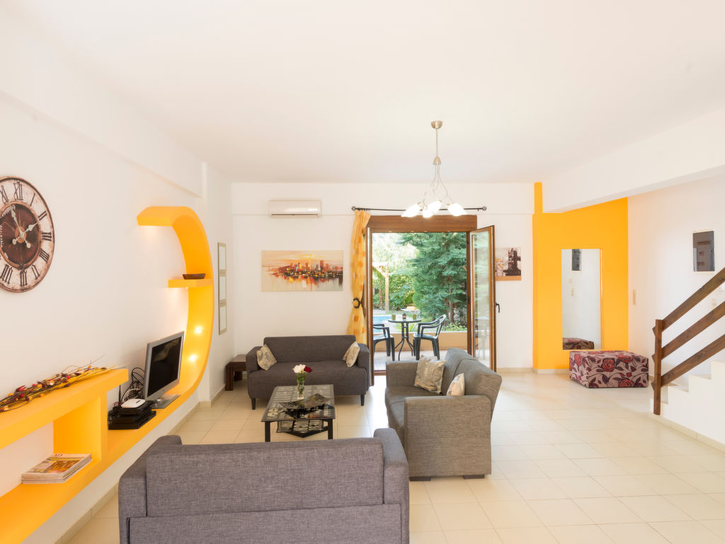 Sehr schöne, alleinstehende, komfortable Villa "Melodia", Baujahr 2013, umgeben von Feldern. Im Ortsteil Vlychada, ruhige, sonnige Lage, 2 km vom Meer, 2 km vom Strand. Zur Alleinbenutzung: schöner Garten mit Blumen und Bäumen, Liegewiese, Schwimmbad nicht einsehbar (18 m2, 150 cm tief, 01.04.-31.10.) mit Innentreppe. Aussendusche, Grill. Wäschewechsel 2 mal wöchentlich. Handtuchwechsel 2 mal wöchentlich. Wohnungsreinigung 2 mal wöchentlich. Parkplatz (für 2 Autos) beim Haus. Lebensmittelgeschäft 2 km, Supermarkt 2 km, Restaurant 2 km, Bar 2 km, Bäckerei 2 km, Café 2 km, Sandstrand "Bali" 2 km. Nahe gelegene Sehenswürdigkeiten: El Greco Museum 23.1 km, Monastery of Arkadi 32.5 km, Rethymnon Old Town 33.4 km, Ideon Andron (Zeus Cave) 56.8 km, Melidoni Cave 15.3 km, Museum of Ancient Eleftherna 34.1 km. Bekannte Seen in der Umgebung sind gut erreichbar: Kournas 54.6 km. Bitte beachten: Fahrzeug empfohlen. Geeignet für Familien, Babyausstattung auf Anfrage (inkl.). Jugendgruppen nur auf Anfrage. Das Foto ist nur ein Hausbeispiel.