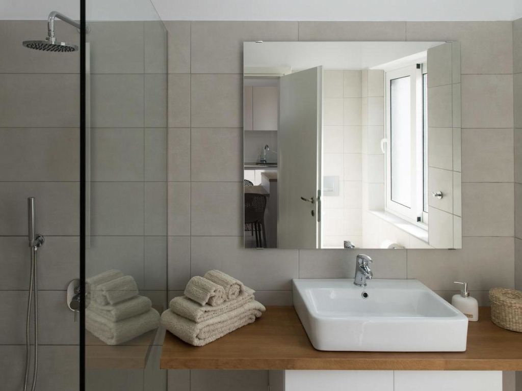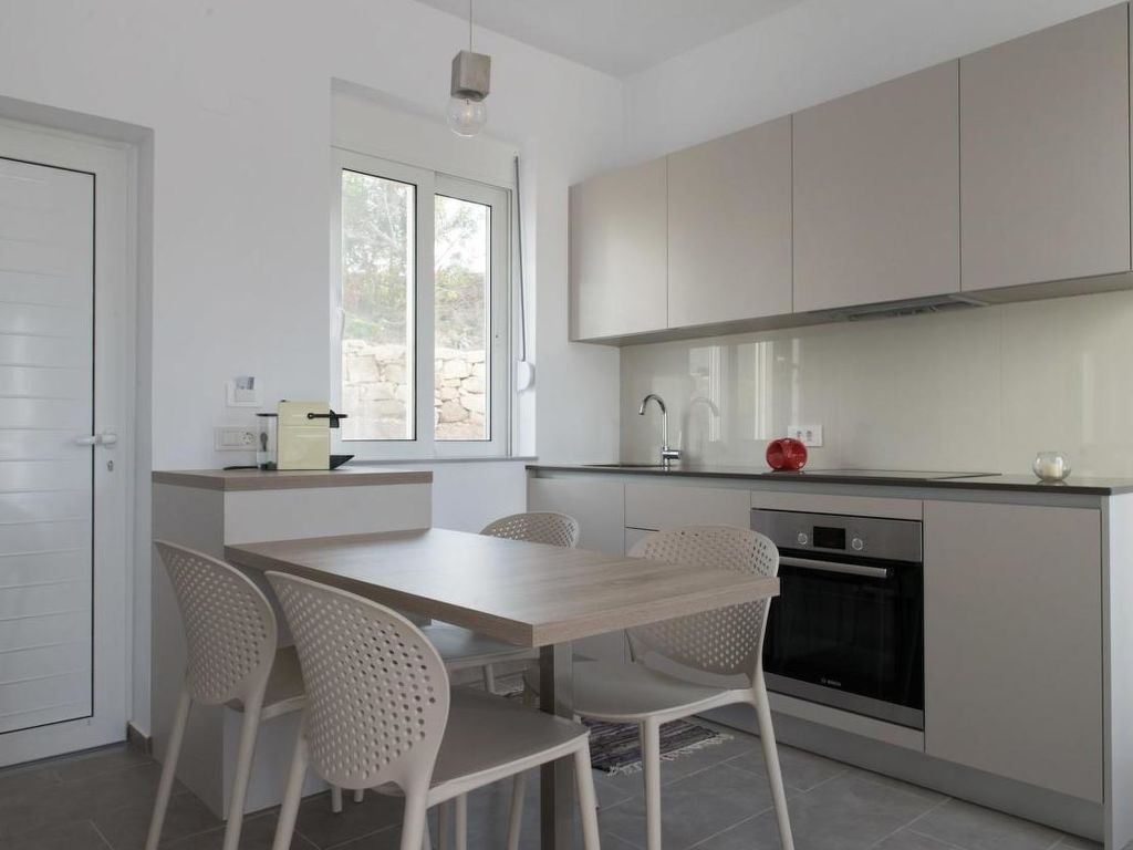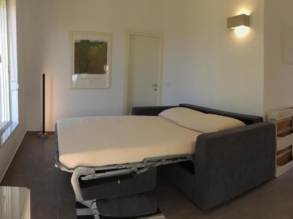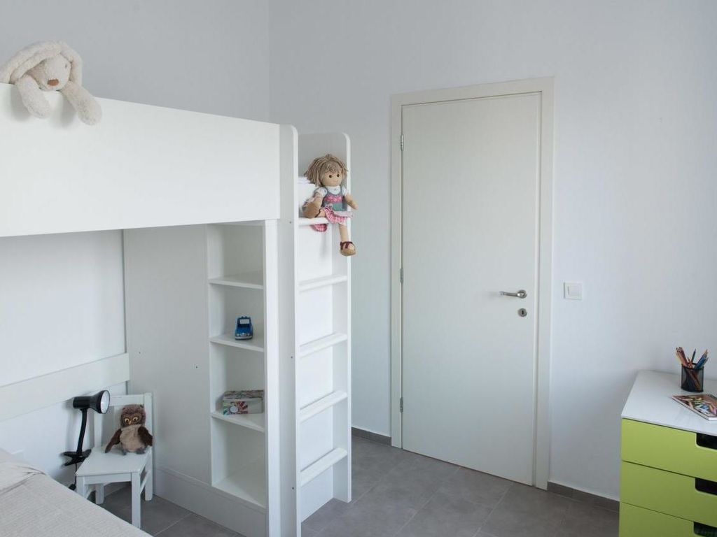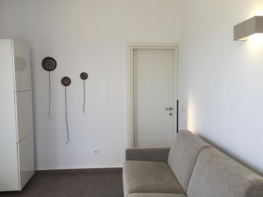 3-Zimmer-Wohnung "WeCrete - Family (West)", für 6 Personen, 55 m2, im Erdgeschoss, komfortabel und modern eingerichtet. Wohn-/Schlafzimmer mit. Rauchen nicht erlaubt. Internet (Wireless LAN [WLAN]). 1 Doppeldiwanbett. Schlafzimmer mit 1 Doppelbett. Schlafzimmer mit 2 Etagenbetten. Offene Küche mit 4 - Platten Herd, Backofen, Esstisch und Kühlschrank. Dusche/WC. Terrasse, Terrassenmöbel. Weitere Ausstattung: Kinderhochstuhl, Haartrockner. This apartment has a living room with private veranda, a double room, a children's room with a bunk bed (2 beds), a kitchen and a bathroom. and is perfect for families. In the living room, there is a convertible Sofa-Bed so that you can switch between day and night mode within 10 seconds. The kitchen is well equipped with oven, cooktop, fridge with freezer, kettle, toaster and a Nespresso machine. You choose if you prefer eating in the kitchen or outside, on your private veranda with sea-view. The double room offers a massive wood queen size bed with natural Latex matress, memory foam pillows (standard or thick, you choose) and first quality cotton linen, towels and blankets. The modern arranged bathroom has a rainfall shower. Both living room and the main bedroom (with the double bed) are airconditioned/heated.