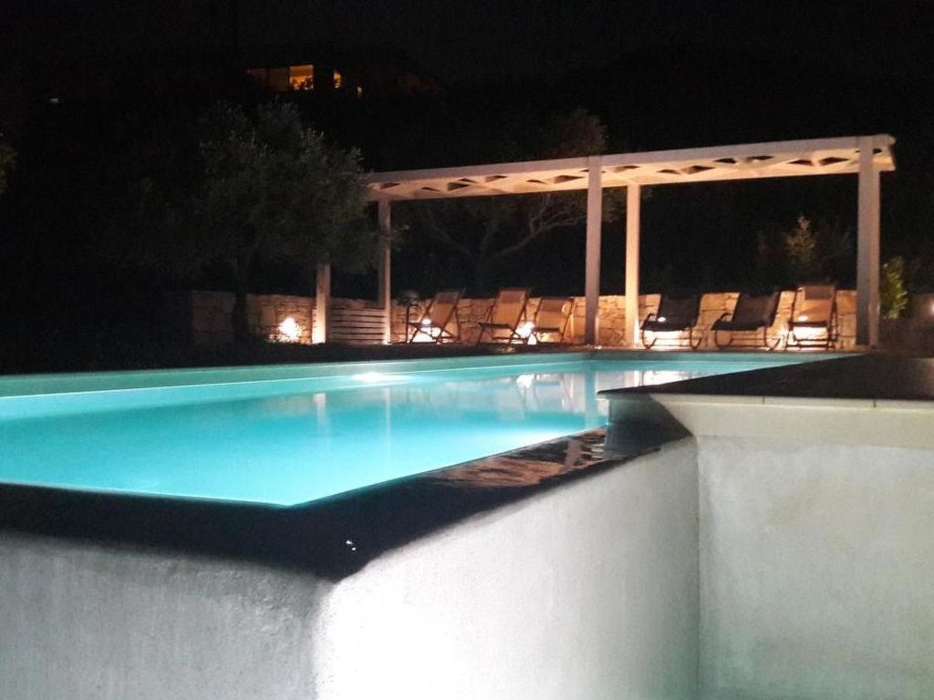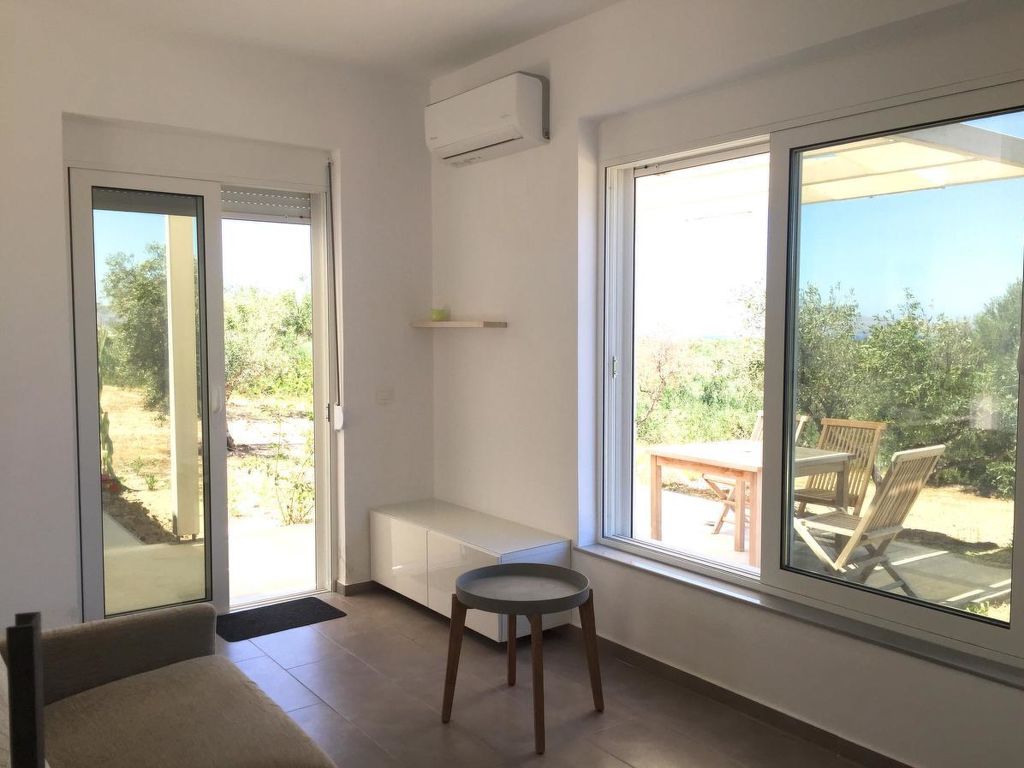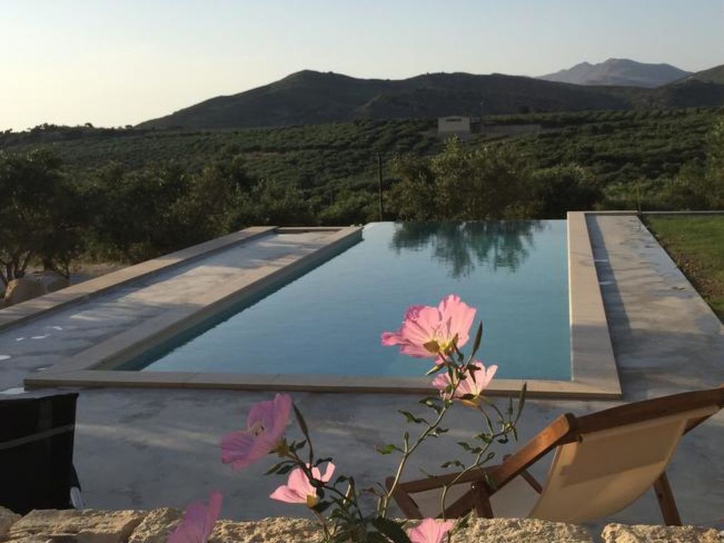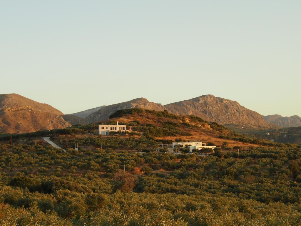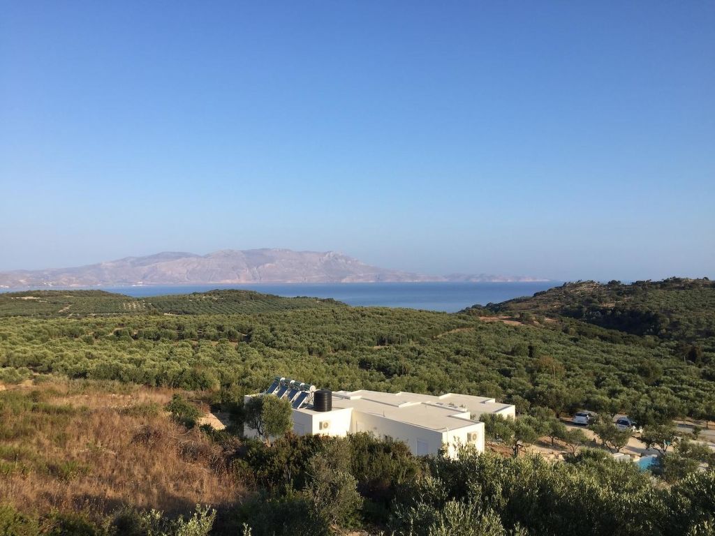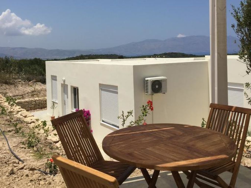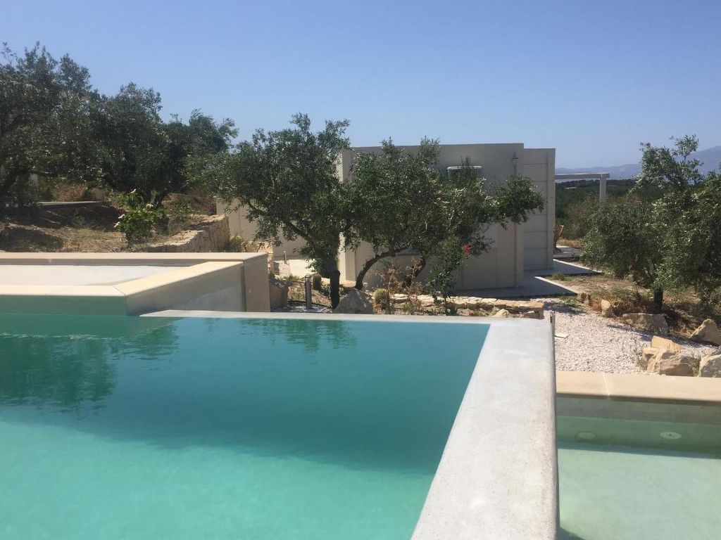 Neues, modernes, schönes Zweifamilienhaus "WeCrete - Family (West)", Baujahr 2017, umgeben von Bäumen und Feldern. Hausausstattung: Klimaanlage. Zufahrt & Parkmöglichkeiten: auf der Strasse. Ganzjährig Zufahrt nur bis 30 m zum Haus. Naturstrasse. Fussweg 30 m. Lage: ausserhalb von Lyridiana, alleinstehende, ruhige, erhöhte, sonnige Lage auf einem Hügel. Aussicht von der Wohnung auf das Meer, den Garten und den Wald. Umgebung des Hauses: Grundstück (7'500 m2), Garten (zur Mitbenutzung), Swimming Pool (zur Mitbenutzung, Länge 10 m x Breite 3 m), Kinderbecken (zur Mitbenutzung), Grill (zur Mitbenutzung). Infrastruktur und Distanzen: Lebensmittelgeschäft 4.5 km, Restaurant 3 km, Kieselstrand 4 km. The site is located on the eastern hills of the Kissamos Bay. The access is directly from the old national road, few minutes from the nearest beach in Nopigia, 10 minutes from Kissamos and Kolymbari. A path among the trees takes you from the shady parking to the main entrance. All around quietness and olive trees, flowers and a spectacular view of the Kissamos bay and the Gramvousa peninsula. Within a five minute walk you can reach the little village of Lyridianà: quietness and a few houses, a water source and the sound of crickets. For tavernas and bars, go to Koleni (5 minutes by car) or to Nopigia (8 minutes by car), where you also find the closest beach. The center of Kissamos (10 minutes by car) offers you a choice of everything: from traditional tavernas to trendy bars, shops and supermarkets.