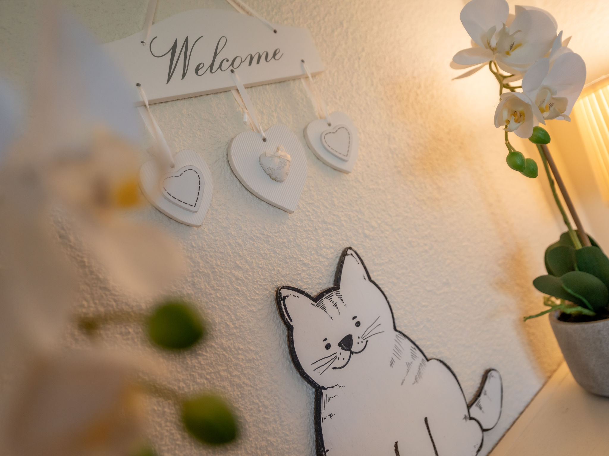 "Dina", 2-Zimmer-Wohnung 40 m2 im 1. Stock. Komfortabel und gemütlich eingerichtet: Wohn-/Esszimmer mit 1 Doppeldiwanbett (1 x 140 cm, Länge 200 cm), Digital-TV und Internationale TV-Sender. 1 Zimmer mit 1 Doppelbett (1 x 160 cm, Länge 200 cm). Ausgang zur Terrasse. Kochnische (4 Kochplatten, Geschirrspüler, Toaster, Wasserkocher, Mikrowelle, elektrische Kaffeemaschine). Bad oder Dusche. 2 kleine Balkone, Westlage und Ostlage. Balkonmöbel. Panoramasicht auf die Landschaft. Zur Verfügung: Kinderhochstuhl, Babybett bis 2 Jahre, Haartrockner. Internet (Wireless LAN, gratis). Parkplatz Nr. A19. Bitte beachten: Nichtraucher-Haus. Rauchmelder, Feuerlöscher, kein Fahrstuhl.