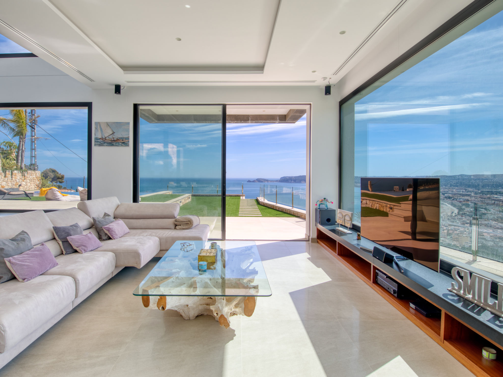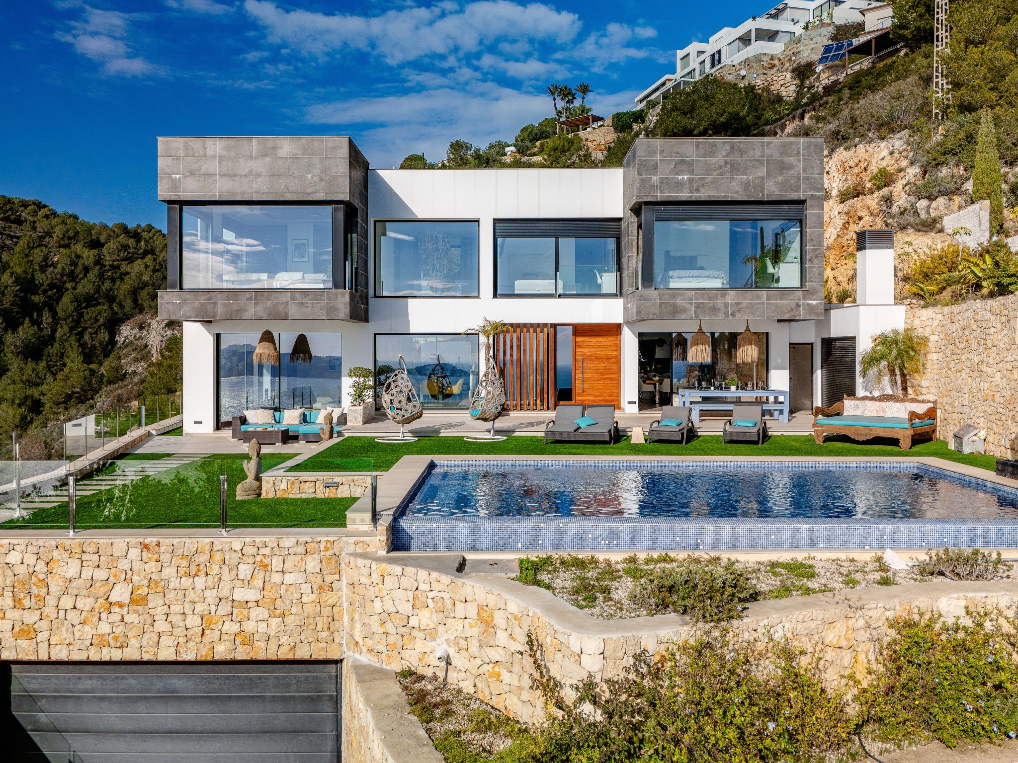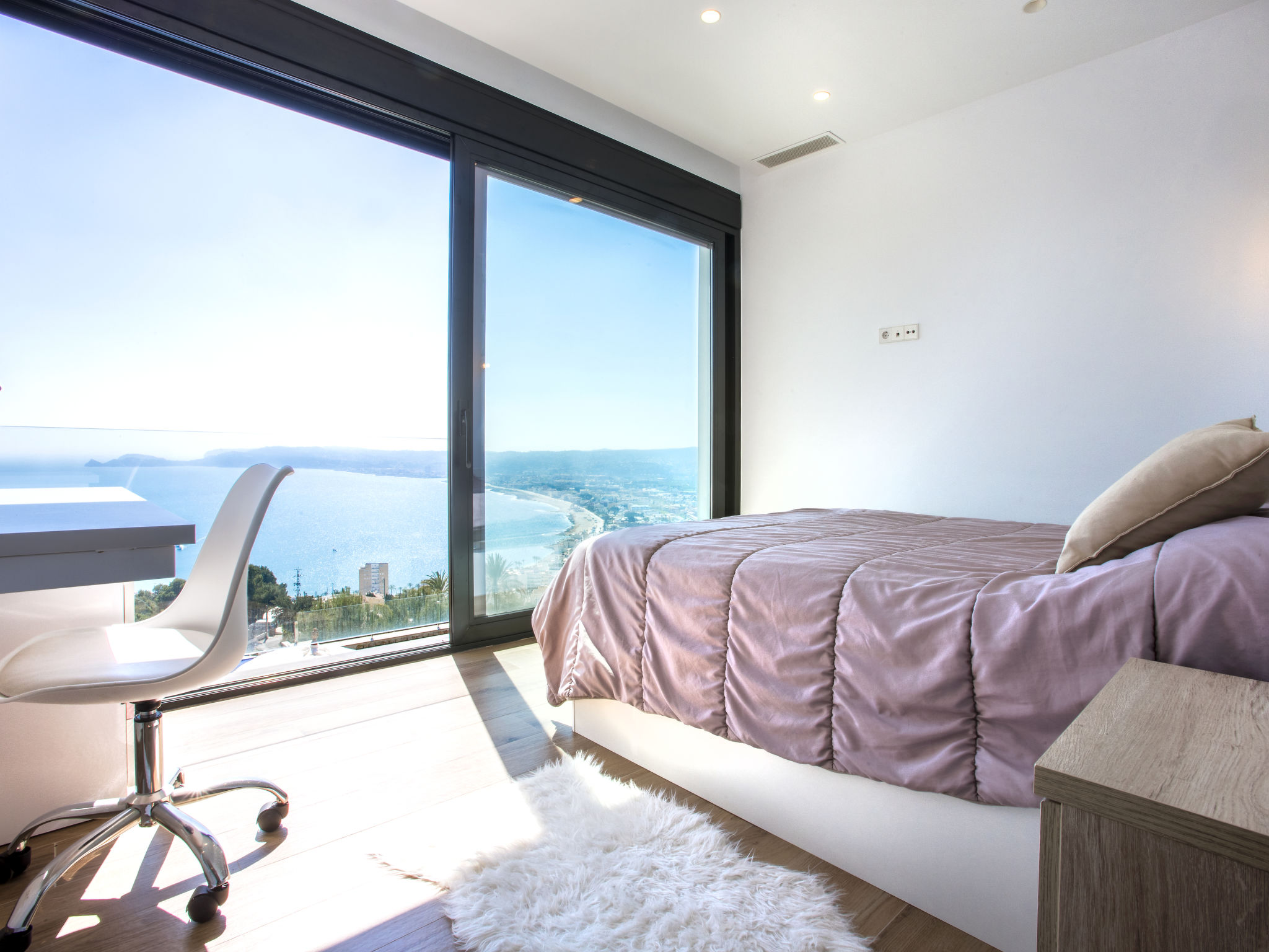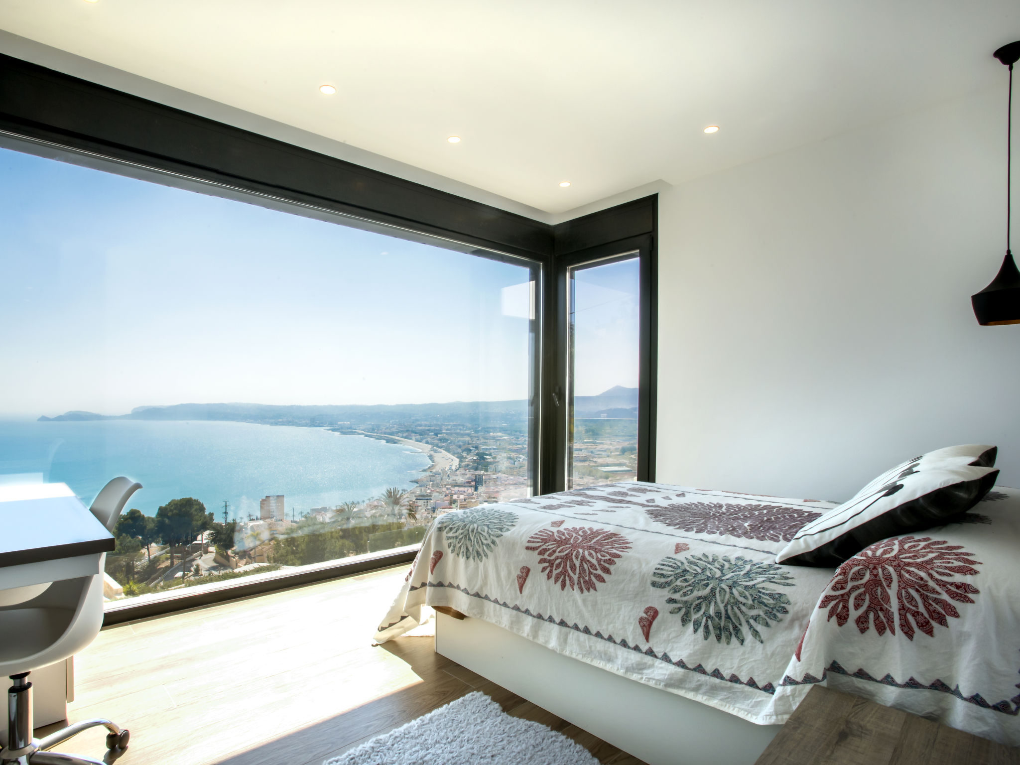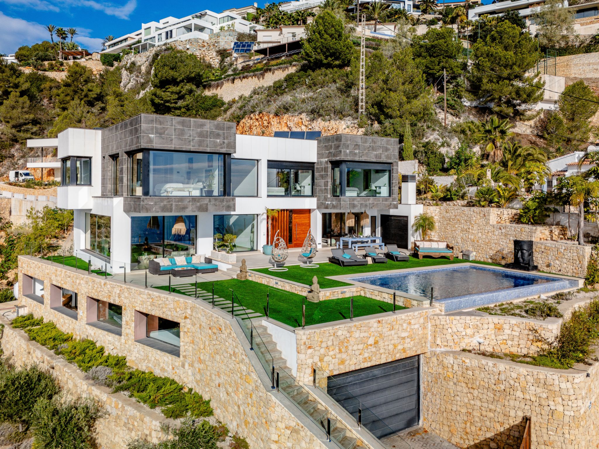 "Villa Jakarta", 7-Zimmer-Villa 650 m2 auf 2 Stockwerken. Geräumig und hell, sehr modern und luxuriös eingerichtet: Wohn-/Esszimmer mit offenem Kamin, Esstisch, Sat-TV und Digital-TV. Grosse Küche (Backofen, Geschirrspüler, 4 Induktionskochplatten, Toaster, Wasserkocher, Mikrowelle, Tiefkühler, elektrische Kaffeemaschine, Kochinsel). Dusche/WC. Unteres Geschoss: 1 Zimmer mit 1 franz. Bett (160 cm, Länge 200 cm), Dusche/WC. 1 Zimmer mit 1 franz. Bett (160 cm, Länge 200 cm), Dusche/WC. Obergeschoss: 1 Zimmer mit 1 franz. Bett (180 cm, Länge 200 cm), Dusche/WC. 1 Zimmer mit 1 franz. Bett (160 cm, Länge 200 cm), Dusche/WC. 1 Zimmer mit 1 franz. Bett (160 cm, Länge 200 cm), Dusche/WC. Grosse Terrasse. Terrassenmöbel, Gartengrill, Liegestühle. Herrliche Panoramasicht auf das Meer und die Ortschaft. Zur Verfügung: Waschmaschine, Wäschetrockner, Bügeleisen, Kinderhochstuhl, Babybett, Haartrockner. Internet (Wireless LAN, gratis). Beim Haus. In der unteren Etage befindet sich auch ein Fitnessstudio mit Sprudelbad und WC. Garage für 3 Autos. VT-484887-A