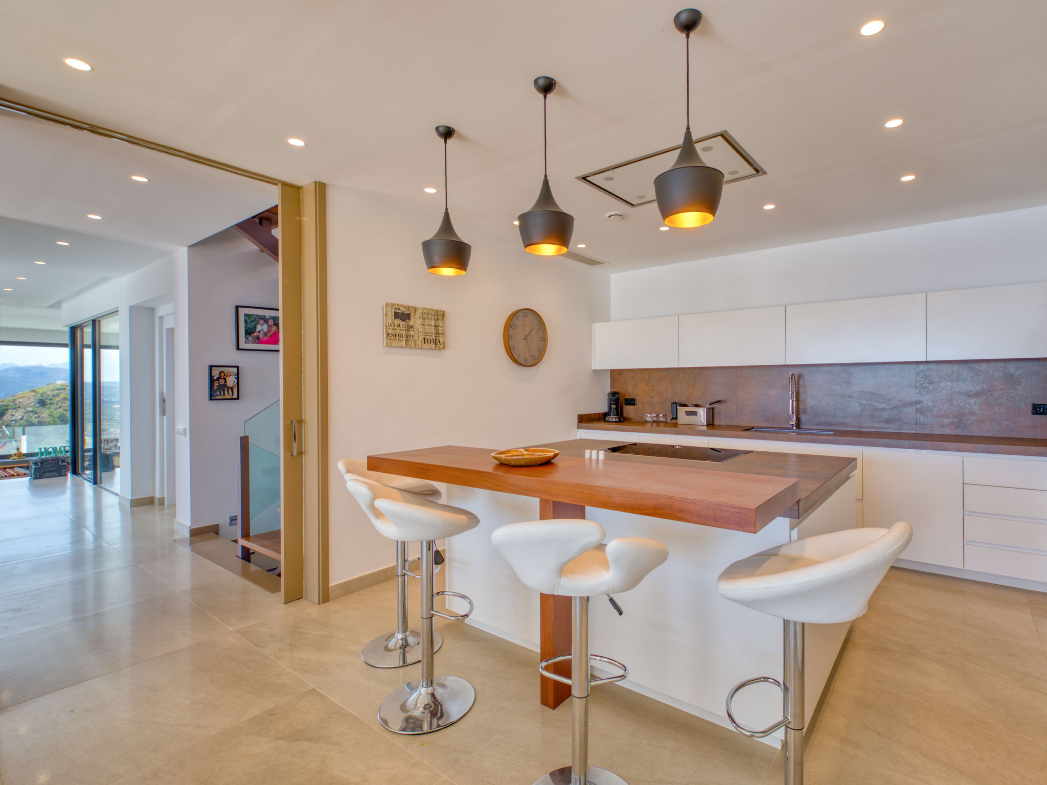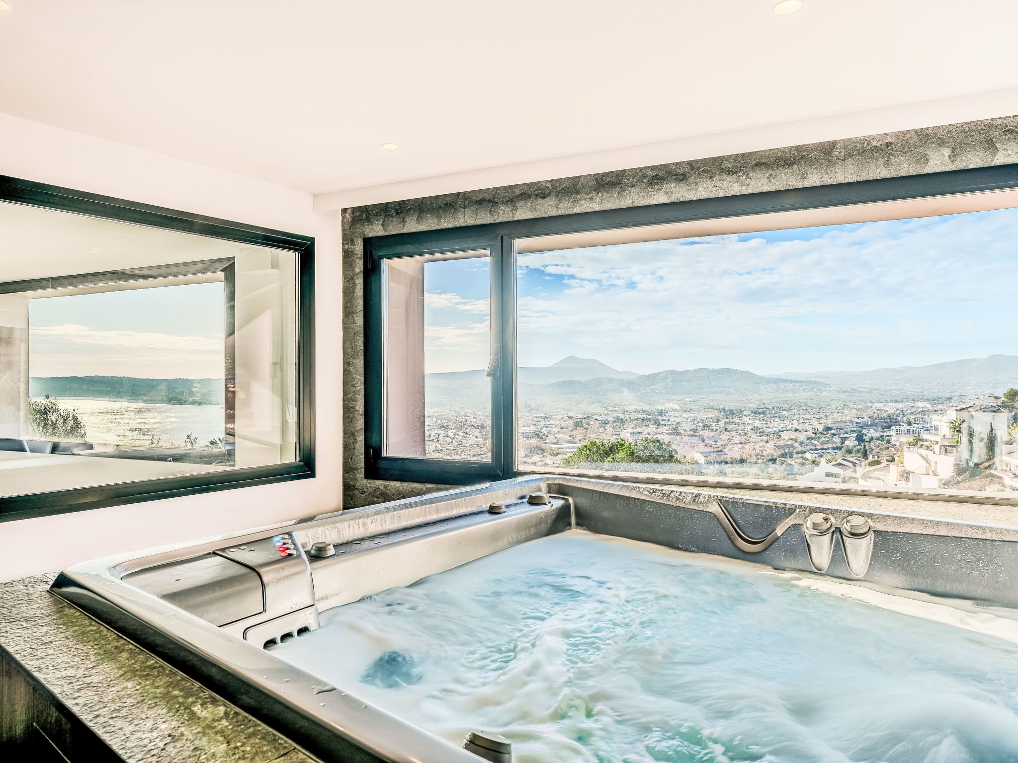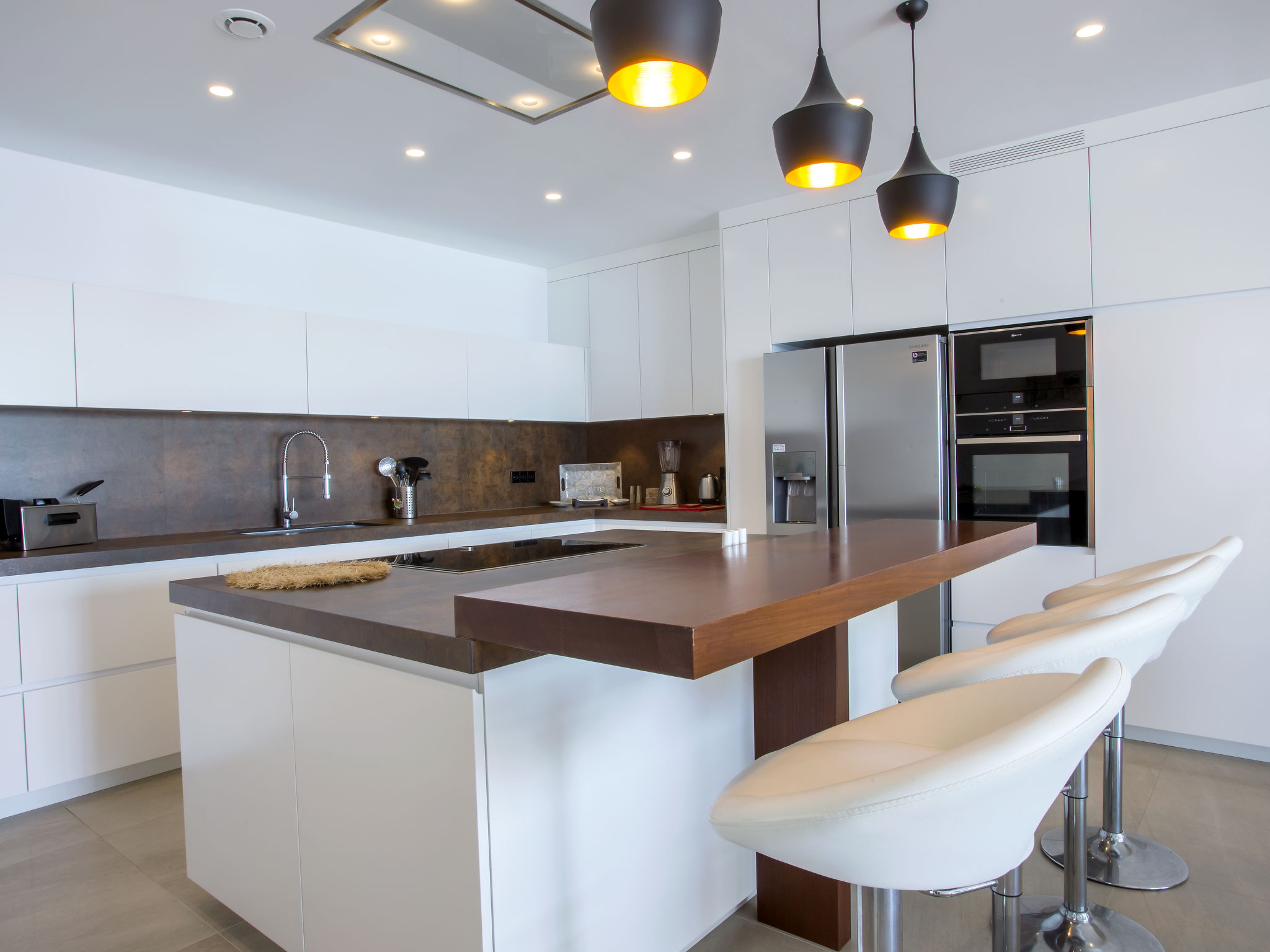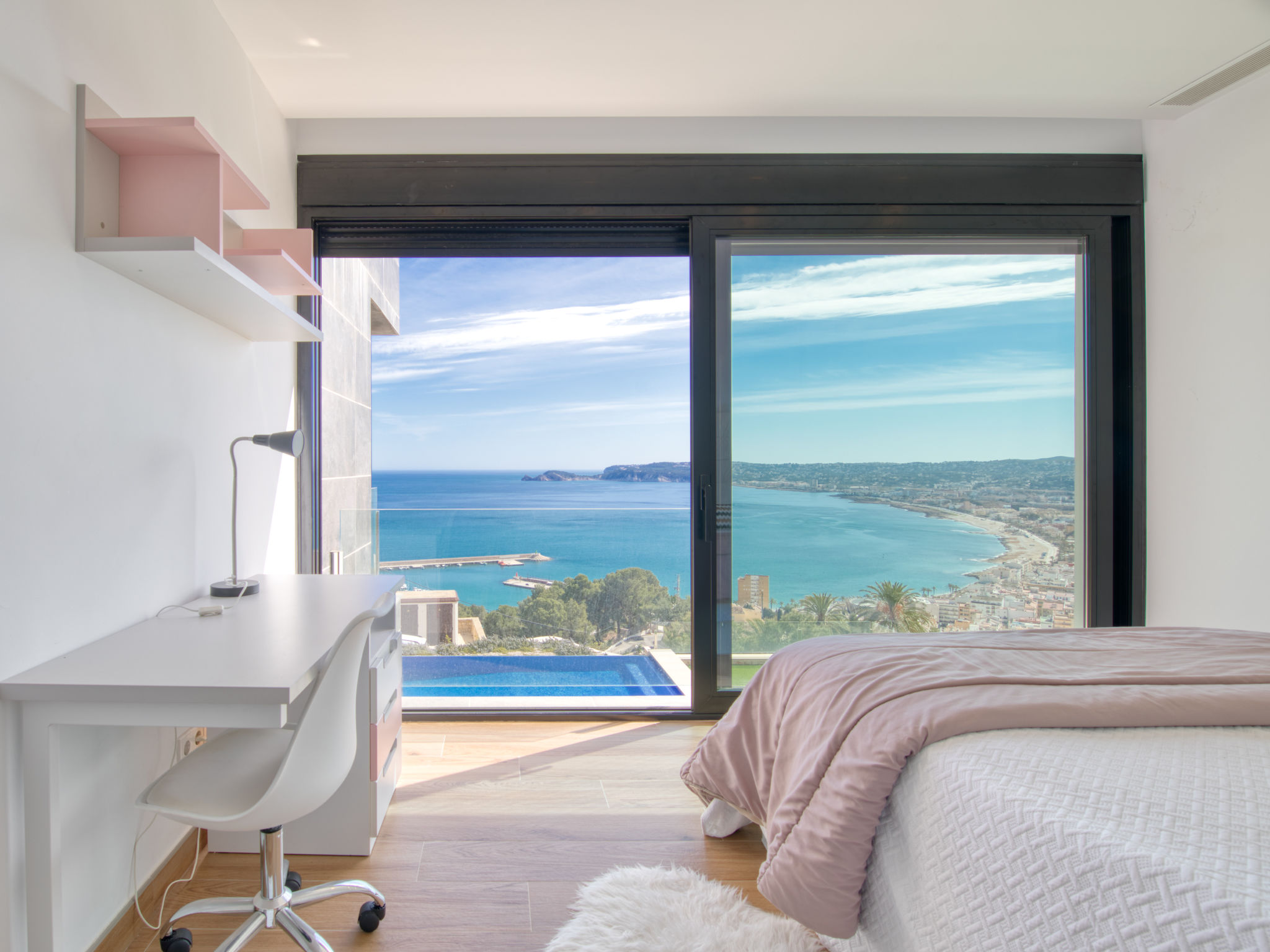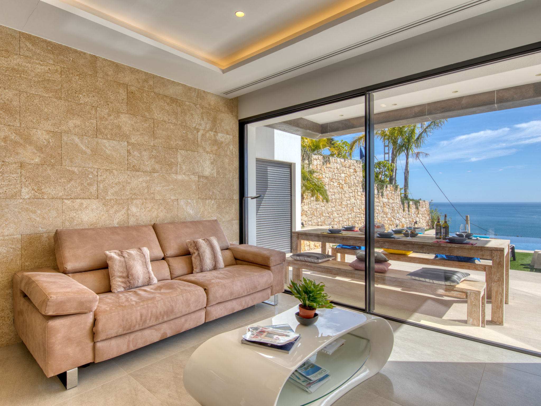 "Villa Jakarta", 7-Zimmer-Villa 650 m2 auf 2 Stockwerken. Geräumig und hell, sehr modern und luxuriös eingerichtet: Wohn-/Esszimmer mit offenem Kamin, Esstisch, Sat-TV und Digital-TV. Grosse Küche (Backofen, Geschirrspüler, 4 Induktionskochplatten, Toaster, Wasserkocher, Mikrowelle, Tiefkühler, elektrische Kaffeemaschine, Kochinsel). Dusche/WC. Unteres Geschoss: 1 Zimmer mit 1 franz. Bett (160 cm, Länge 200 cm), Dusche/WC. 1 Zimmer mit 1 franz. Bett (160 cm, Länge 200 cm), Dusche/WC. Obergeschoss: 1 Zimmer mit 1 franz. Bett (180 cm, Länge 200 cm), Dusche/WC. 1 Zimmer mit 1 franz. Bett (160 cm, Länge 200 cm), Dusche/WC. 1 Zimmer mit 1 franz. Bett (160 cm, Länge 200 cm), Dusche/WC. Grosse Terrasse. Terrassenmöbel, Gartengrill, Liegestühle. Herrliche Panoramasicht auf das Meer und die Ortschaft. Zur Verfügung: Waschmaschine, Wäschetrockner, Bügeleisen, Kinderhochstuhl, Babybett, Haartrockner. Internet (Wireless LAN, gratis). Beim Haus. In der unteren Etage befindet sich auch ein Fitnessstudio mit Sprudelbad und WC. Garage für 3 Autos. VT-484887-A