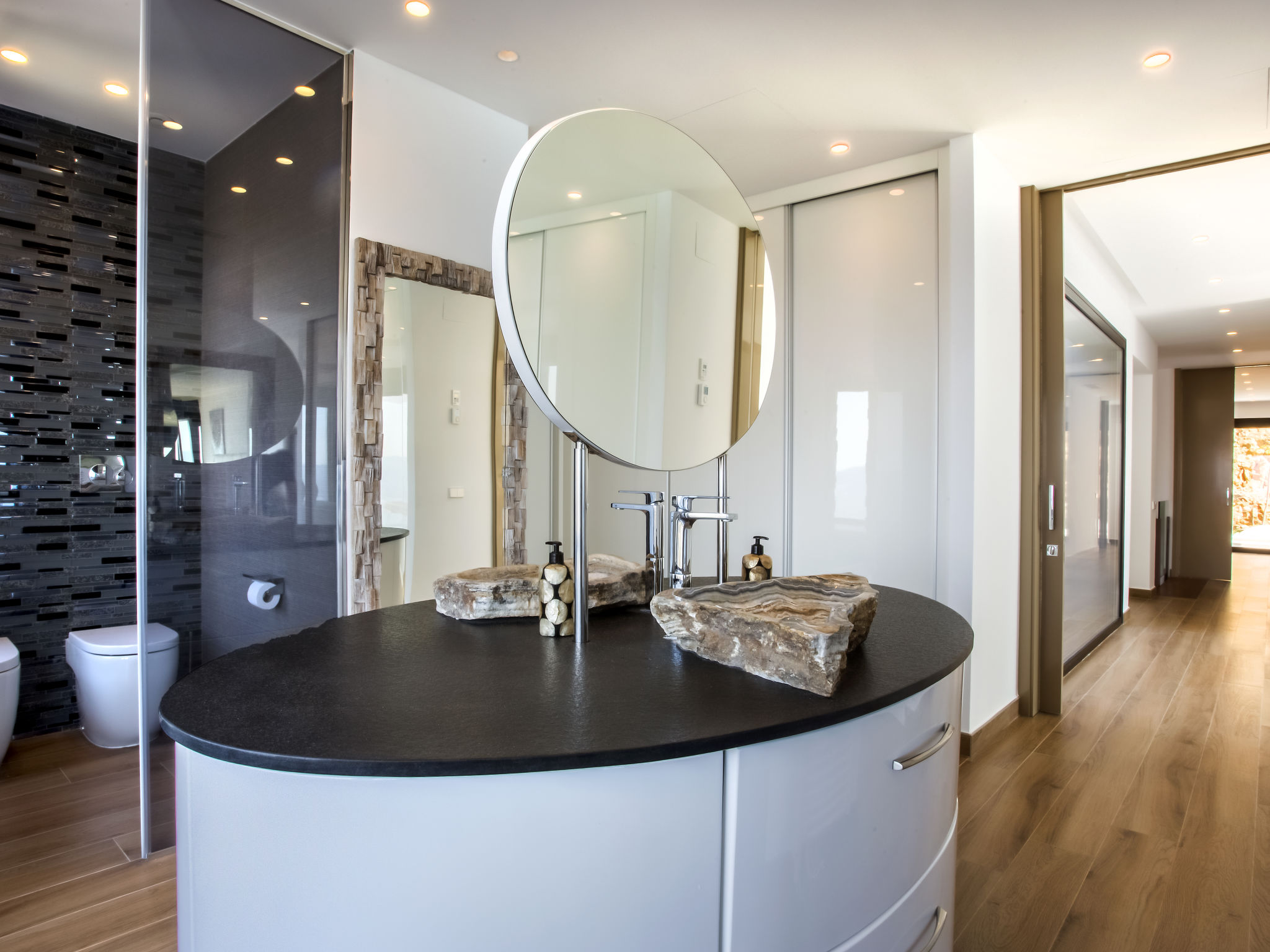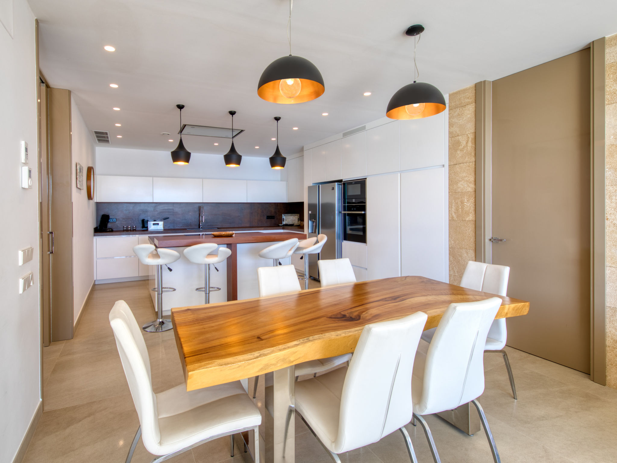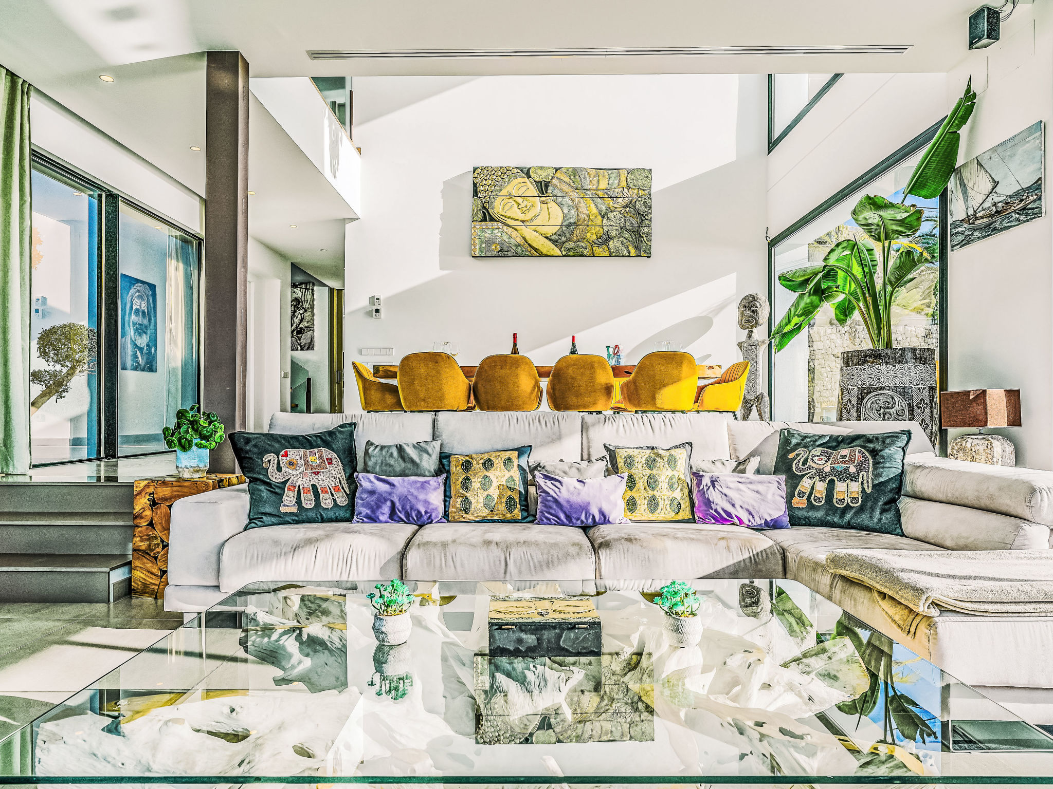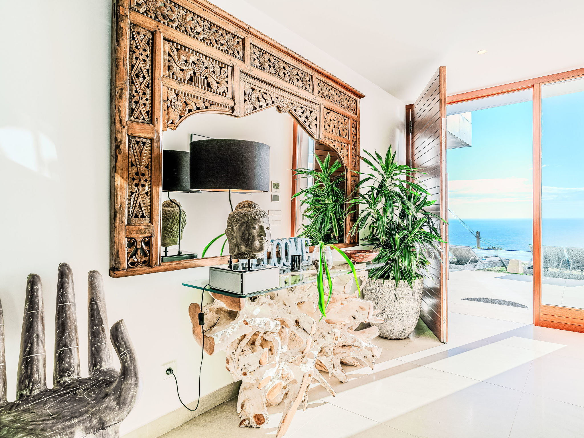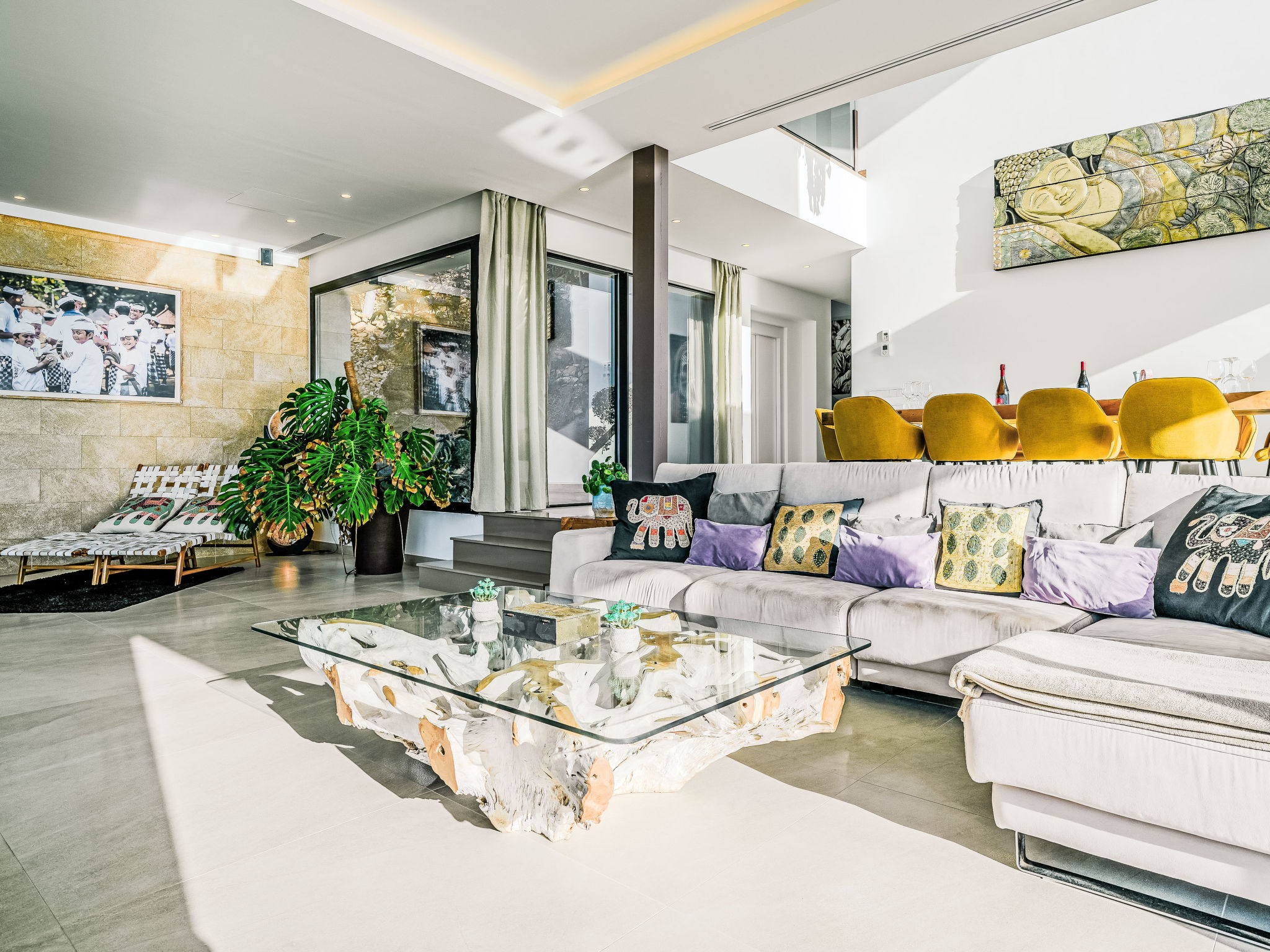 "Villa Jakarta", 7-Zimmer-Villa 650 m2 auf 2 Stockwerken. Geräumig und hell, sehr modern und luxuriös eingerichtet: Wohn-/Esszimmer mit offenem Kamin, Esstisch, Sat-TV und Digital-TV. Grosse Küche (Backofen, Geschirrspüler, 4 Induktionskochplatten, Toaster, Wasserkocher, Mikrowelle, Tiefkühler, elektrische Kaffeemaschine, Kochinsel). Dusche/WC. Unteres Geschoss: 1 Zimmer mit 1 franz. Bett (160 cm, Länge 200 cm), Dusche/WC. 1 Zimmer mit 1 franz. Bett (160 cm, Länge 200 cm), Dusche/WC. Obergeschoss: 1 Zimmer mit 1 franz. Bett (180 cm, Länge 200 cm), Dusche/WC. 1 Zimmer mit 1 franz. Bett (160 cm, Länge 200 cm), Dusche/WC. 1 Zimmer mit 1 franz. Bett (160 cm, Länge 200 cm), Dusche/WC. Grosse Terrasse. Terrassenmöbel, Gartengrill, Liegestühle. Herrliche Panoramasicht auf das Meer und die Ortschaft. Zur Verfügung: Waschmaschine, Wäschetrockner, Bügeleisen, Kinderhochstuhl, Babybett, Haartrockner. Internet (Wireless LAN, gratis). Beim Haus. In der unteren Etage befindet sich auch ein Fitnessstudio mit Sprudelbad und WC. Garage für 3 Autos. VT-484887-A