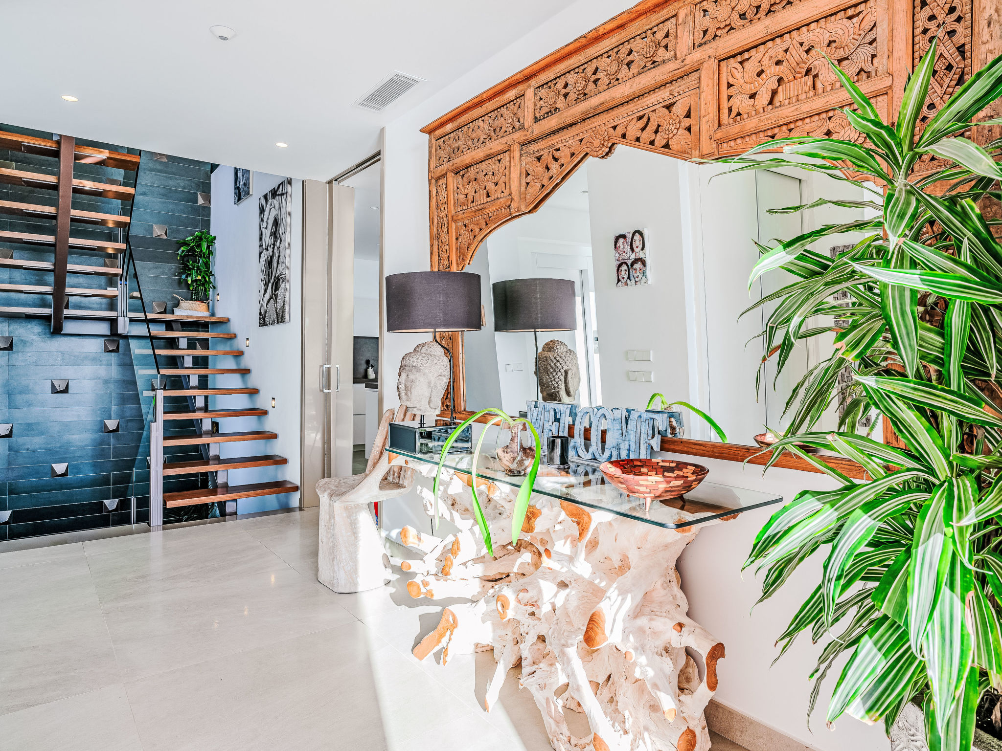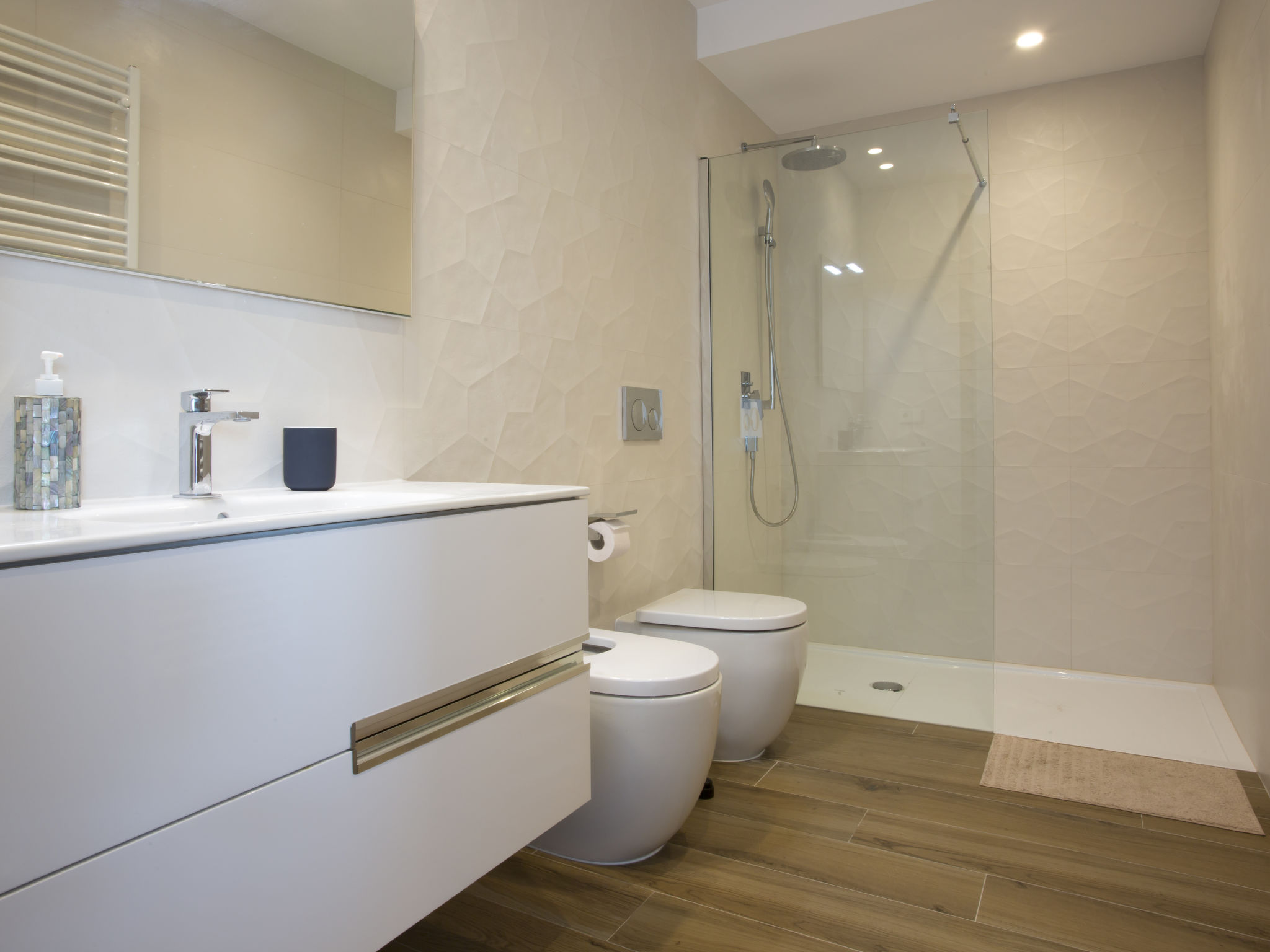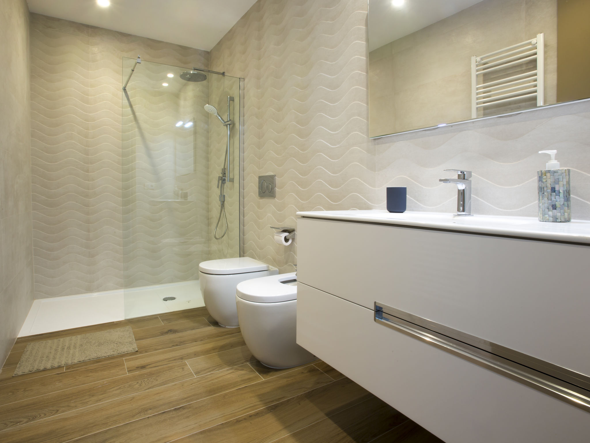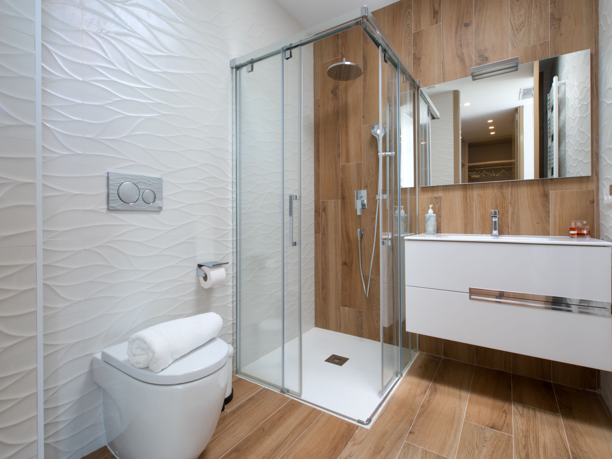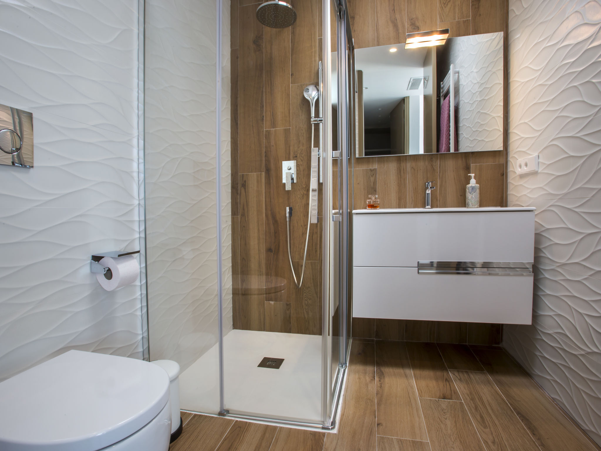"Villa Jakarta", 7-Zimmer-Villa 650 m2 auf 2 Stockwerken. Geräumig und hell, sehr modern und luxuriös eingerichtet: Wohn-/Esszimmer mit offenem Kamin, Esstisch, Sat-TV und Digital-TV. Grosse Küche (Backofen, Geschirrspüler, 4 Induktionskochplatten, Toaster, Wasserkocher, Mikrowelle, Tiefkühler, elektrische Kaffeemaschine, Kochinsel). Dusche/WC. Unteres Geschoss: 1 Zimmer mit 1 franz. Bett (160 cm, Länge 200 cm), Dusche/WC. 1 Zimmer mit 1 franz. Bett (160 cm, Länge 200 cm), Dusche/WC. Obergeschoss: 1 Zimmer mit 1 franz. Bett (180 cm, Länge 200 cm), Dusche/WC. 1 Zimmer mit 1 franz. Bett (160 cm, Länge 200 cm), Dusche/WC. 1 Zimmer mit 1 franz. Bett (160 cm, Länge 200 cm), Dusche/WC. Grosse Terrasse. Terrassenmöbel, Gartengrill, Liegestühle. Herrliche Panoramasicht auf das Meer und die Ortschaft. Zur Verfügung: Waschmaschine, Wäschetrockner, Bügeleisen, Kinderhochstuhl, Babybett, Haartrockner. Internet (Wireless LAN, gratis). Beim Haus. In der unteren Etage befindet sich auch ein Fitnessstudio mit Sprudelbad und WC. Garage für 3 Autos. VT-484887-A