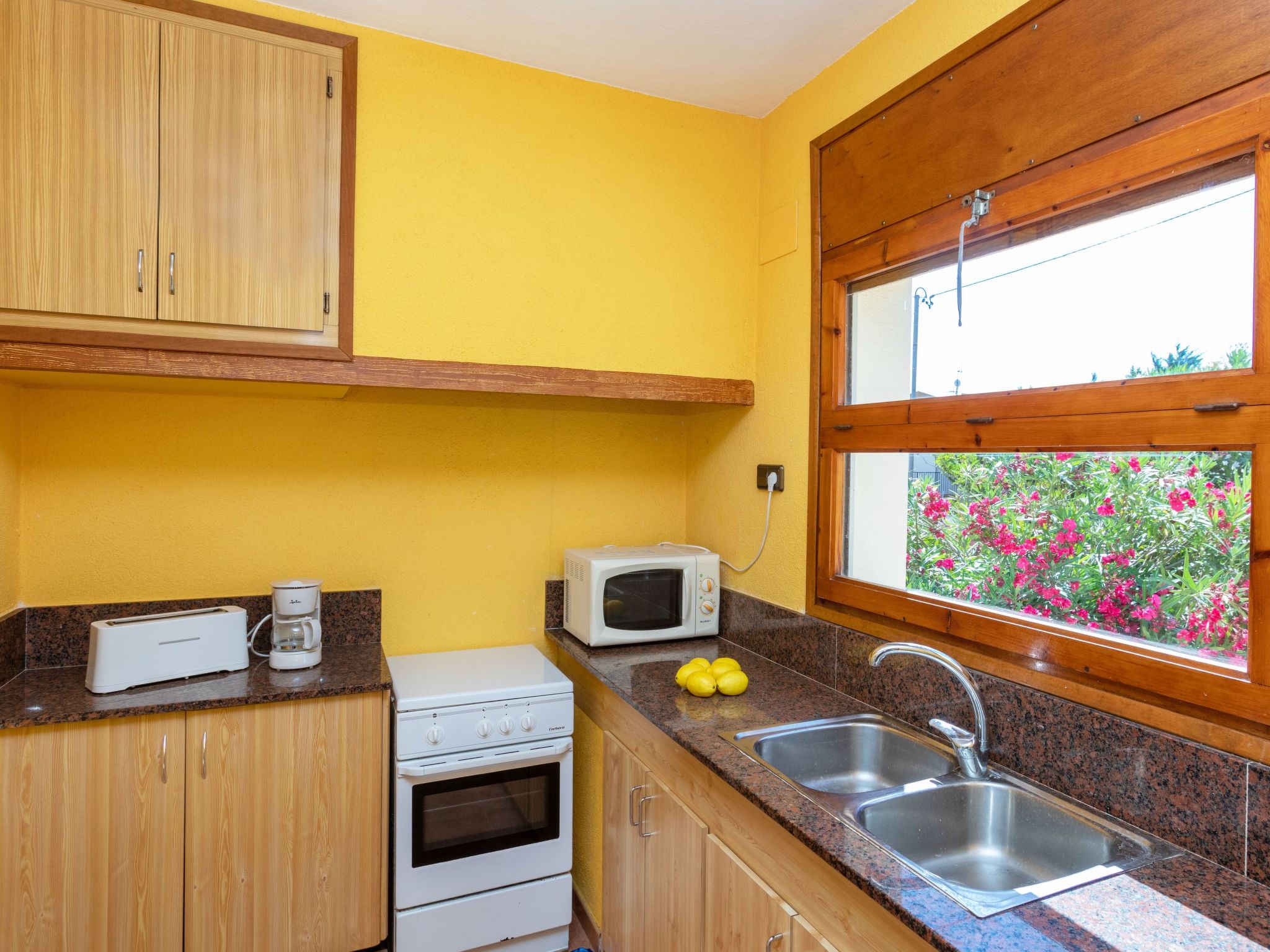 Einfamilienhaus "Bretos 7". 1.8 km vom Zentrum von Calonge, 40 km vom Zentrum von Gerona, 120 km vom Zentrum von Barcelona, 4 km vom Meer, in einer Sackgasse. Zur Alleinbenutzung: Grundstück 450 m2 mit Pflanzen, Schwimmbad (8 x 4 m, 01.01.-31.12.). Öffentliche Parkplätze auf der Strasse. Einkaufsgeschäft 1 km, Sandstrand "Sant Antonio de Calonge" 4 km.