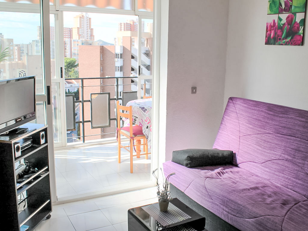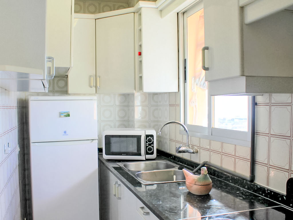 "Narcea", 2-Zimmer-Wohnung 35 m2 im 10. Stock. Objekt geeignet für 2 Erwachsene. Hell, einfach und zweckmässig eingerichtet: Wohn-/Esszimmer 8 m2 mit Digital-TV, Klimaanlage und Warmluftheizung. Ausgang zur Terrasse. 1 Zimmer 7 m2 mit 1 franz. Bett (135 cm, Länge 190 cm). Kochnische (4 Glaskeramikherd Platten, Mikrowelle, Tiefkühler, elektrische Kaffeemaschine). Dusche/WC. Terrasse 10 m2. Eingeschränkte Sicht auf das Meer und die Ortschaft. Zur Verfügung: Waschmaschine, Bügeleisen, Haartrockner. AT322062BM