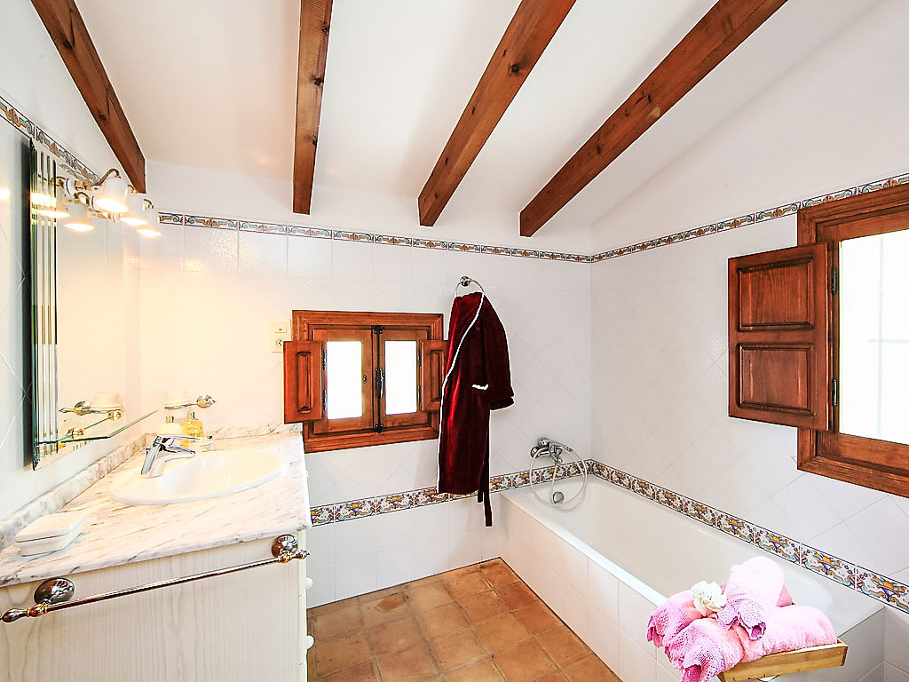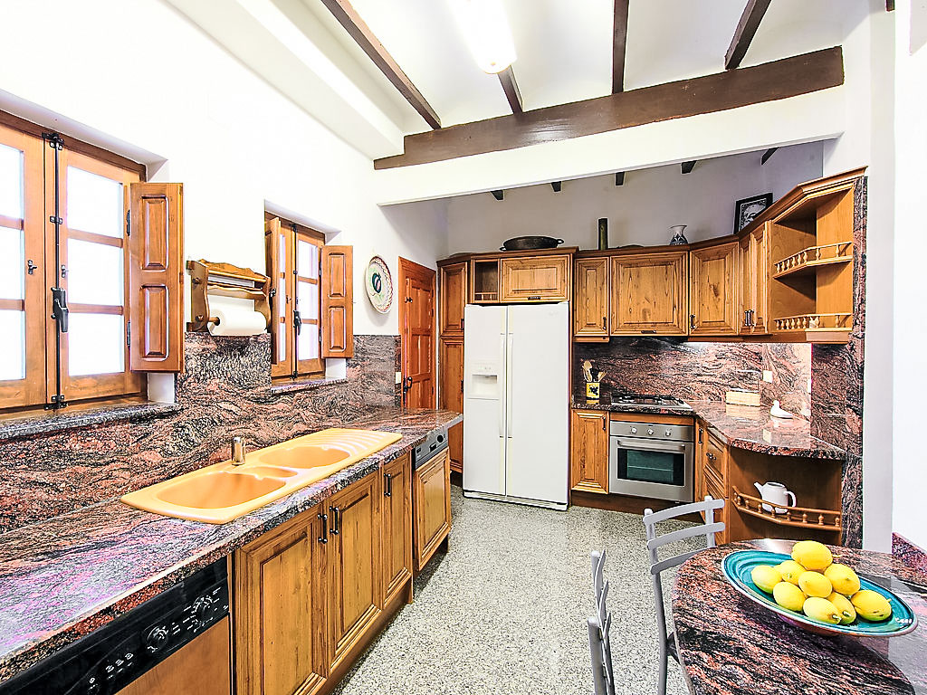 Benimarco: Grosses, gemütliches, historisches Bauernhaus "El Baile Del Sol", auf 2 Stockwerken, umgeben von Bäumen. Ruhige, sonnige, erhöhte Lage, 5.9 km vom Meer, im Grünen. Zur Alleinbenutzung: Grundstück 8'000 m2 (eingezäunt), Park, Garten, Naturgarten, Obstgarten, Schwimmbad (14 x 4 m, 01.01.-31.12.) mit Innentreppe. Sitzplatz, Laube, Terrasse, Gartenmöbel, Grillhaus. Im Hause: Zentralheizung, Heizung nur verfügbar von 01.11. bis 30.04.. Einkaufsgeschäft 2.9 km, Supermarkt 2.9 km, Einkaufszentrum 2.9 km, Restaurant 1.5 km, Bäckerei 2.9 km, Sandstrand "Cala Fustera" 2.8 km, Felsstrand "Cala Avocat" 950 m, Tauchzentrum 3.7 km. Sporthafen 3.7 km, Surfschule 3.7 km, Segelschule 3.7 km. Nahe gelegene Sehenswürdigkeiten: Aqualandia, Mundomar, Terra Mítica, Terra Natura, y Benidorm Palace (Benidorm). Bitte beachten: geeignet für Familien. Der Besitzer akzeptiert keine Jugendgruppen. Ein Teil des Hauses ist abgeschlossen und unbewohnt.