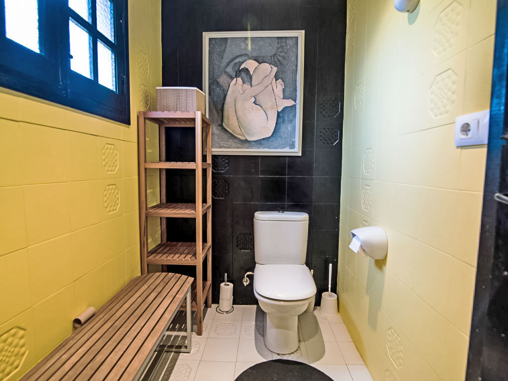 7-Zimmer-Villa 200 m2 auf 2 Stockwerken, im Erdgeschoss. Wohn-/Esszimmer mit offenem Kamin. Ausgang zur Terrasse. Galerie mit Sat-TV. 1 Doppelzimmer mit (160 cm, Länge 200 cm), Bad/WC. 1 Zimmer mit 2 Betten (90 cm, Länge 200 cm). 1 Zimmer mit 2 Betten (90 cm, Länge 200 cm). Küche (Backofen, Geschirrspüler, Tiefkühler). Bad/Bidet/WC. Obergeschoss: 1 Zimmer mit 1 franz. Bett (200 cm, Länge 160 cm), Bad/WC. 1 Zimmer mit 1 franz. Bett (180 cm, Länge 190 cm), offenem Kamin, Bad/WC und Dusche. Ausgang zum Garten. Grosse Terrasse 60 m2, überdacht, Gartensitzplatz. Terrassenmöbel, Gartengrill, Liegestühle (5). Herrliche Panoramasicht auf das Meer. Zur Verfügung: Waschmaschine. Internet (Wireless LAN, gratis). Atemberaubende Aussicht vom Gelände und vom Schwimmbad. Schwimmbad-Heizung is extra zu bezahlen. AT440964A