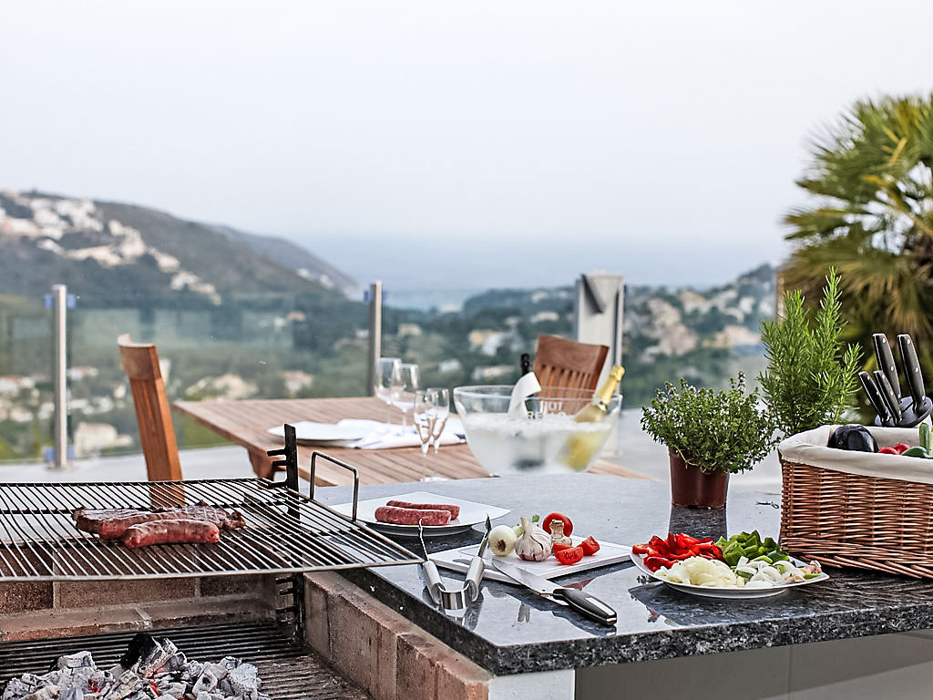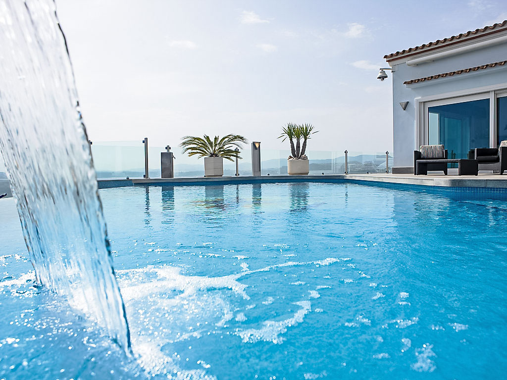 Golden Valley: Sehr moderner, luxuriöser Finca "Finca Edel", auf 2 Stockwerken. 4.5 km vom Zentrum von Moraira, ruhige, sonnige, erhöhte Lage, in einer Sackgasse. Zur Alleinbenutzung: Grundstück 1'200 m2 (eingezäunt), Schwimmbad beheizt, nicht einsehbar (50 m2, 01.01.-31.12.) mit Innentreppe. Terrasse, Gartenmöbel, Grillhaus. Im Hause: Sauna, Sprudelbad (alles inkl.), Zentralheizung, Klimaanlage, Alarmanlage, Waschmaschine, Wäschetrockner. Supermarkt 1.3 km, Restaurant 1.3 km, Bar 1.3 km, Sandstrand 4.5 km. Golfplatz 9 km. Einzigartige Luxusvilla mit allen erdenklichen Extras für sehr anspruchsvolle Gäste: Privat, uneinsehbar, luxuriös, hoch technisiert, klimatisiert, sicher. Beim Schwimmbecken handelt es sich um einen Überlaufpool mit Wasserfall und Massagedüsen. Er wird auch in der kalten Jahreszeit auf eine Mindesttemperatur von 20-22 Grad aufgeheizt. Die Mindesttemperatur von April-Oktober misst 25 Grad. Bar. Voll ausgestattete Sommerküche mit unter anderem: Grill, Geschirrspüler, Eiswürfelmaschine. Die Sauna mit Lichttherapie ist mit 12 m2 ausreichend gross für 8 Personen. Wassertank.